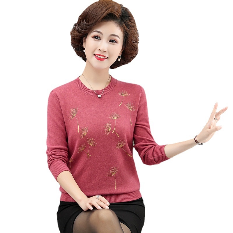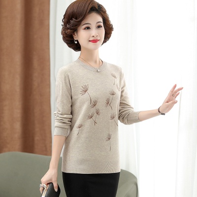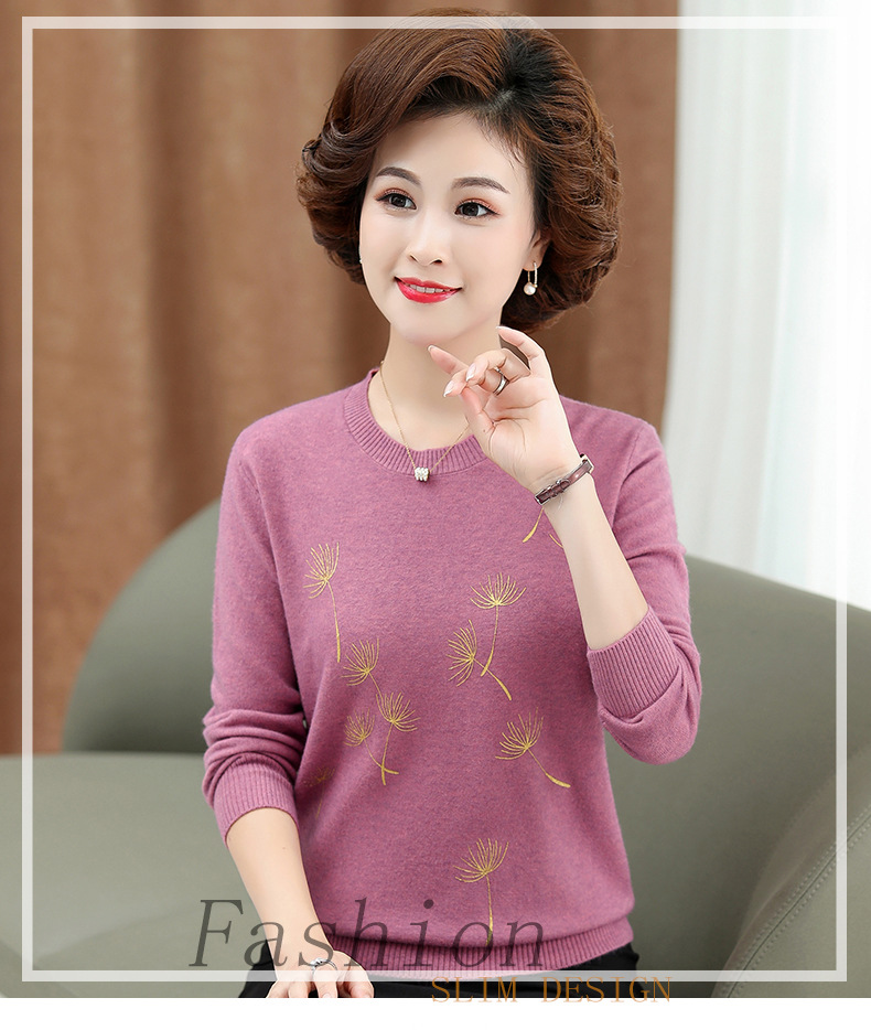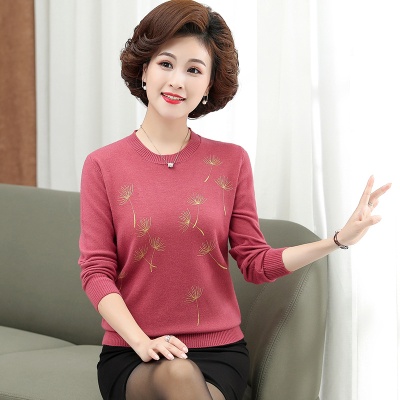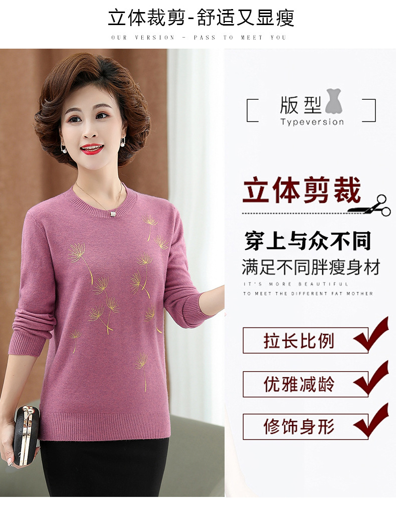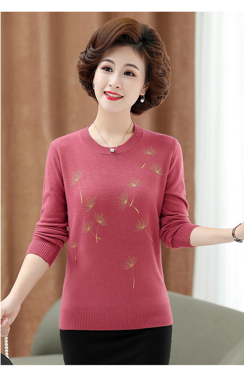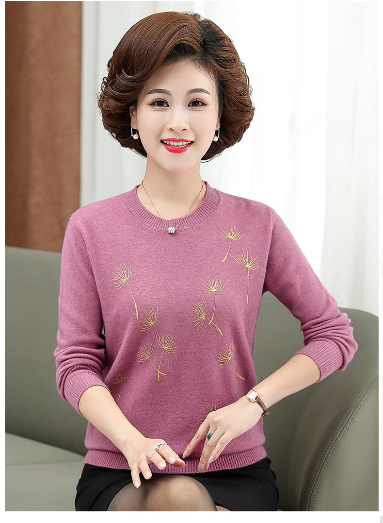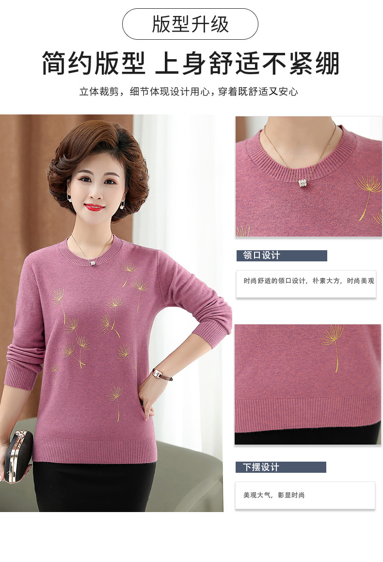 商品名称:中老年女装秋冬新款大码印花打底衫女士妈妈装低圆领针织衫毛衣