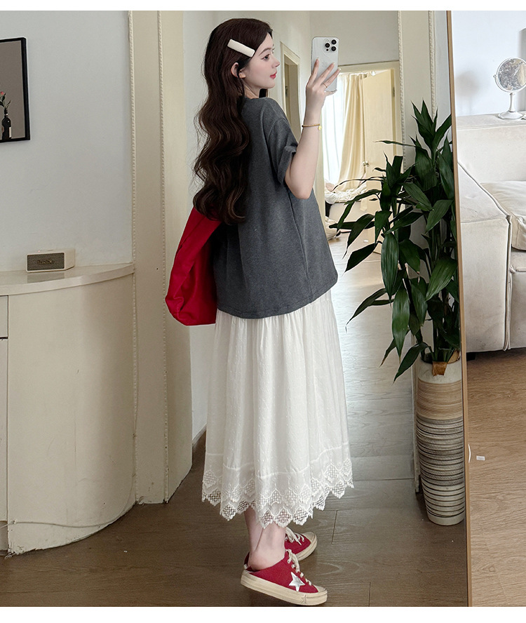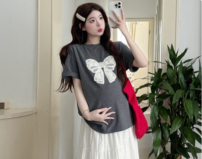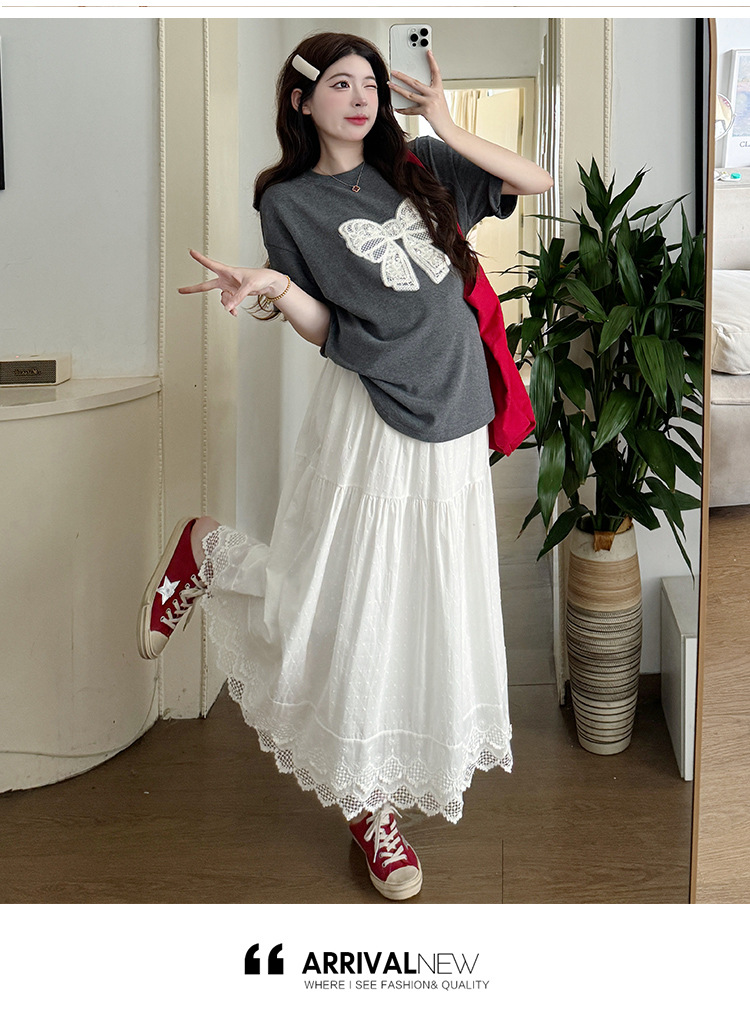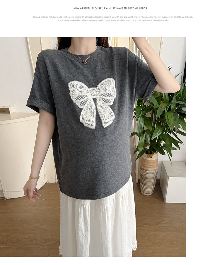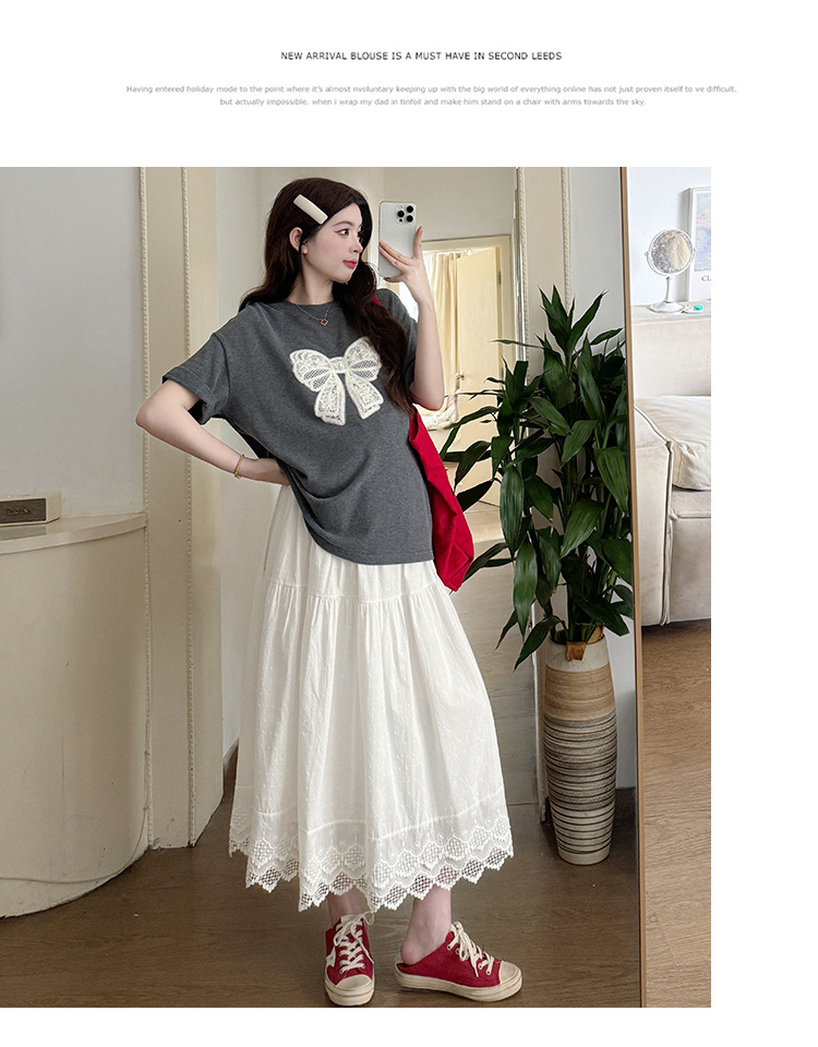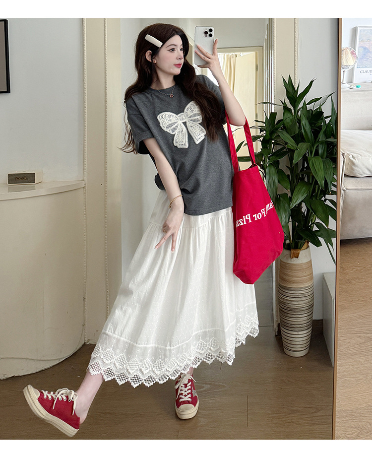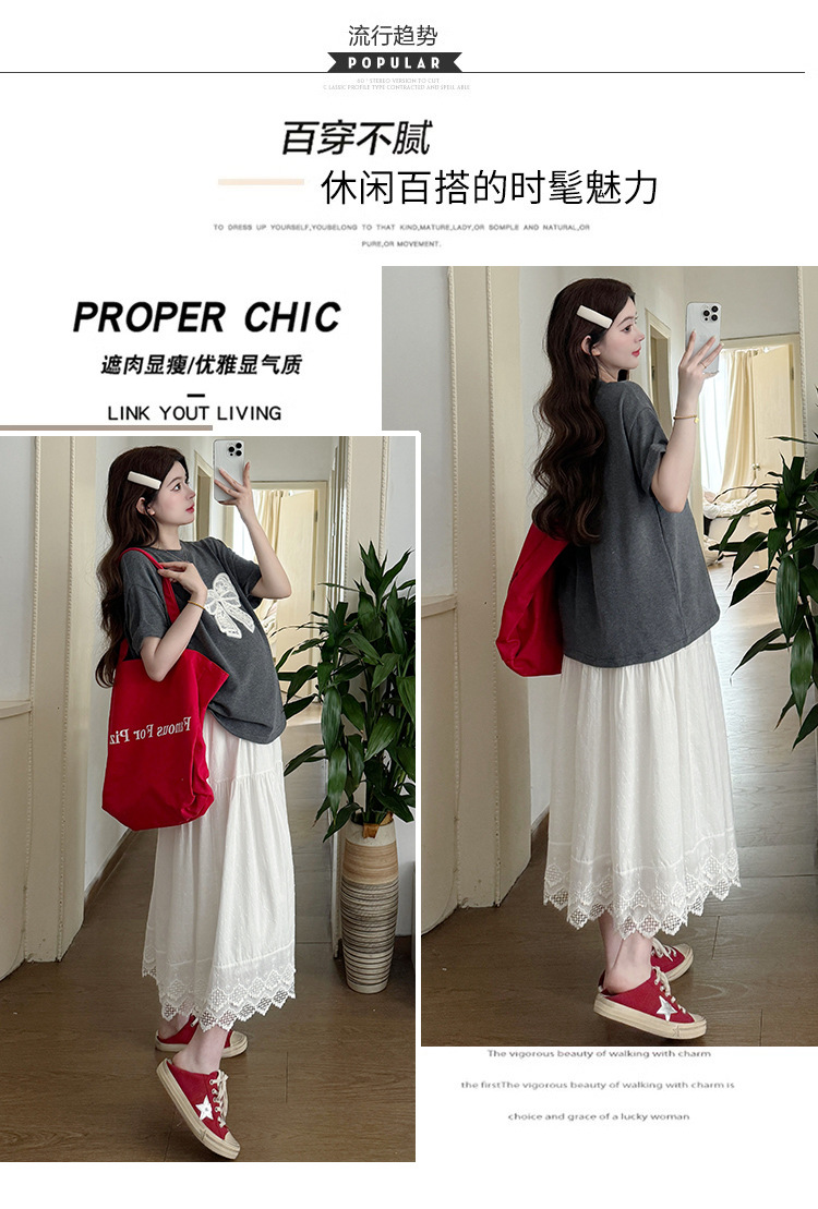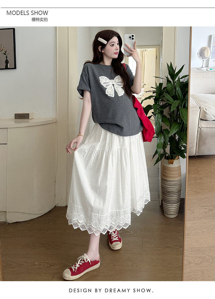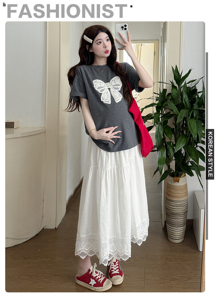 2025夏季新款棉质宽松蝴蝶结刺绣T恤上衣+半身裙孕期外穿孕妇套装