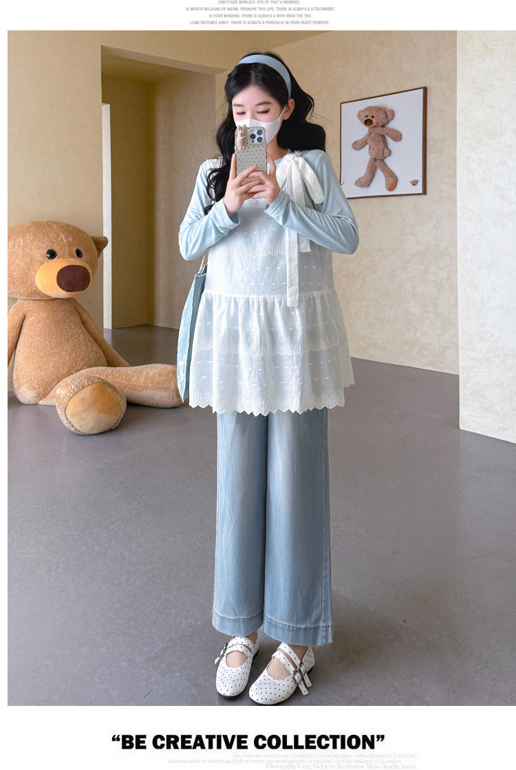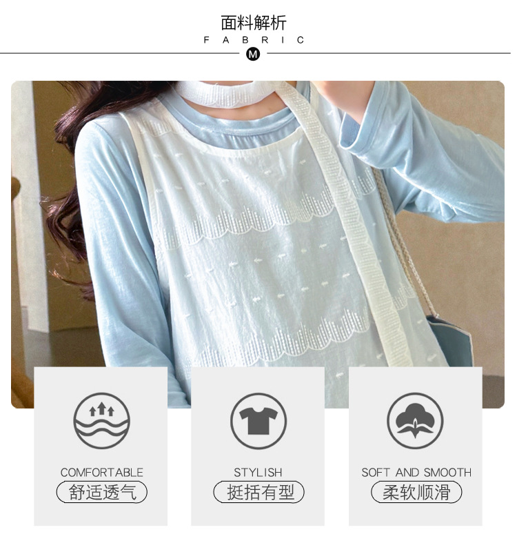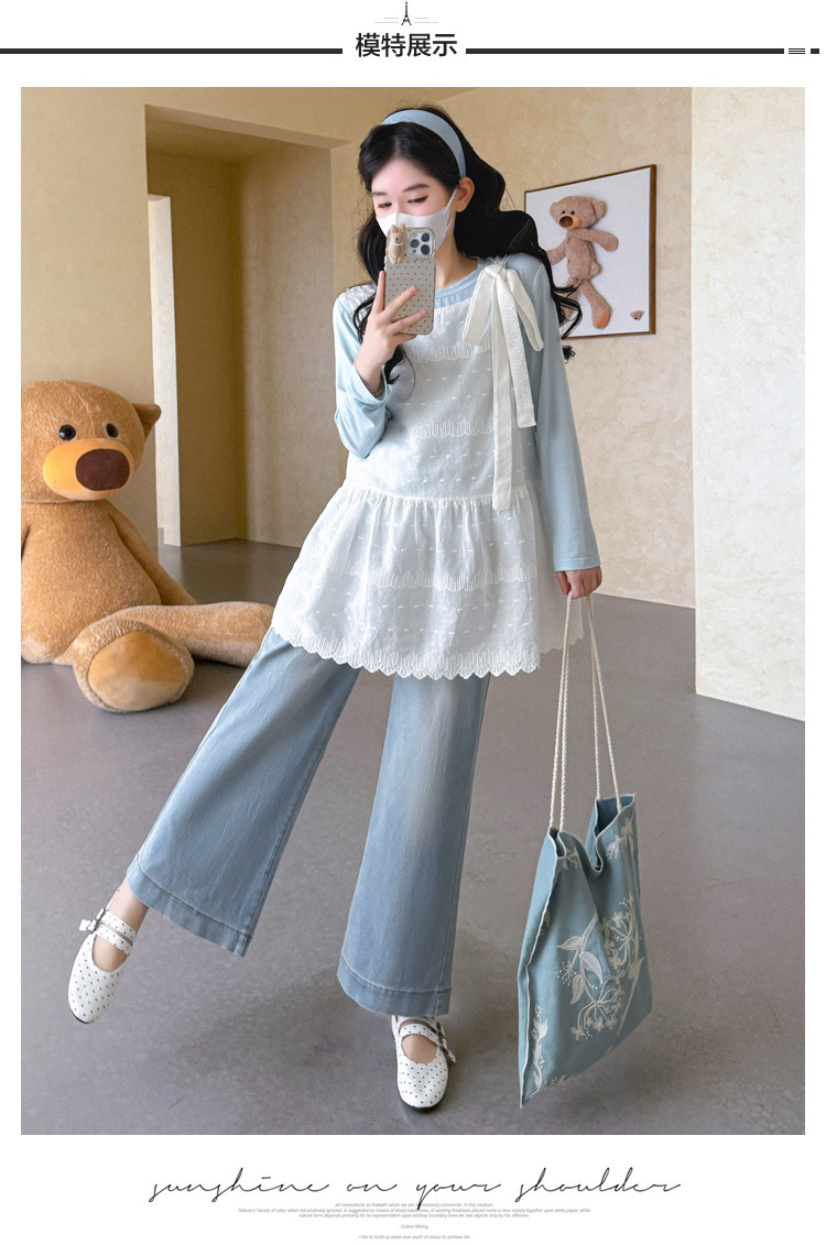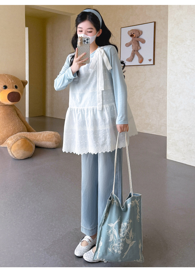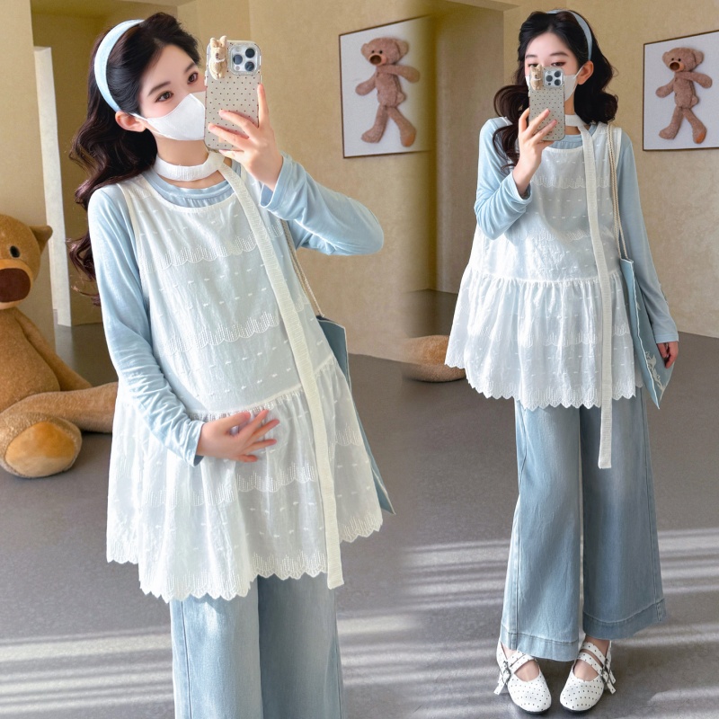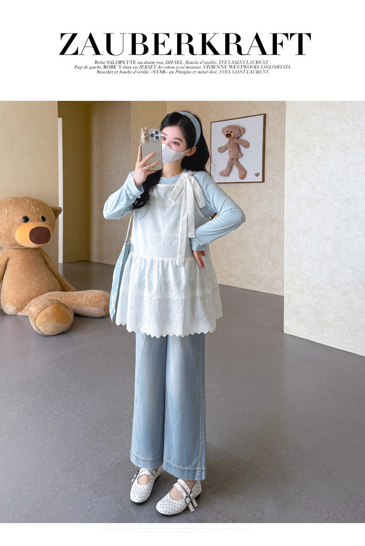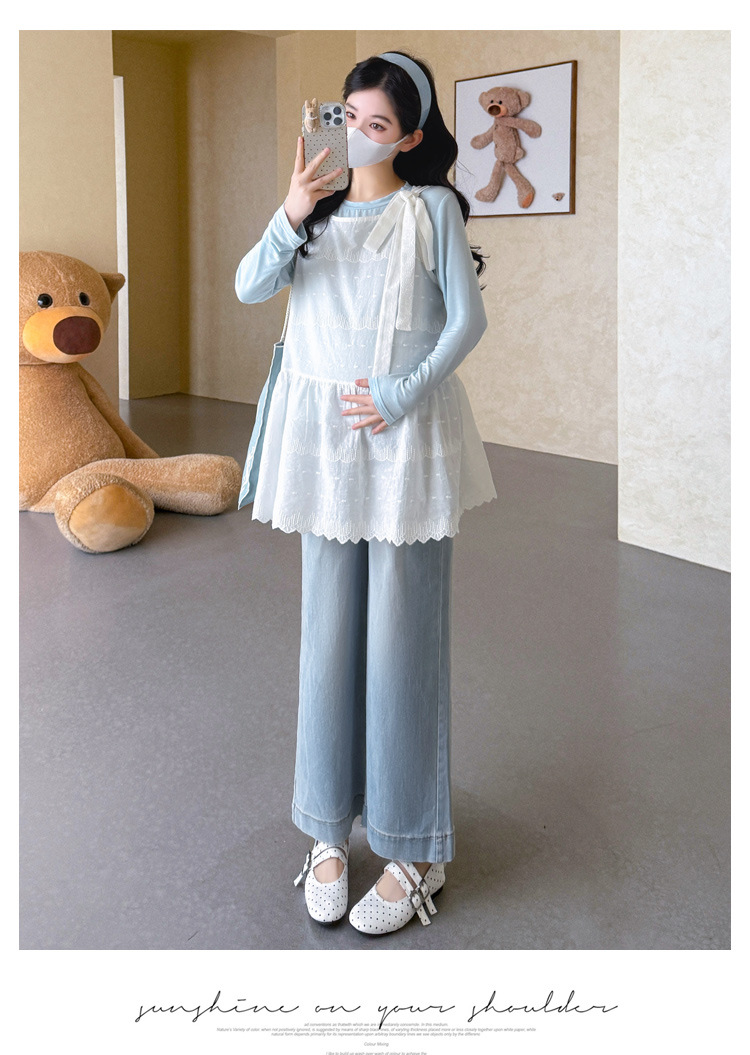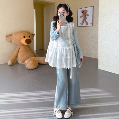 商品名称:孕期穿搭2026春季新品洋气小清新宽松遮孕肚简约T恤+蕾丝背心套装