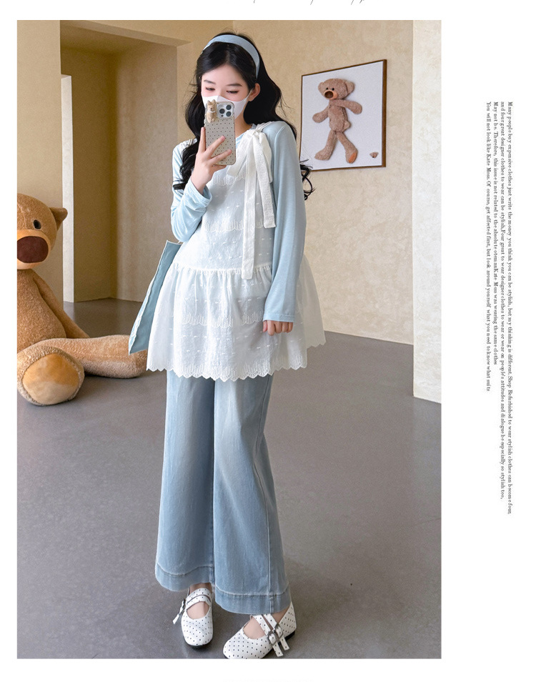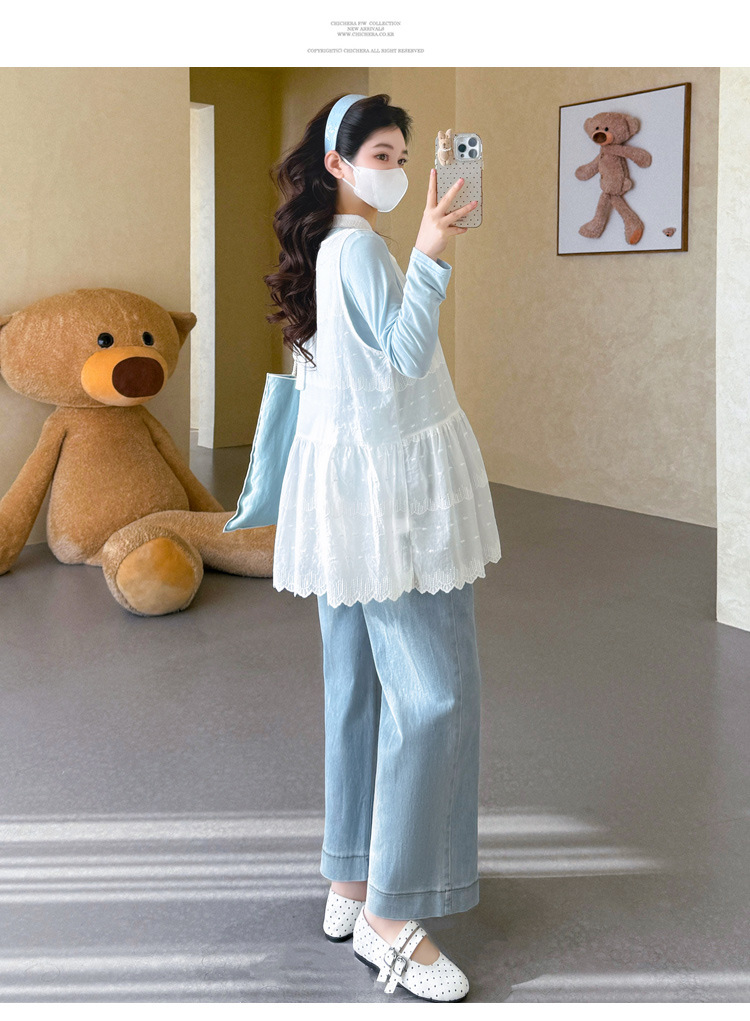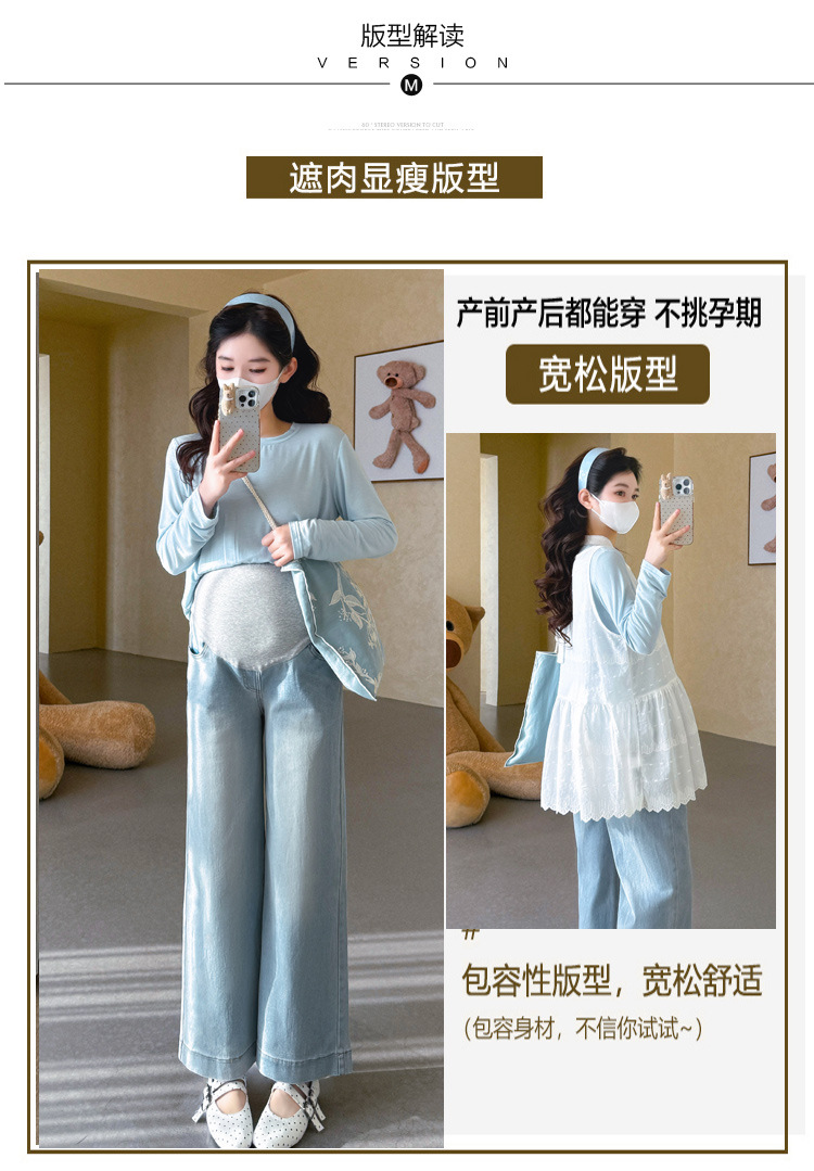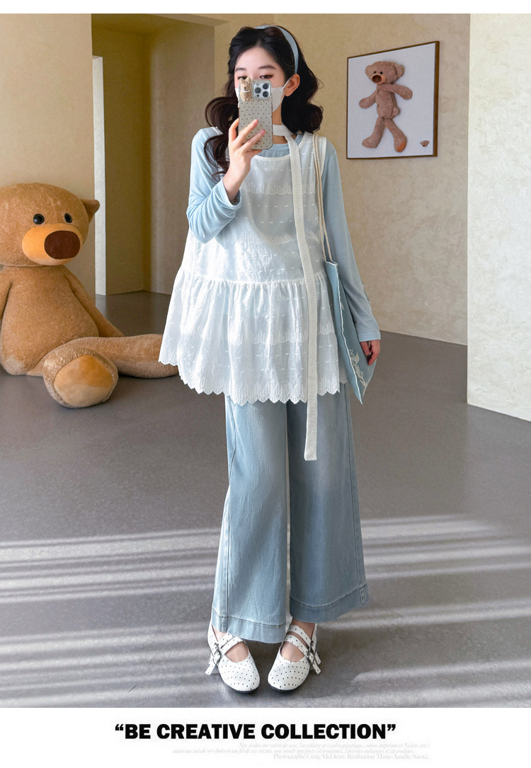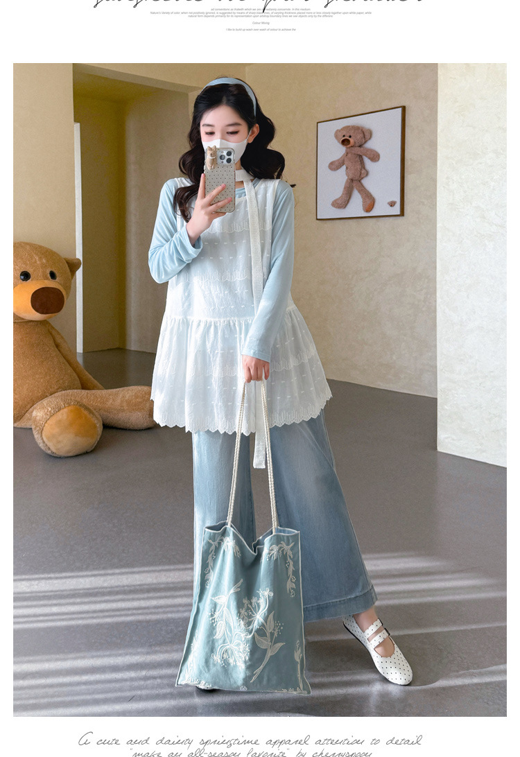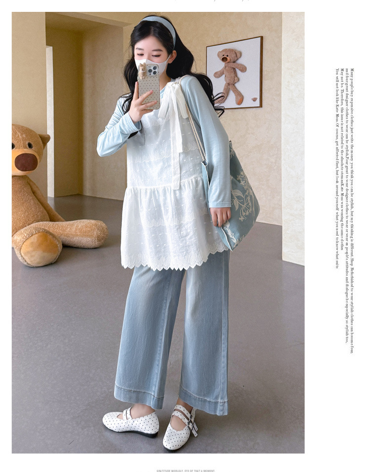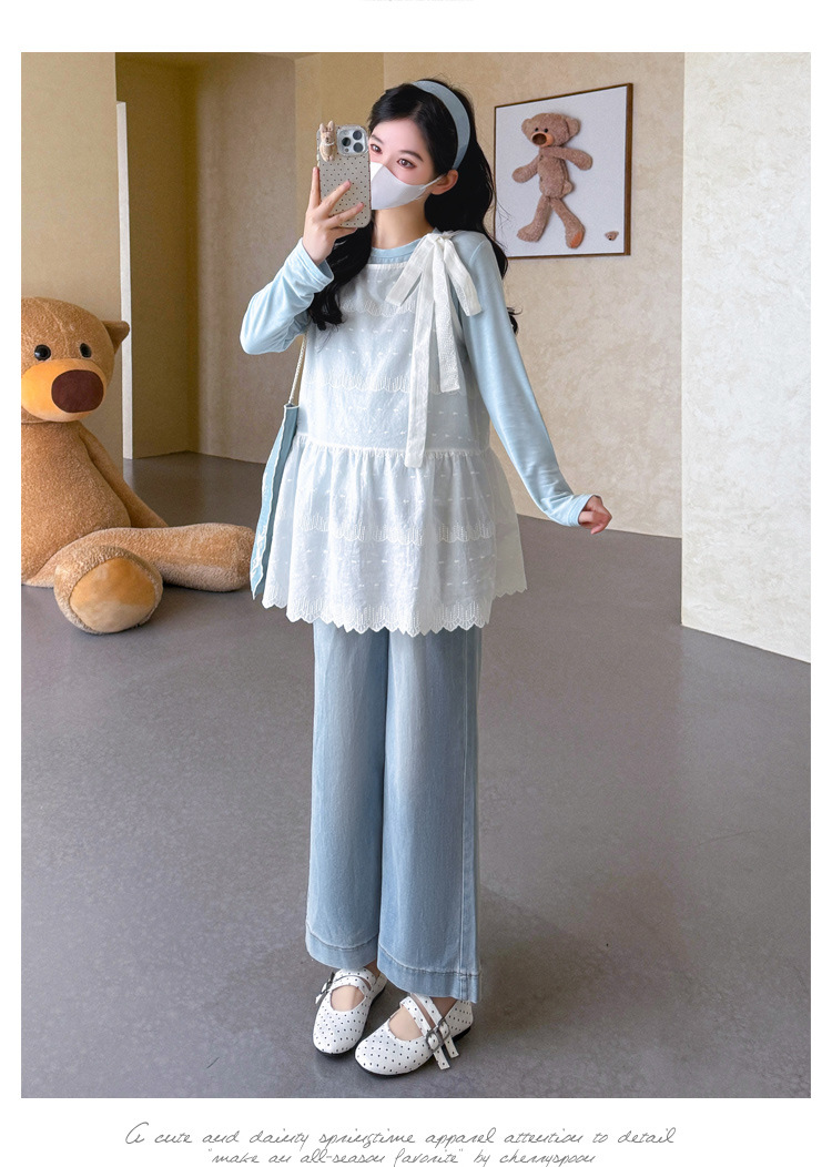 商品名称:孕期穿搭2026春季新品洋气小清新宽松遮孕肚简约T恤+蕾丝背心套装
