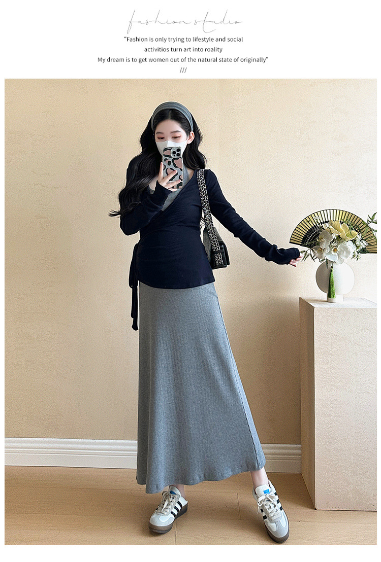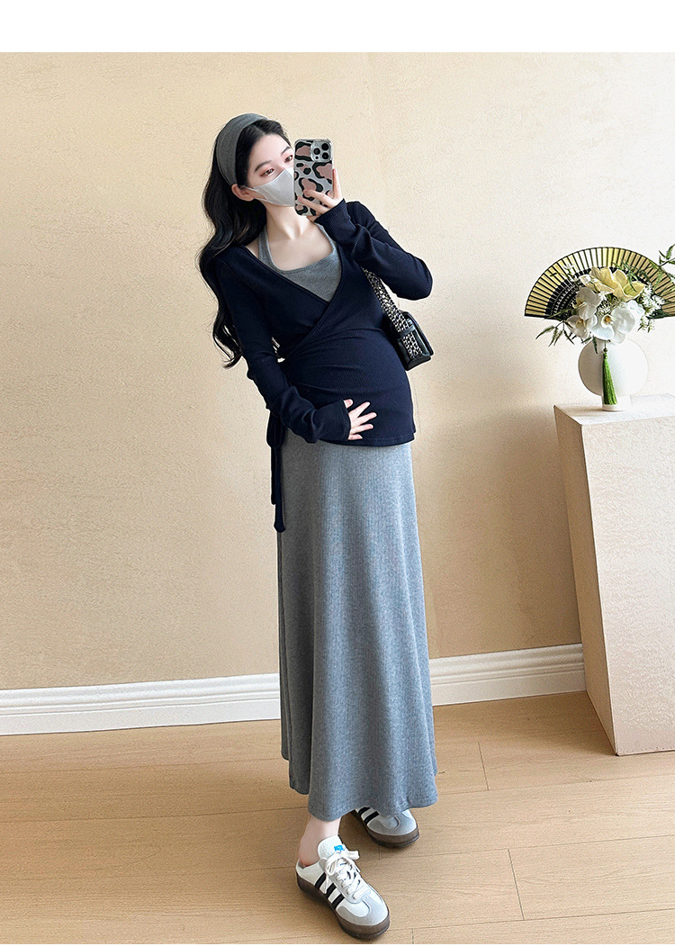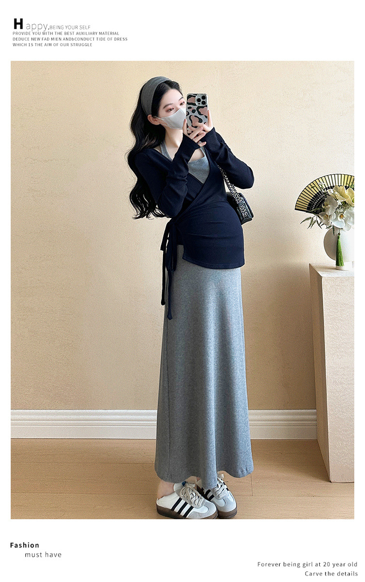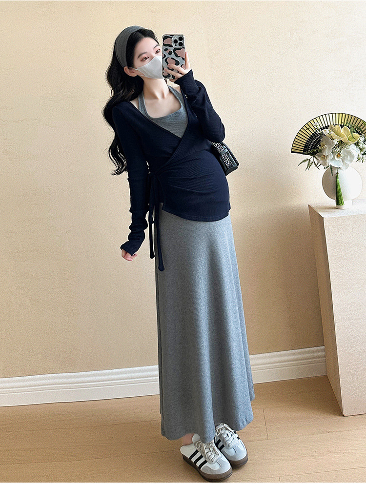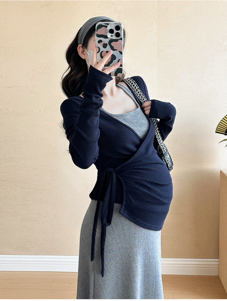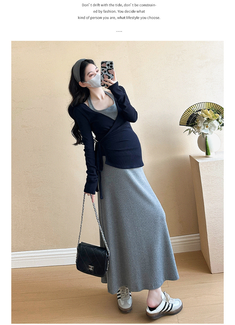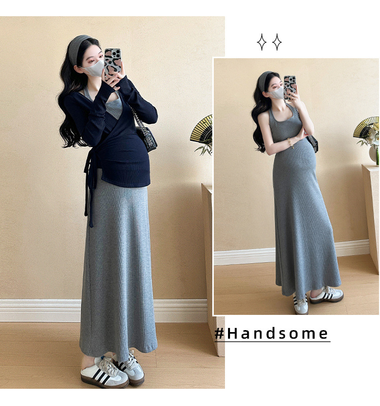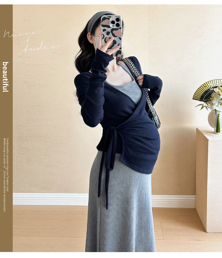 孕妇裙2025秋季新款法式气质显瘦挂脖连衣裙+设计感系带V领上衣女