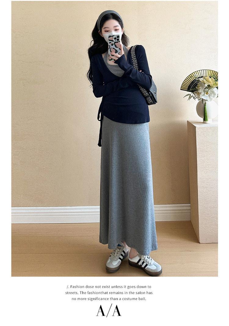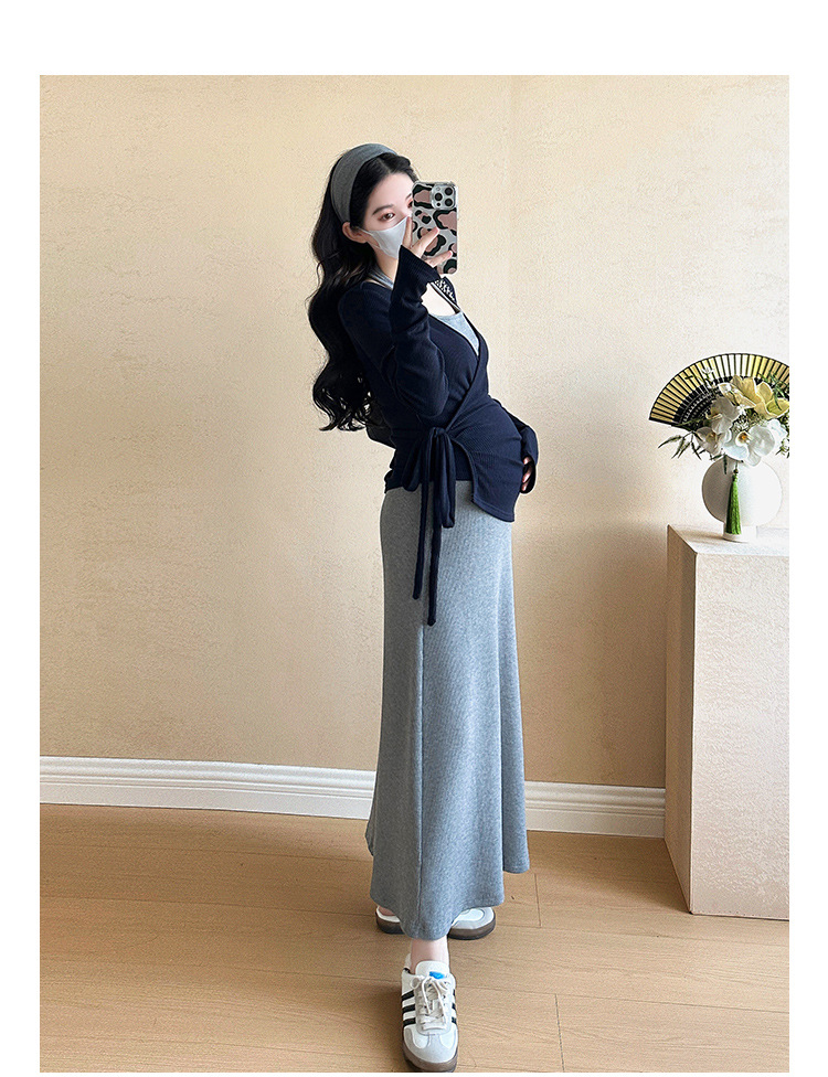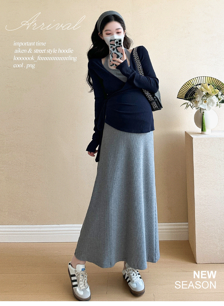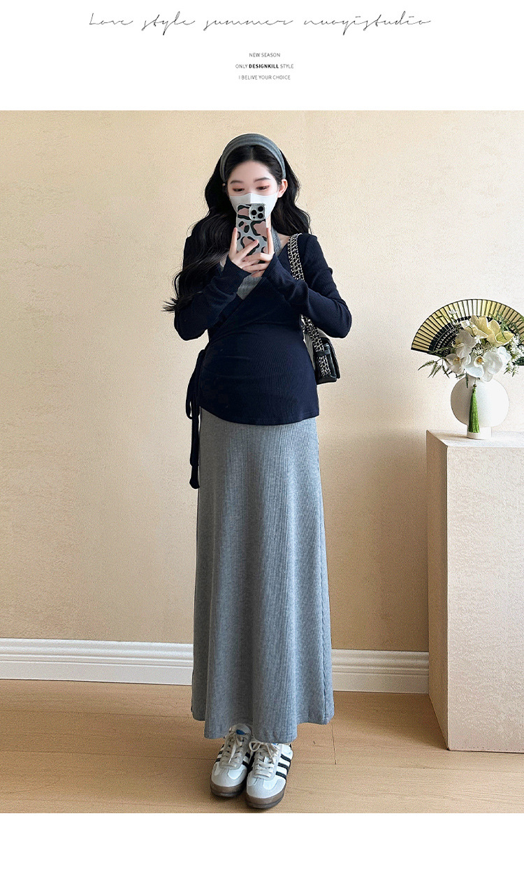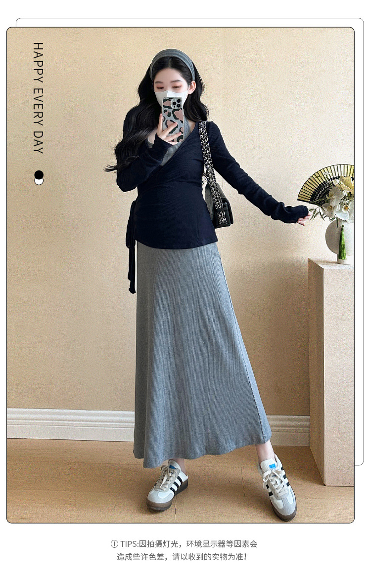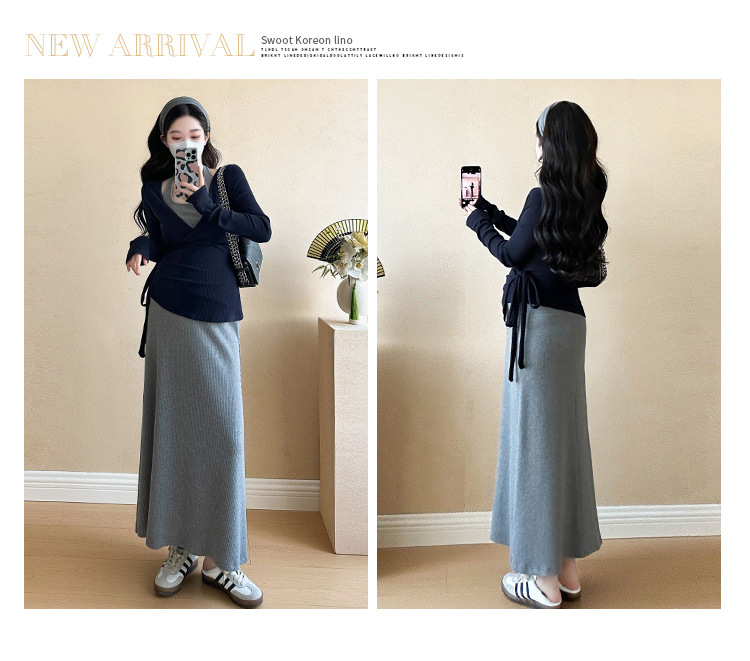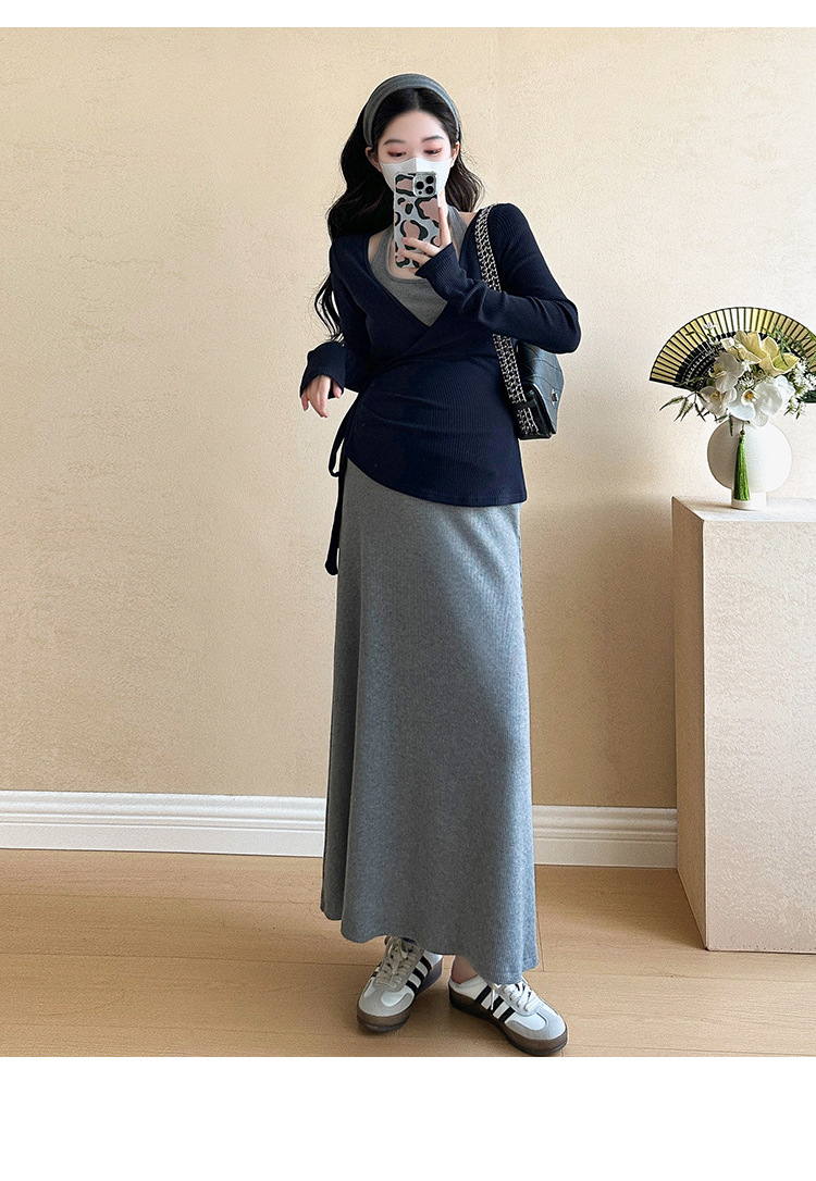 孕妇裙2025秋季新款法式气质显瘦挂脖连衣裙+设计感系带V领上衣女