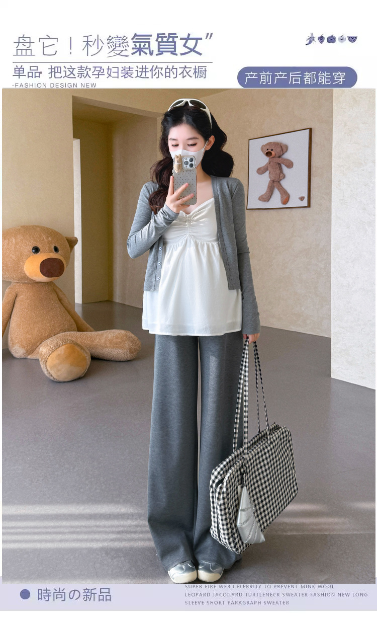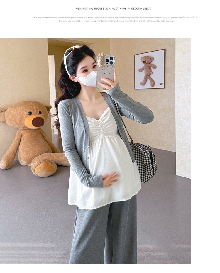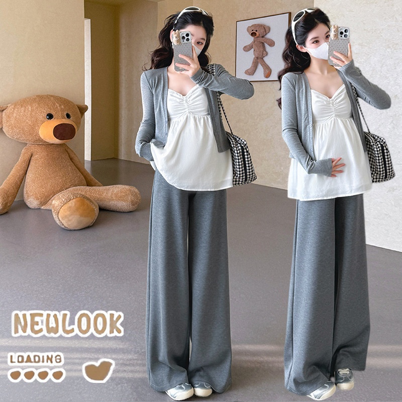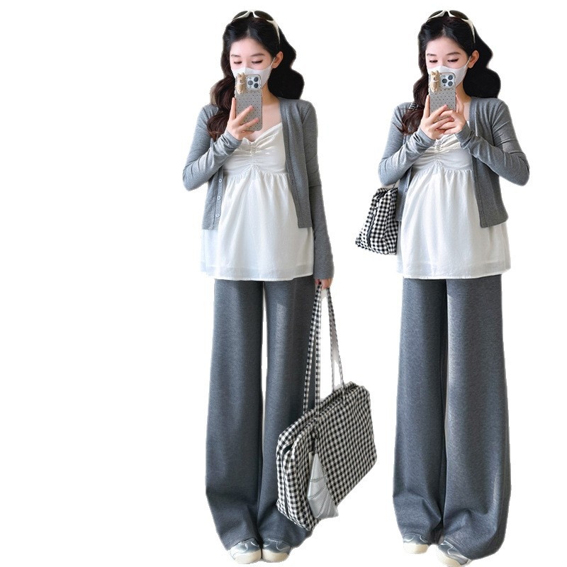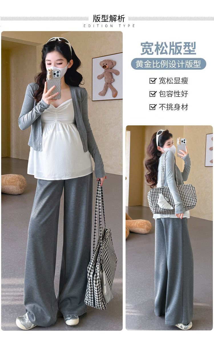 孕期穿搭2026春季新品纯欲风上衣吊带外套阔腿裤辣妈显瘦孕妇套装