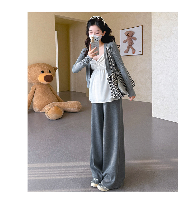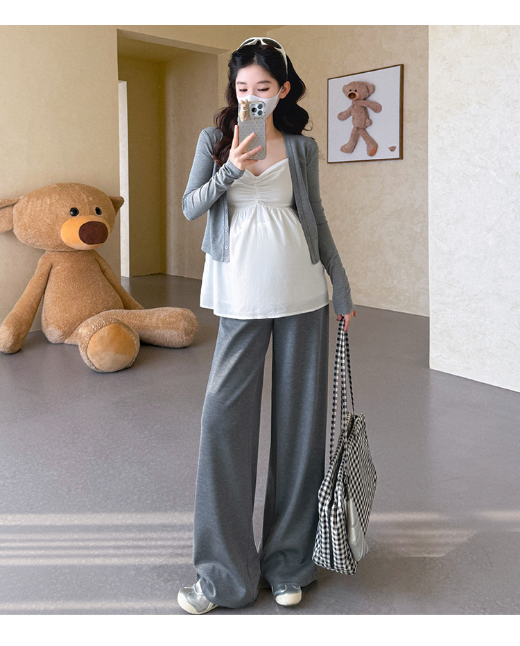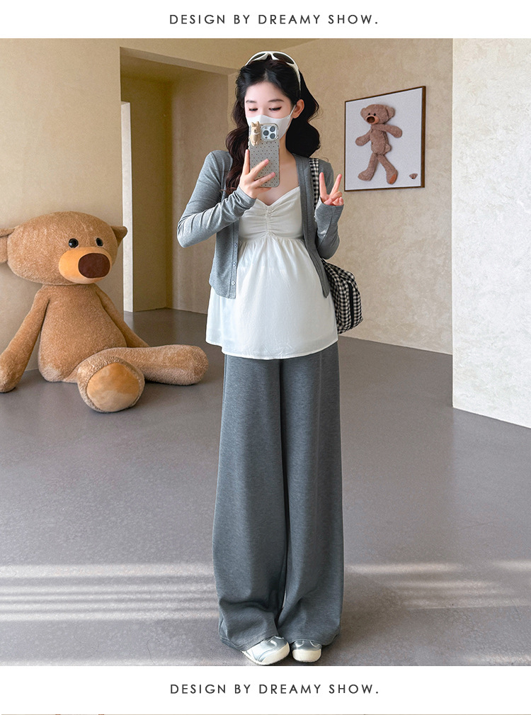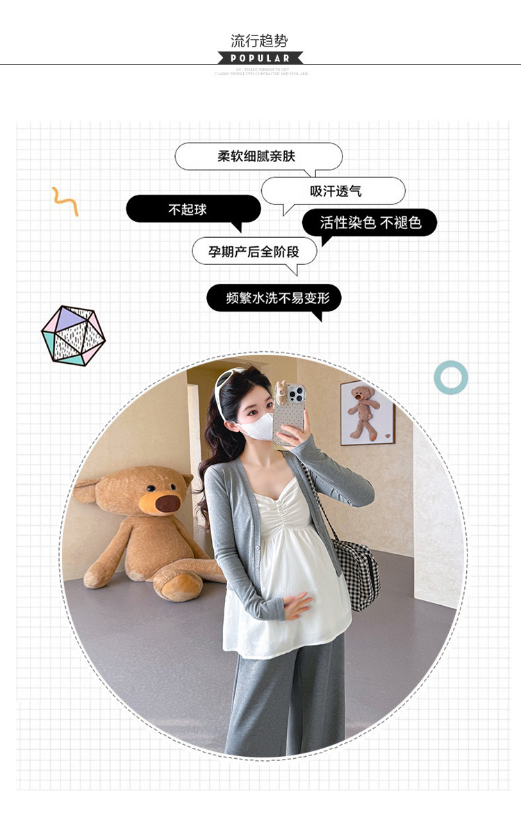 孕期穿搭2026春季新品纯欲风上衣吊带外套阔腿裤辣妈显瘦孕妇套装