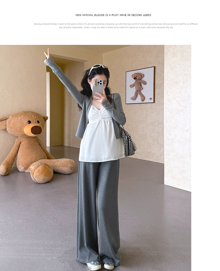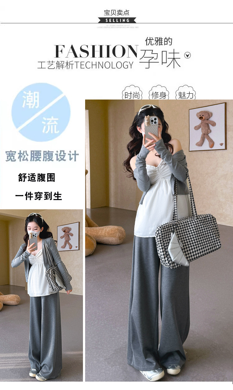商品名称:孕期穿搭2026春季新品纯欲风上衣吊带外套阔腿裤辣妈显瘦孕妇套装