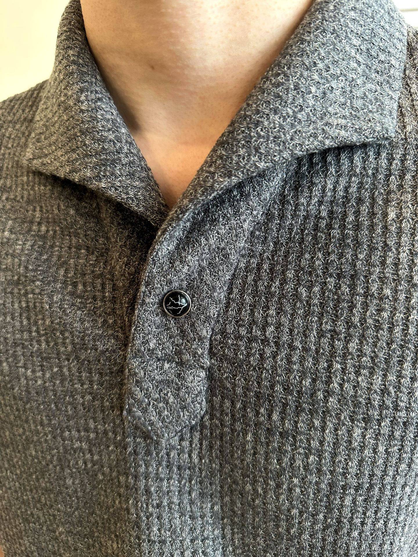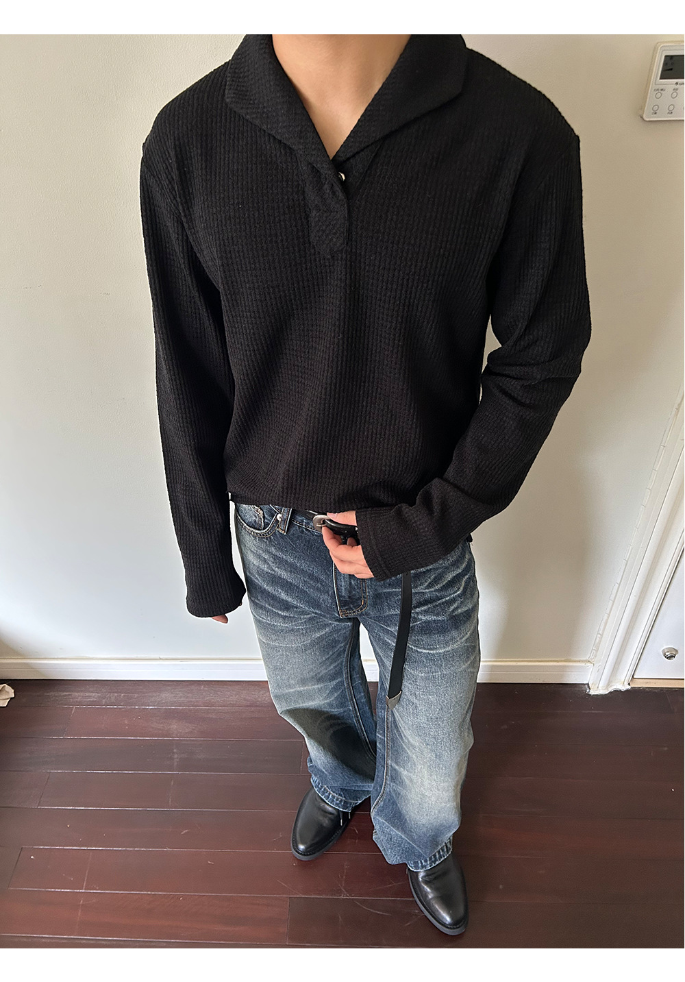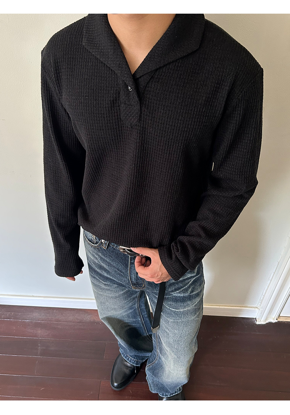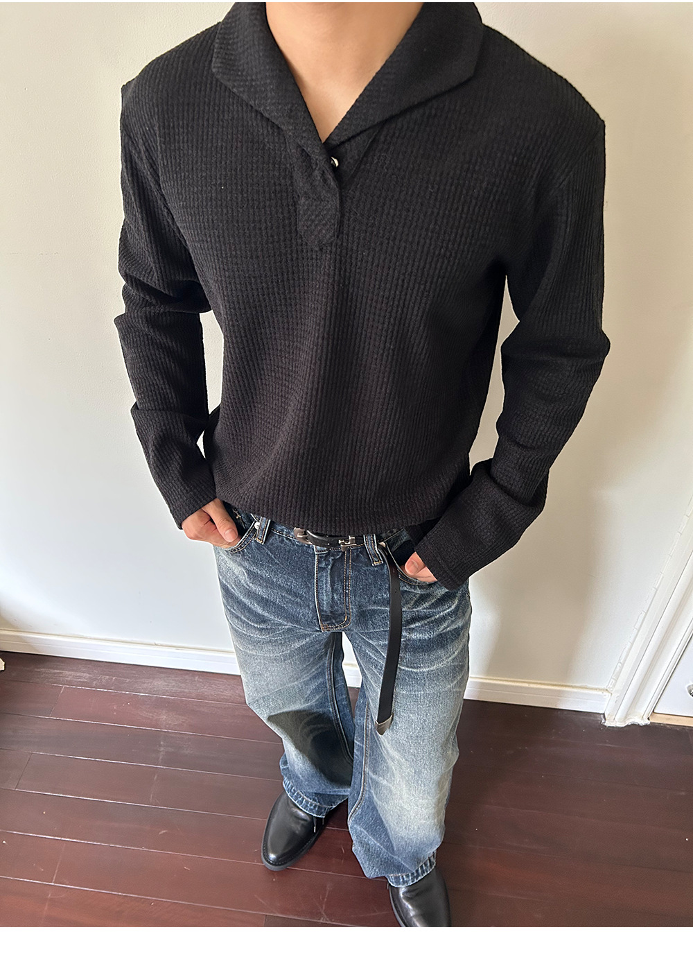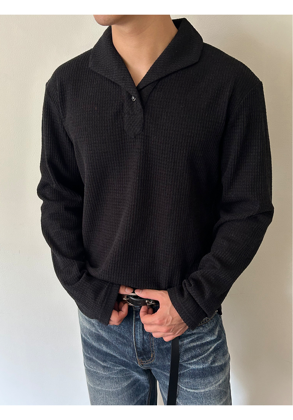 EME易盛易 轻奢罗马格意式一片领猫眼石扣正肩短袖打底polo衫男
