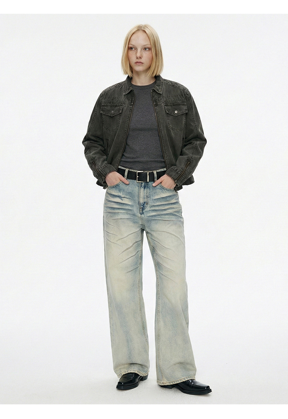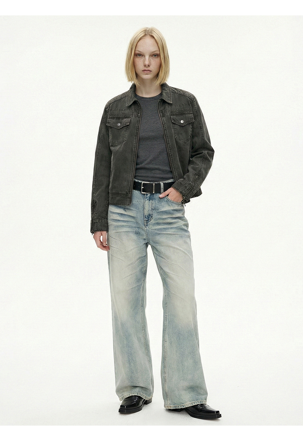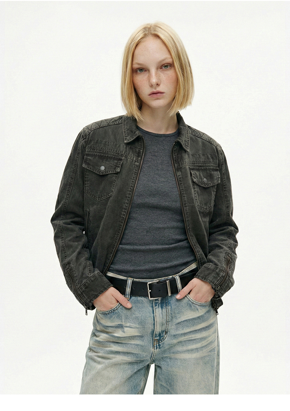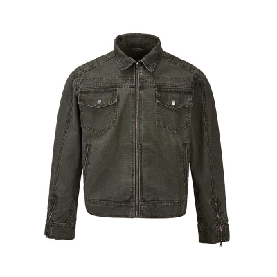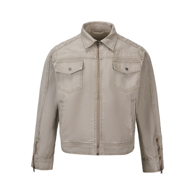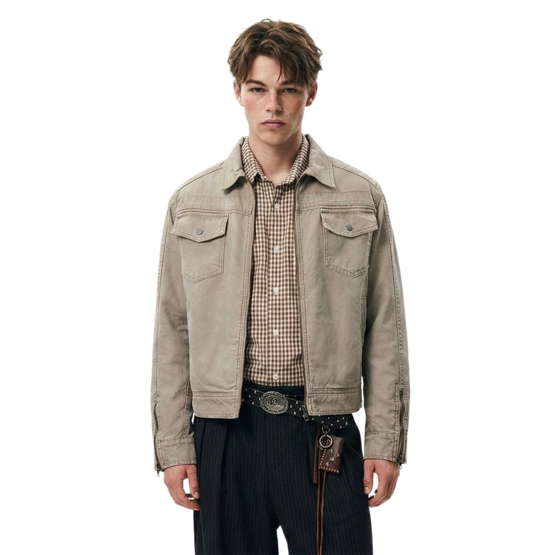 易盛易 美式复古水洗做旧工装设计感剪裁廓形正肩短款夹克外套男