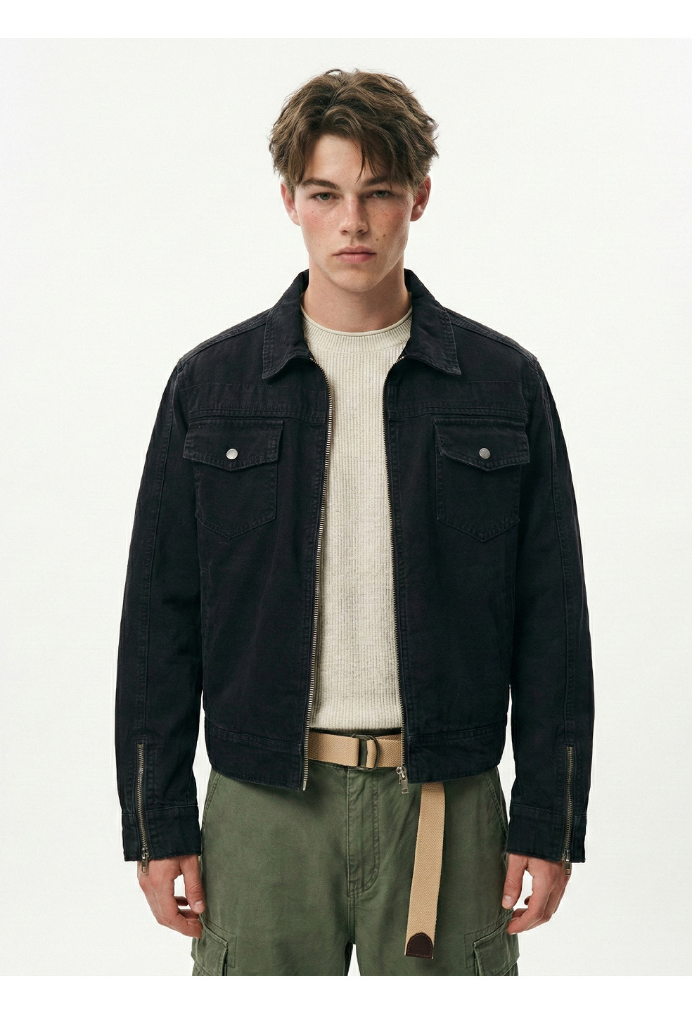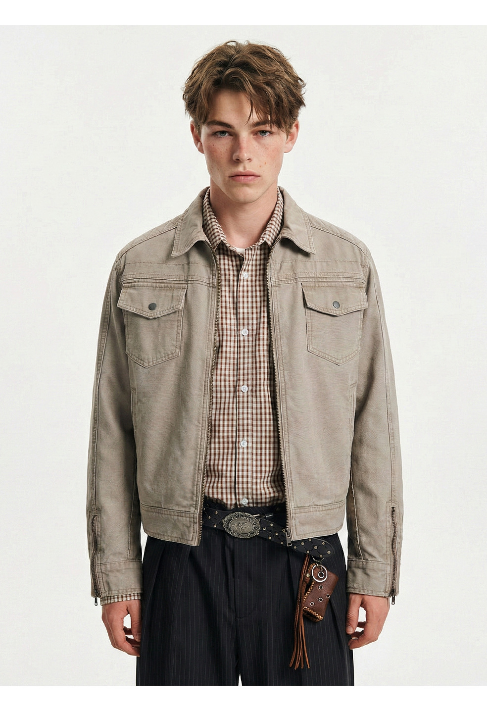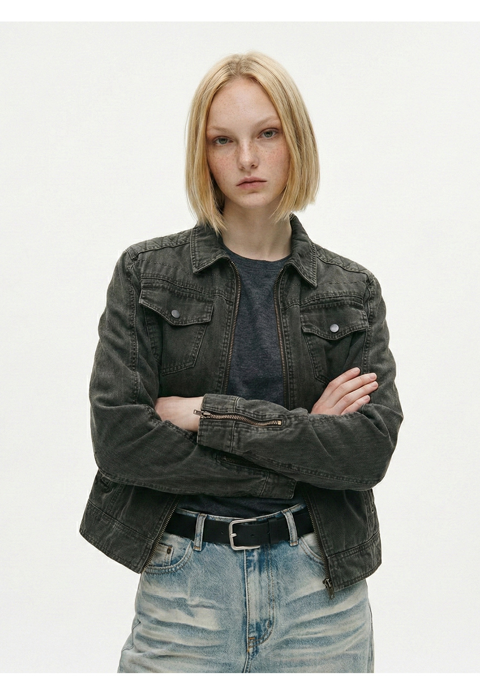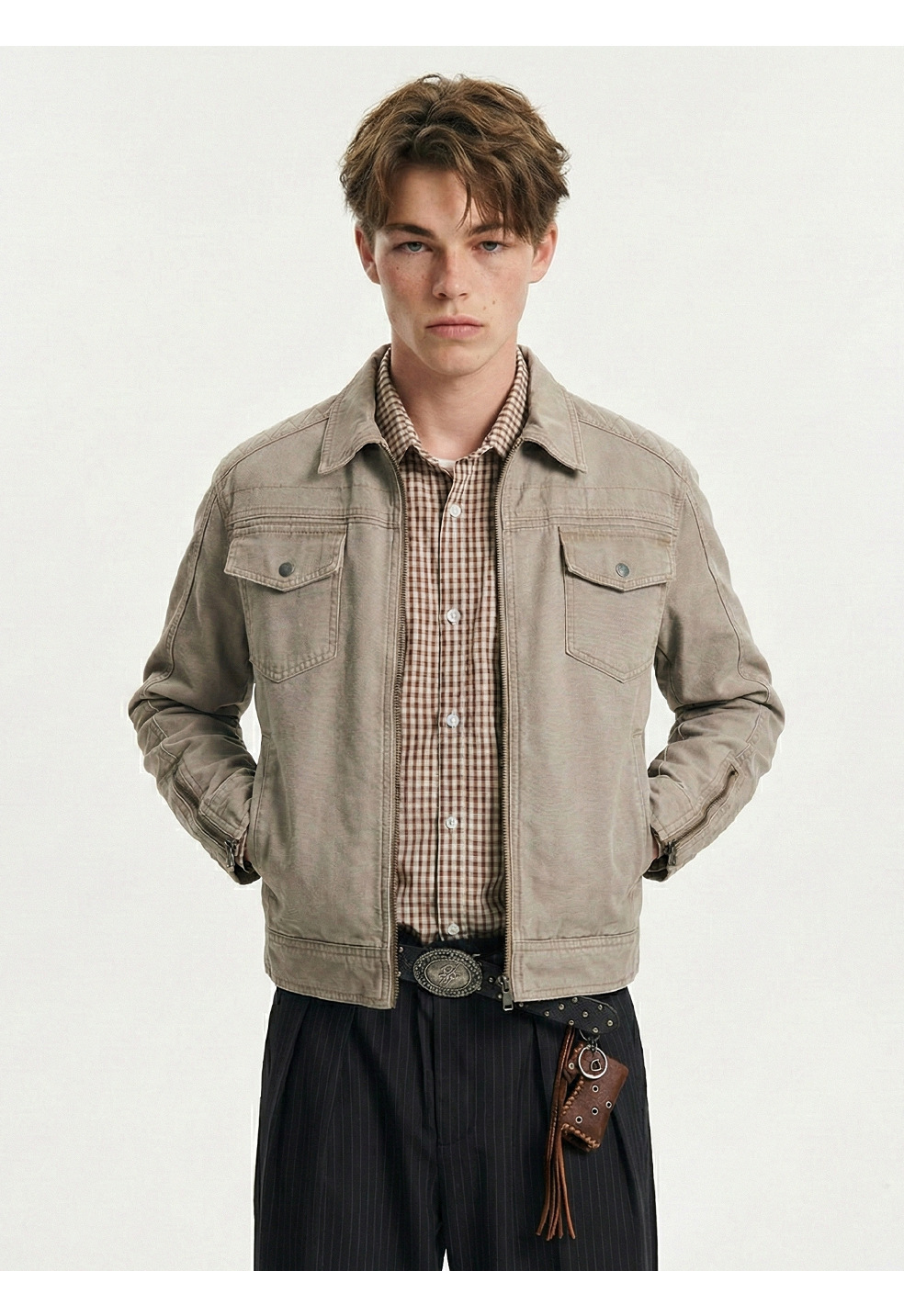易盛易 美式复古水洗做旧工装设计感剪裁廓形正肩短款夹克外套男