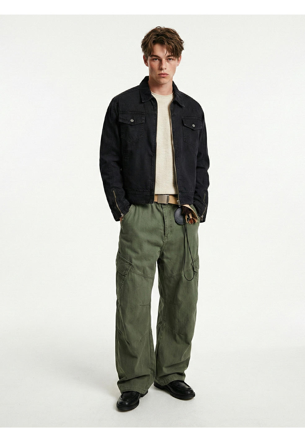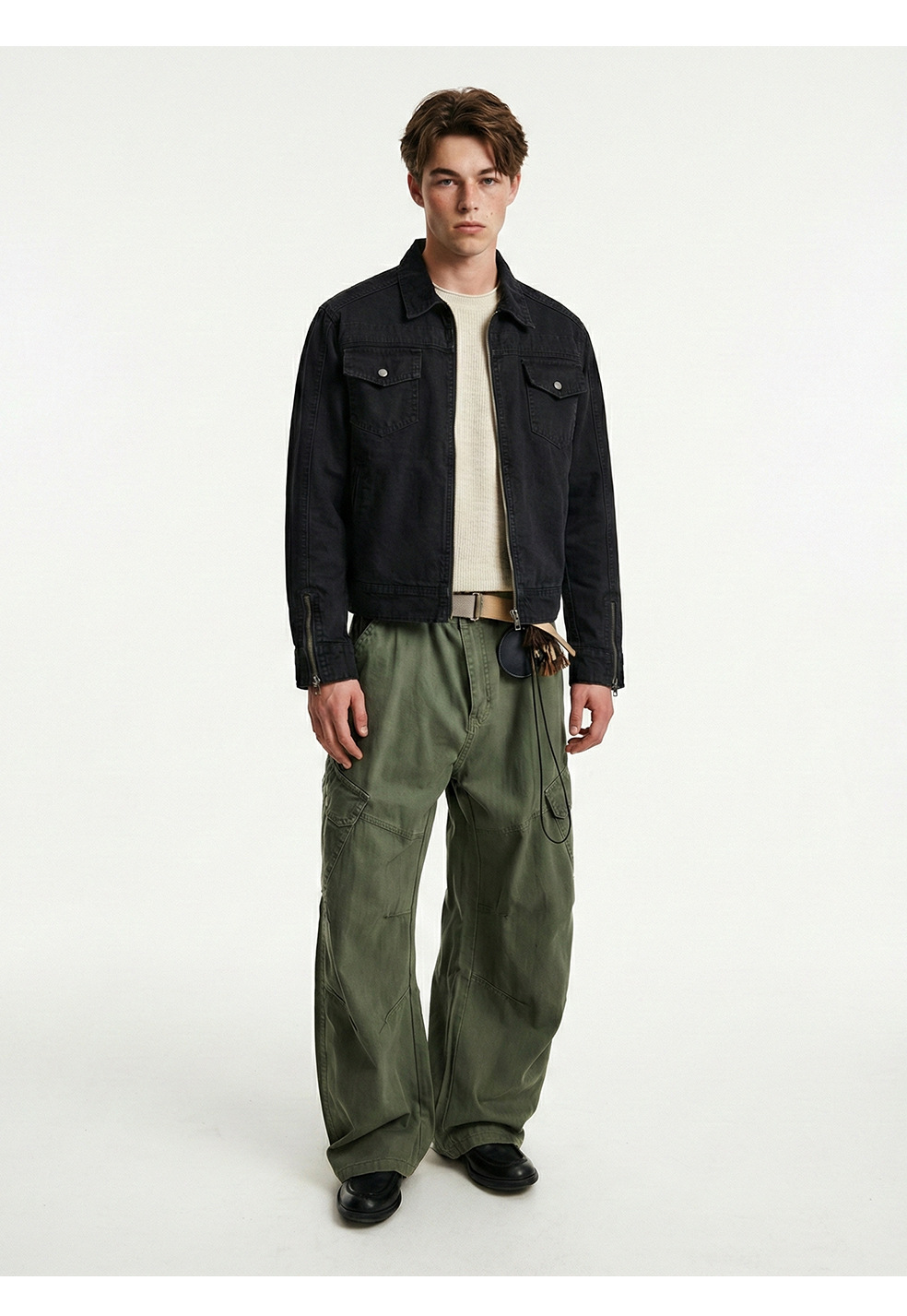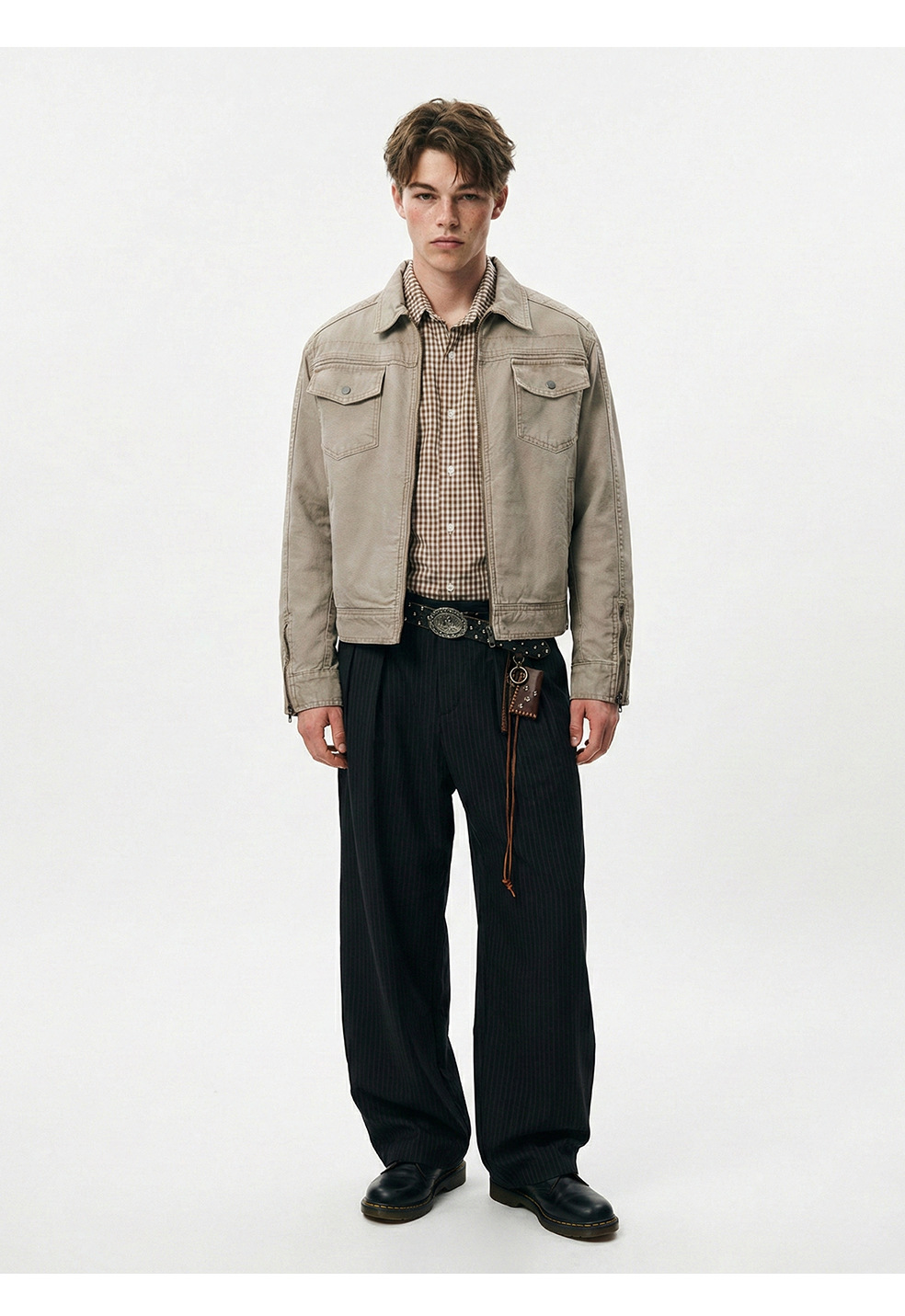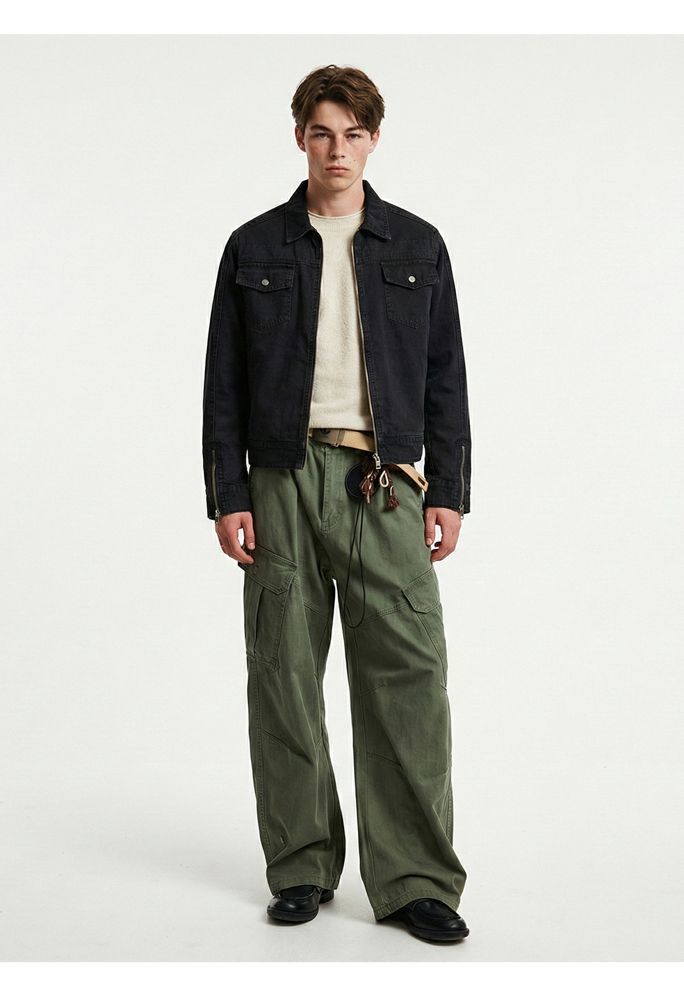 易盛易 美式复古水洗做旧工装设计感剪裁廓形正肩短款夹克外套男