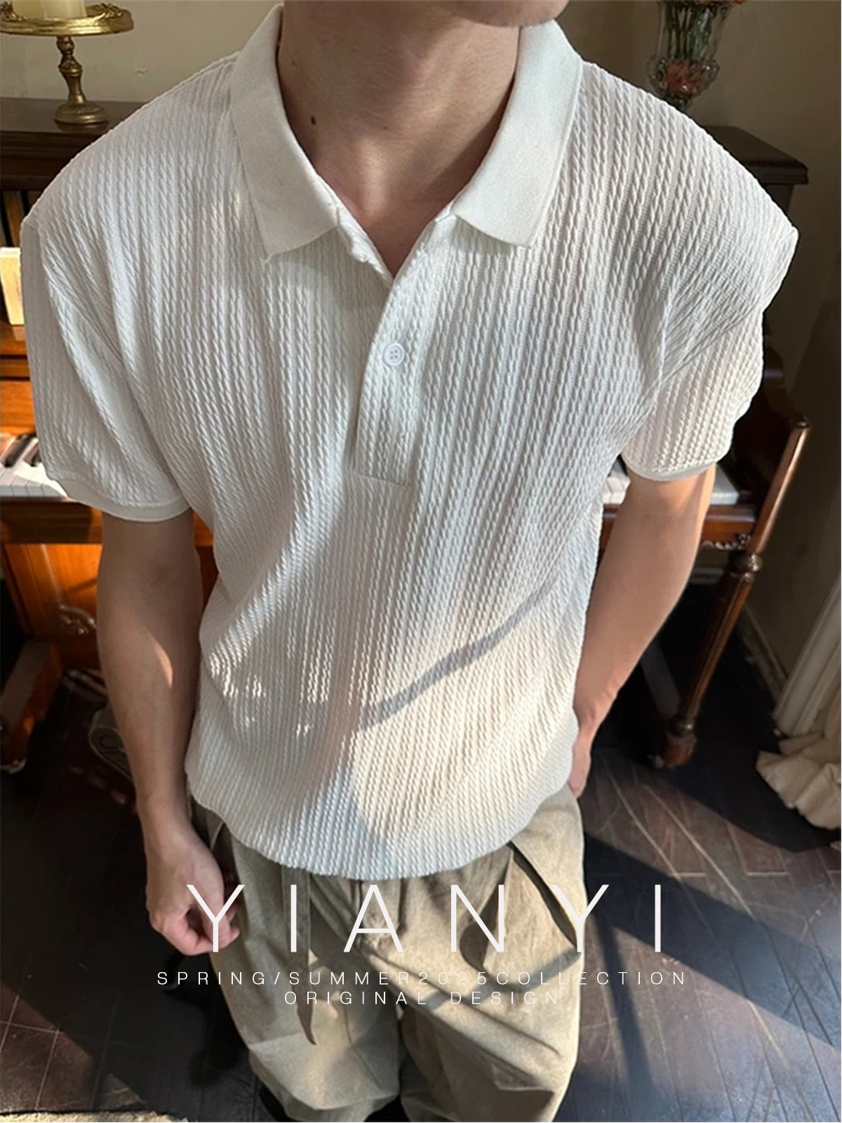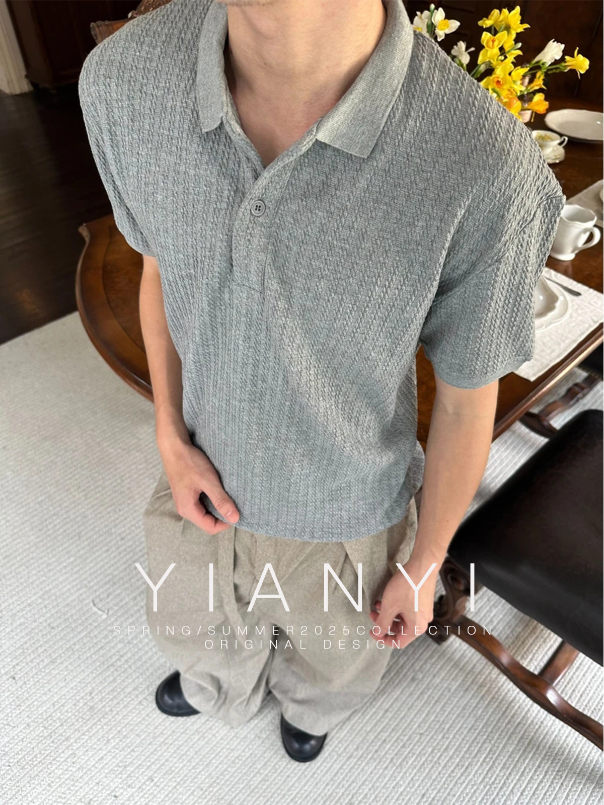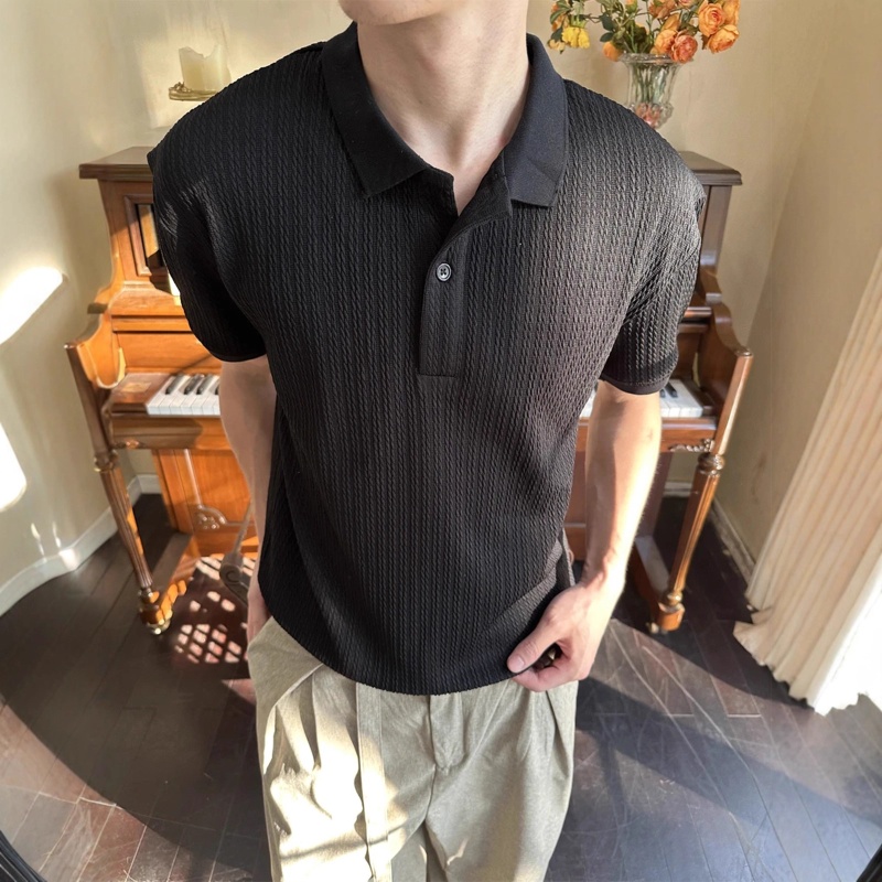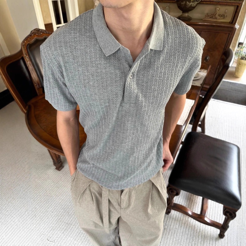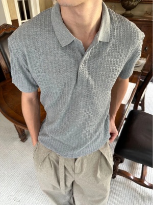 EME男装 老钱风25新款亨利领短袖男女复古Cleanfit翻领针织衫上衣