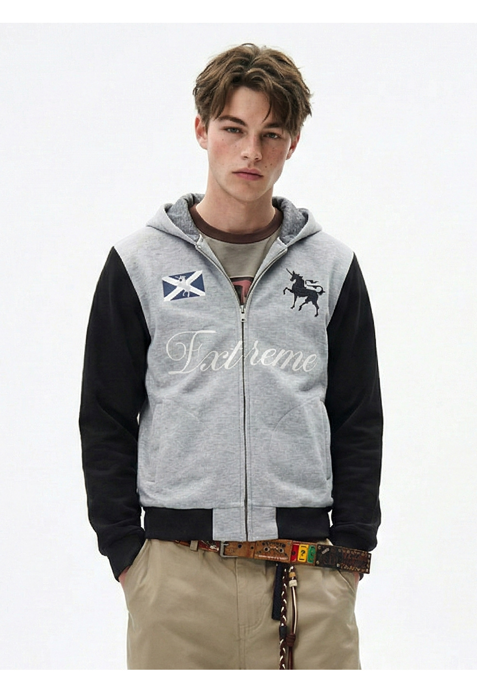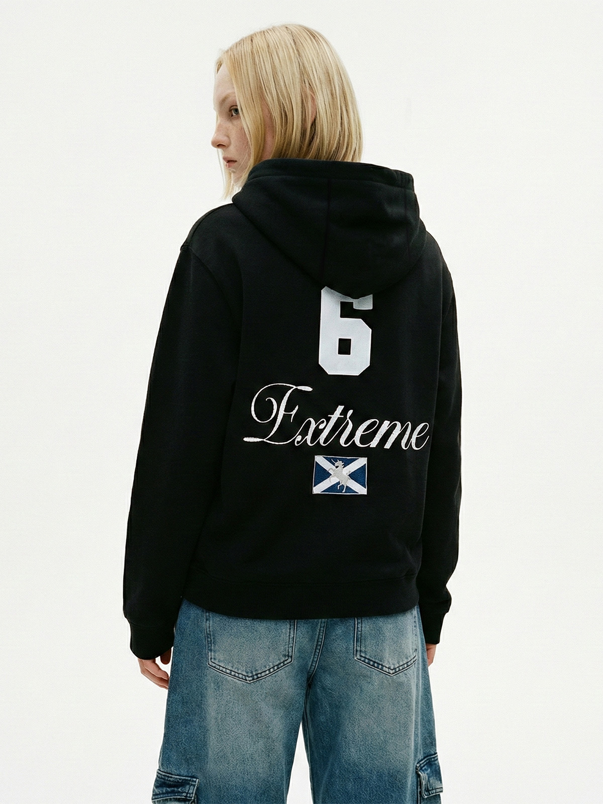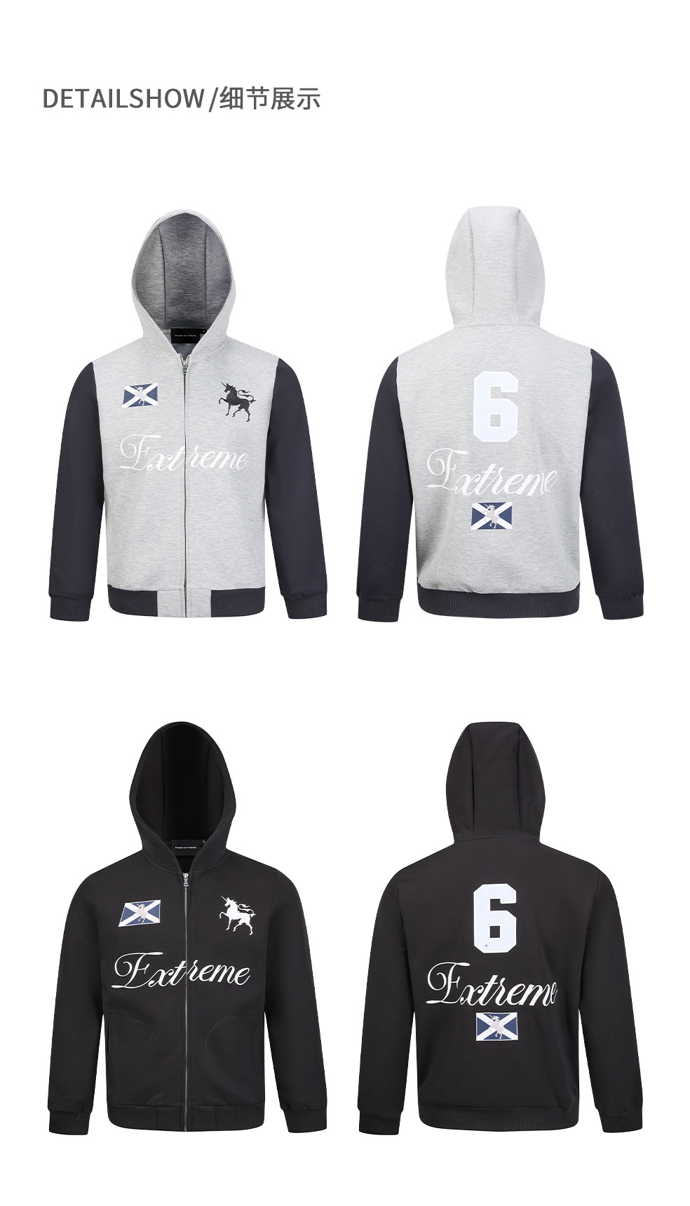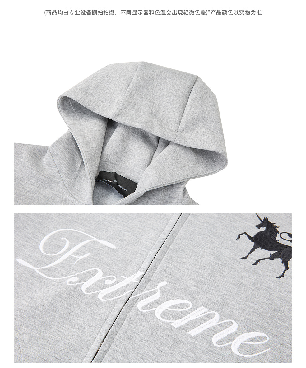 易盛易 370g战马绣花美式复古撞色通勤休闲宽松连帽卫衣外套男女
