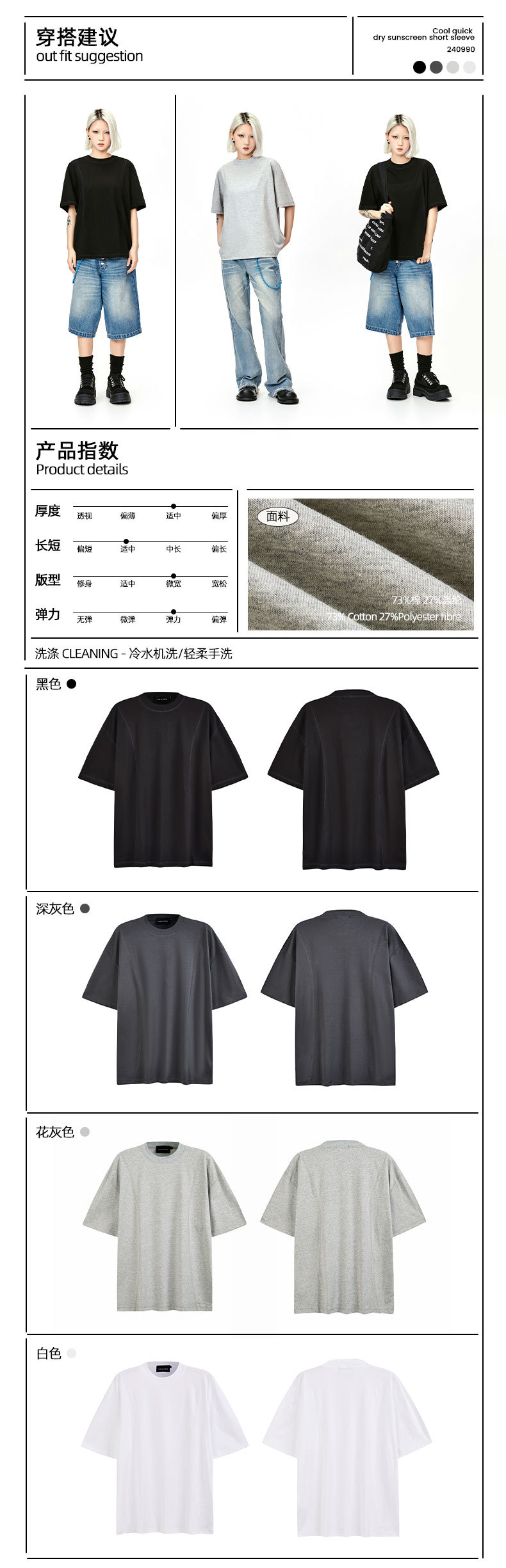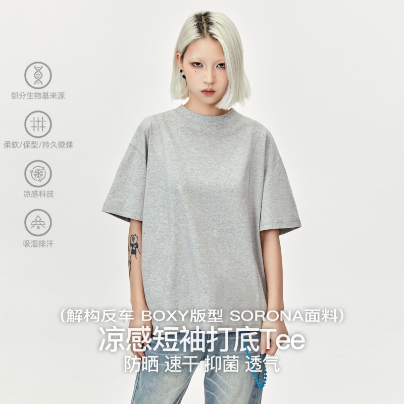 MADEEXTREME夏季基础通勤短袖解构小领口凉感防晒抑菌t恤男Sorona