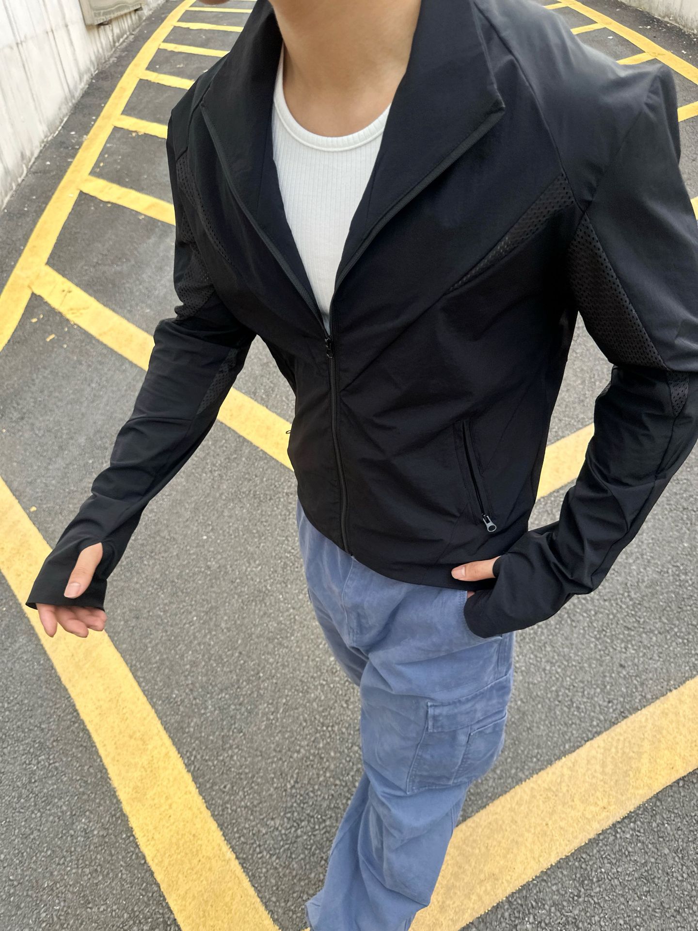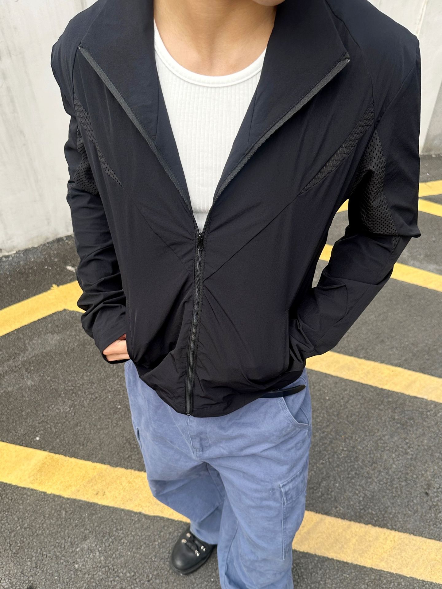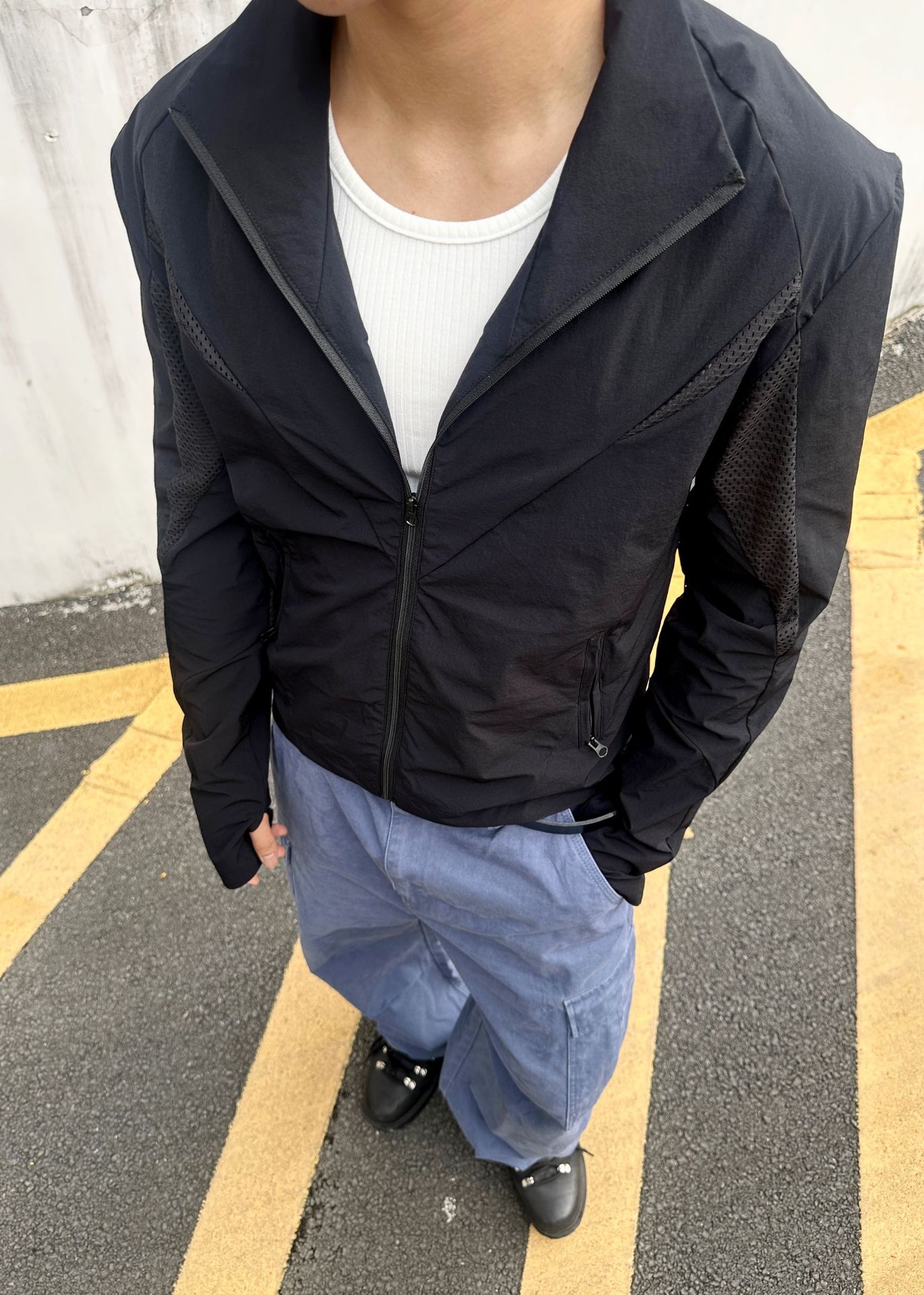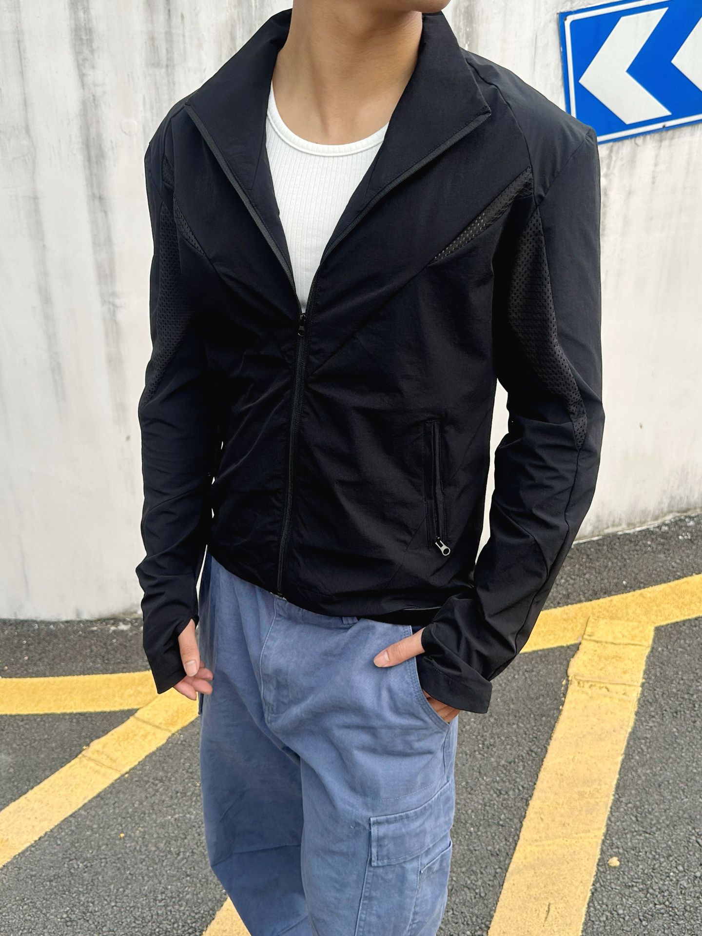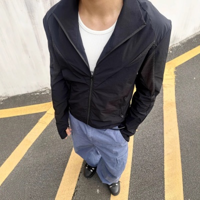 EME男装 防晒衣轻量薄款立领休闲跑步运动户外廓形网眼原纱防晒服