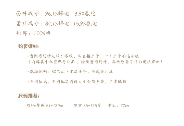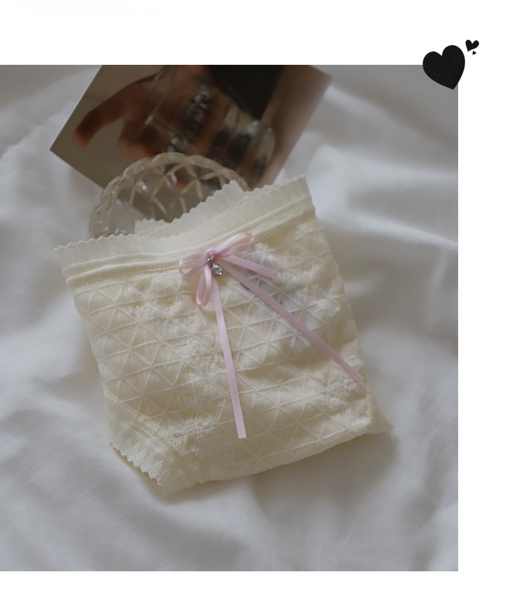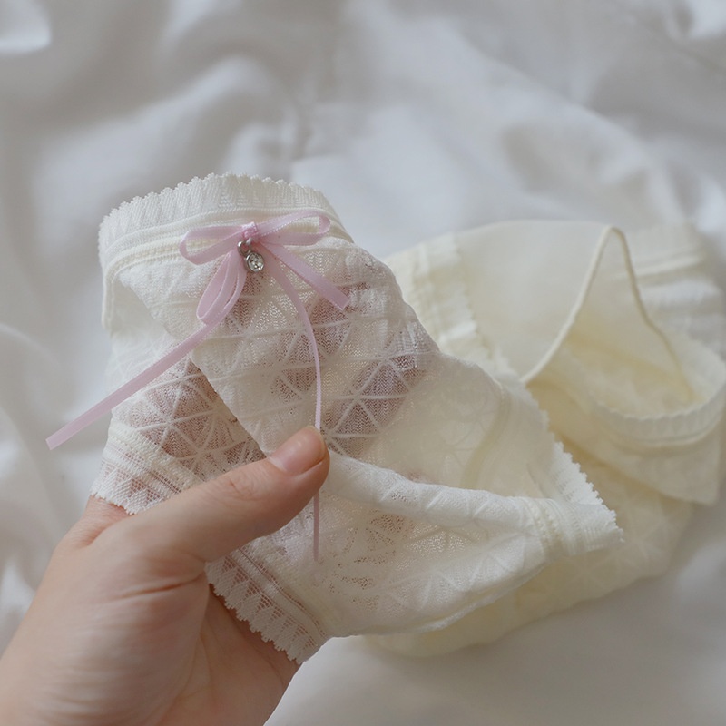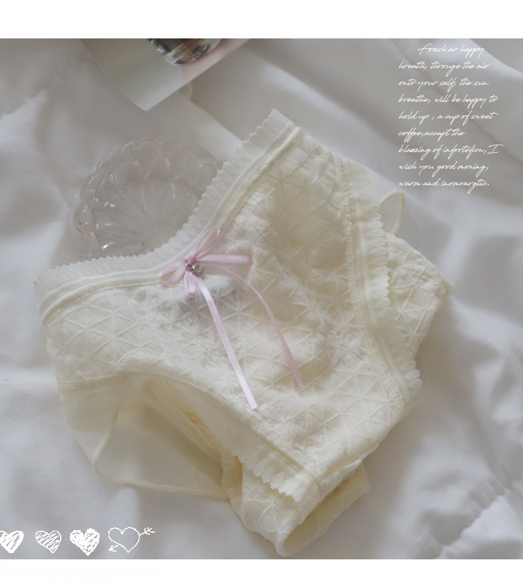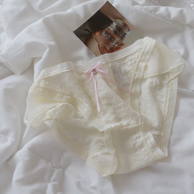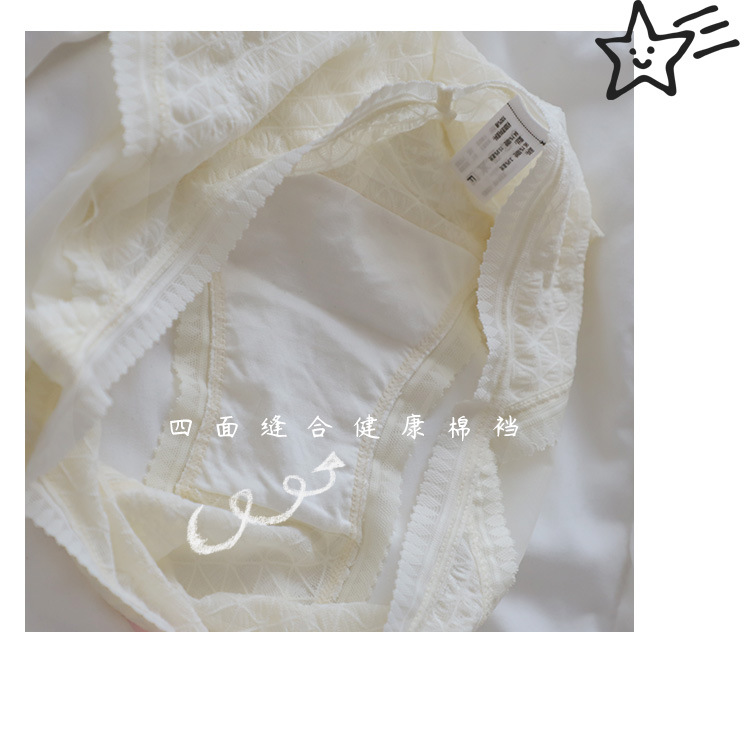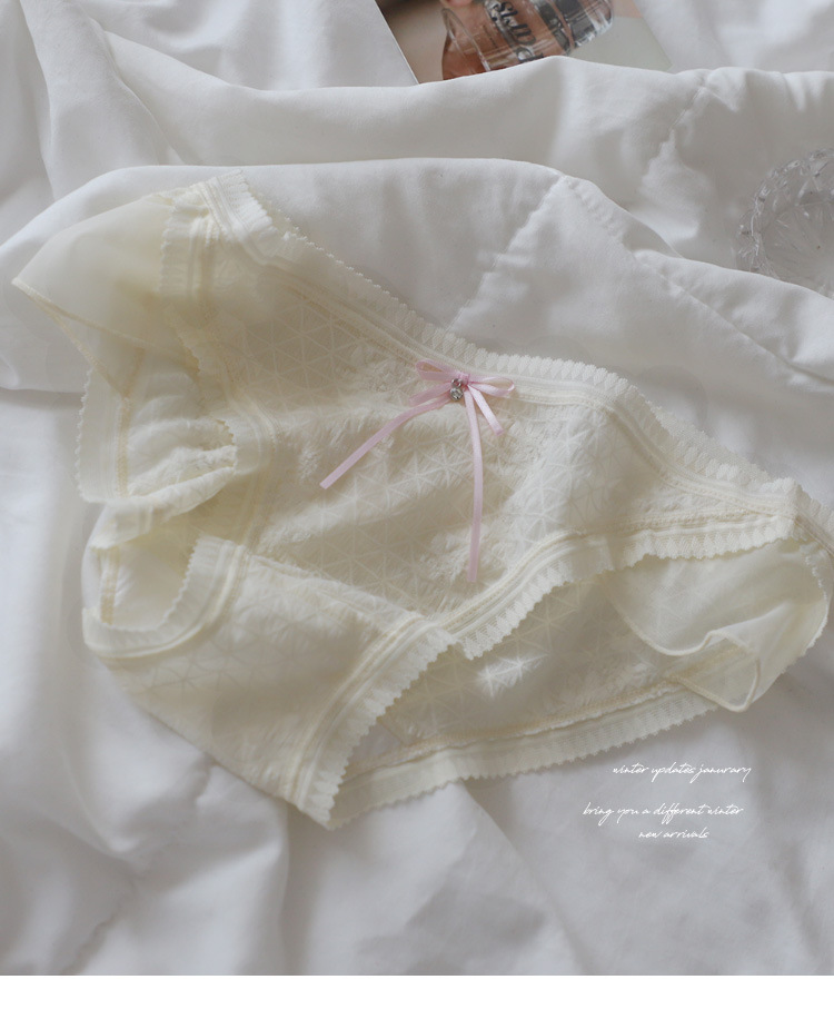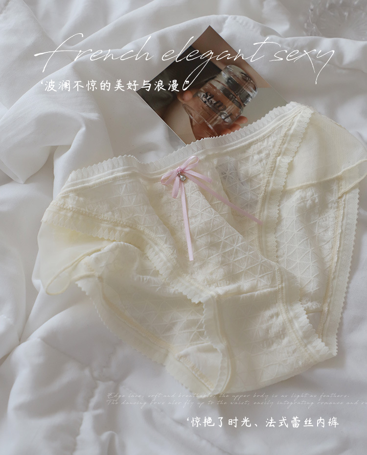 商品名称:浪漫柔软纯欲法式美人轻薄性感泡泡蕾丝三角裤米杏无痕高开叉内裤