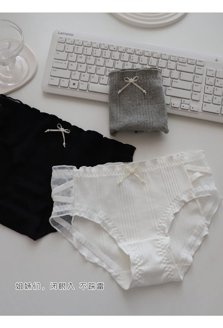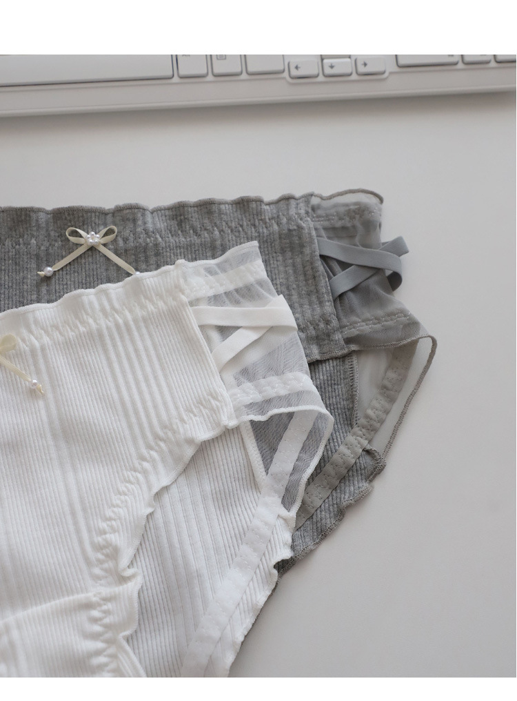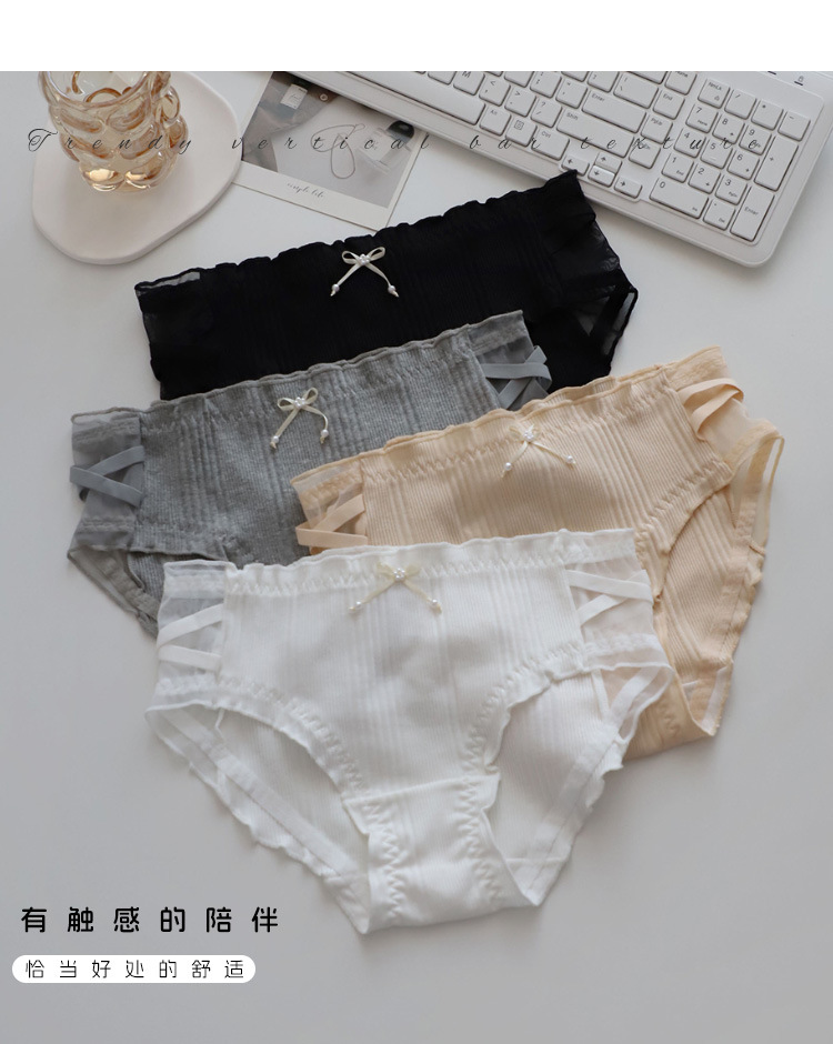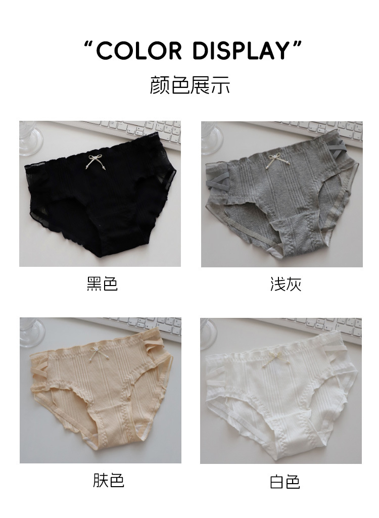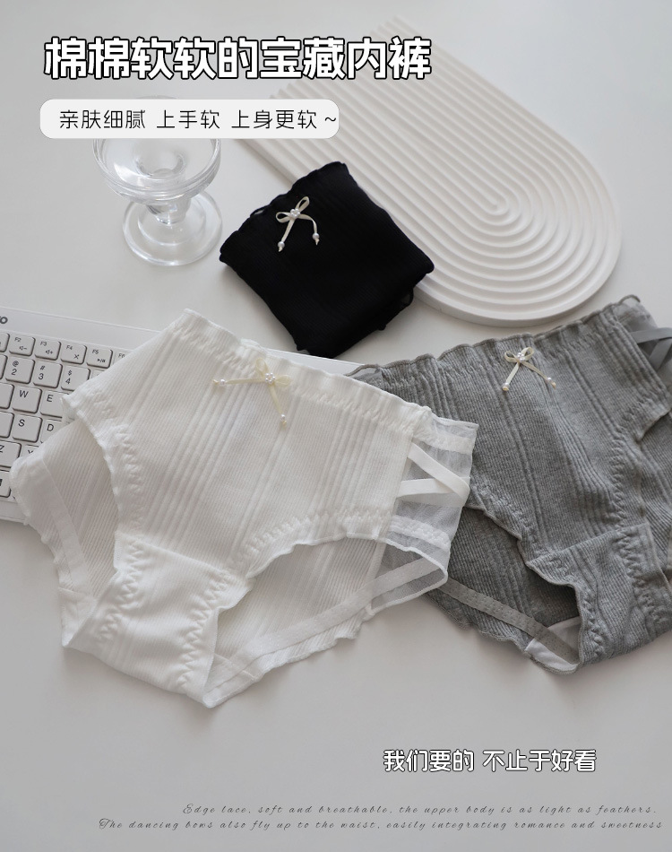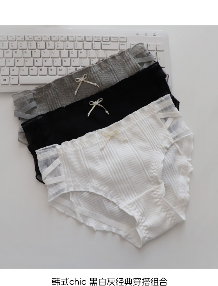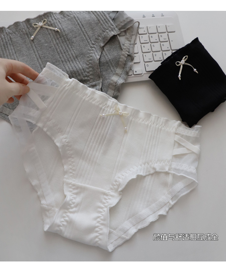 商品名称:欧尼韩系气质小姐姐弹力螺纹棉三角内裤女生网纱拼接中腰学生底裤