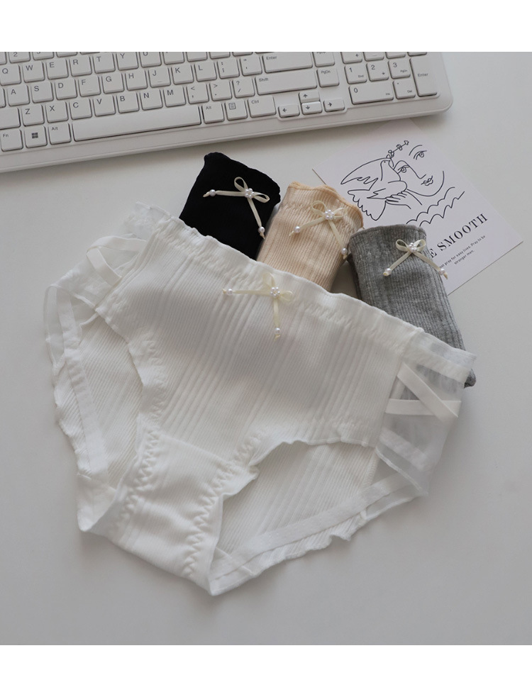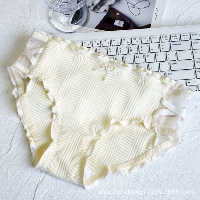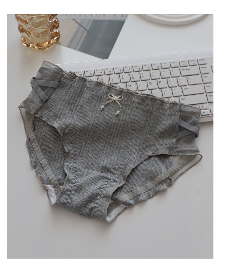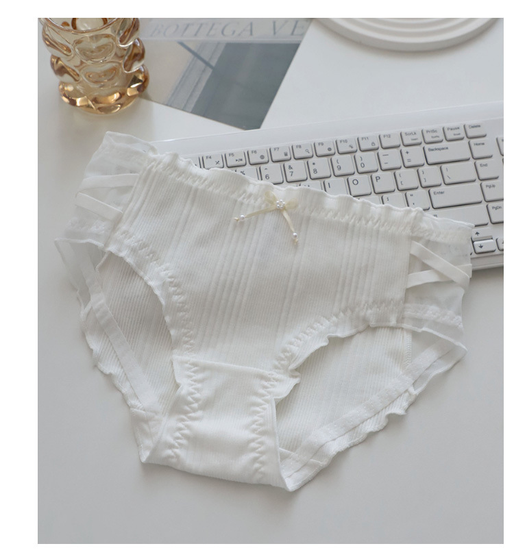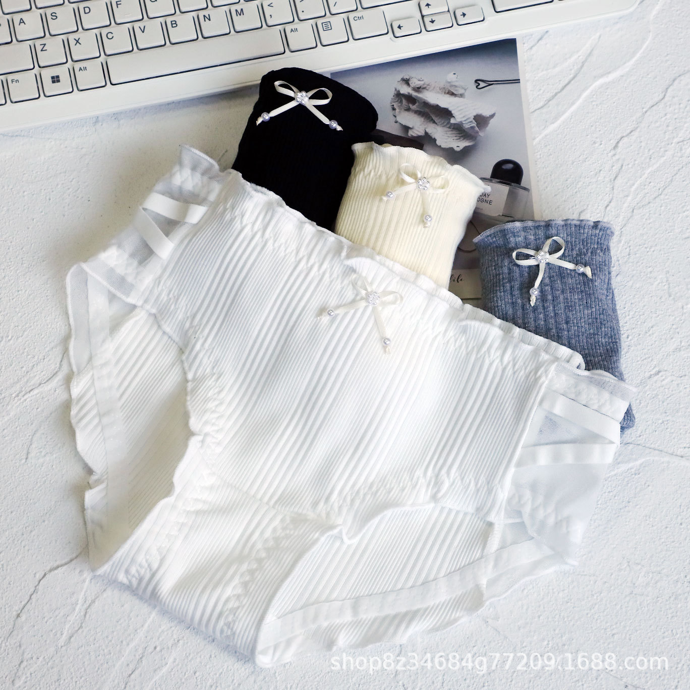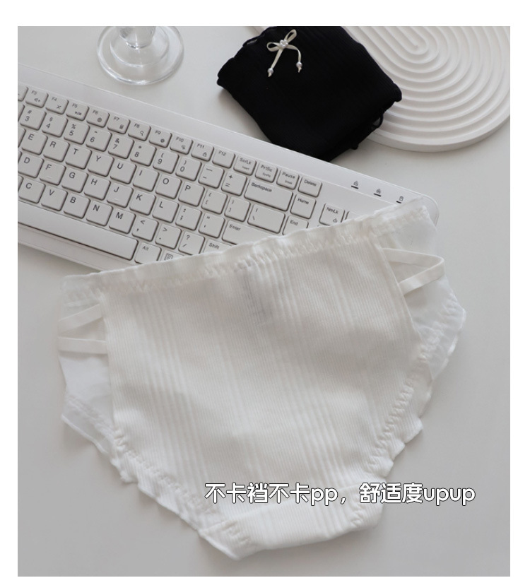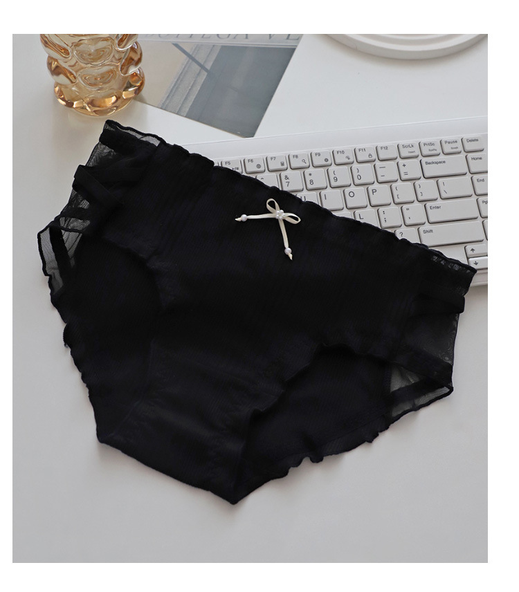商品名称:欧尼韩系气质小姐姐弹力螺纹棉三角内裤女生网纱拼接中腰学生底裤