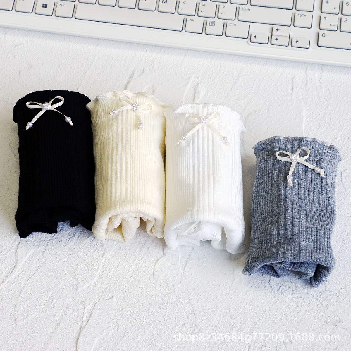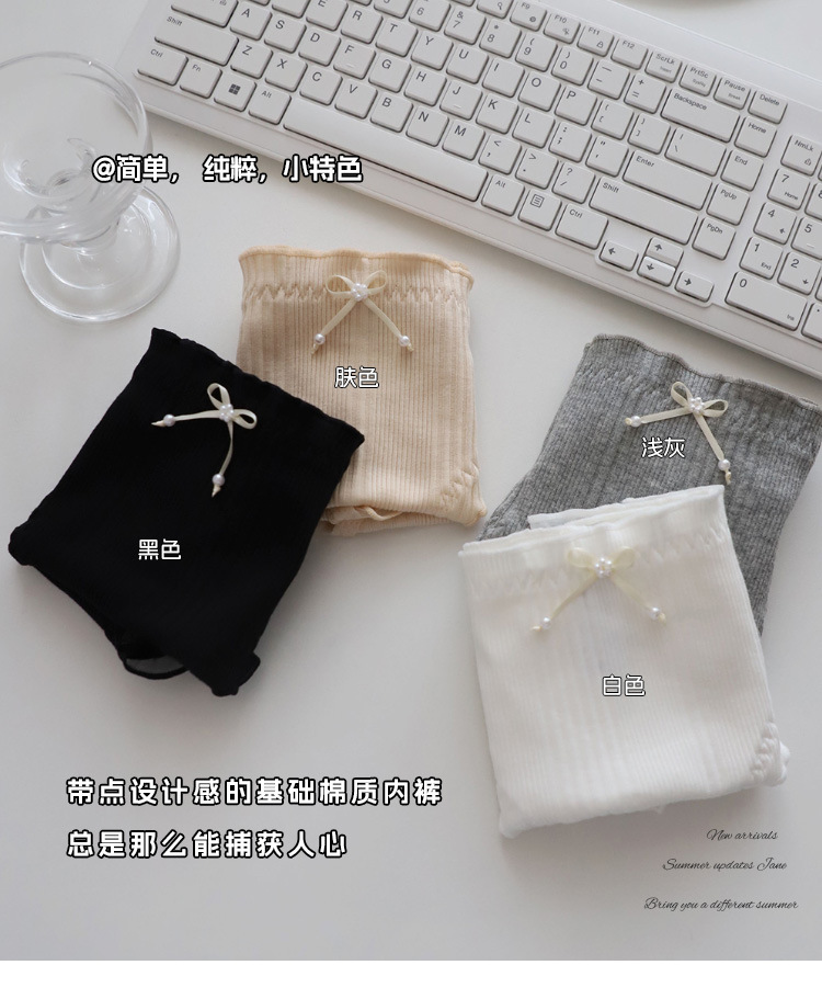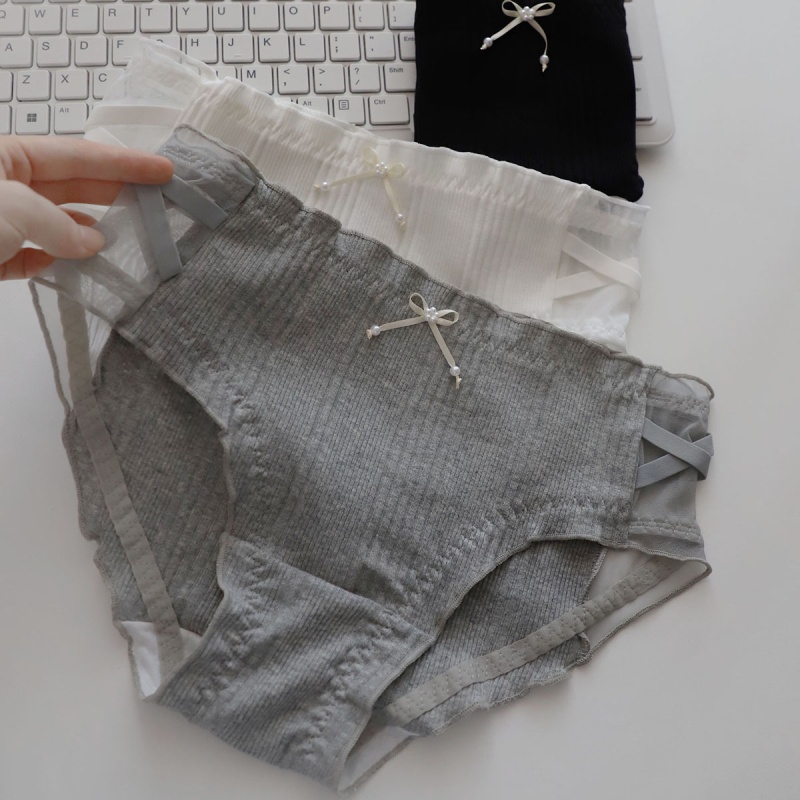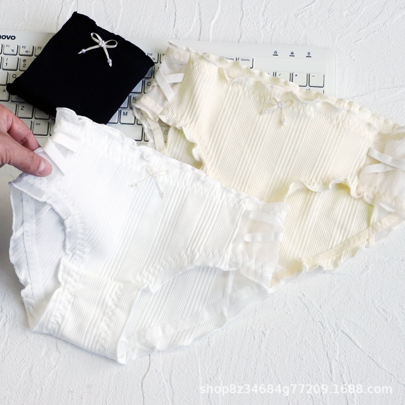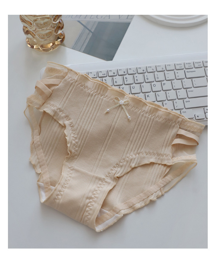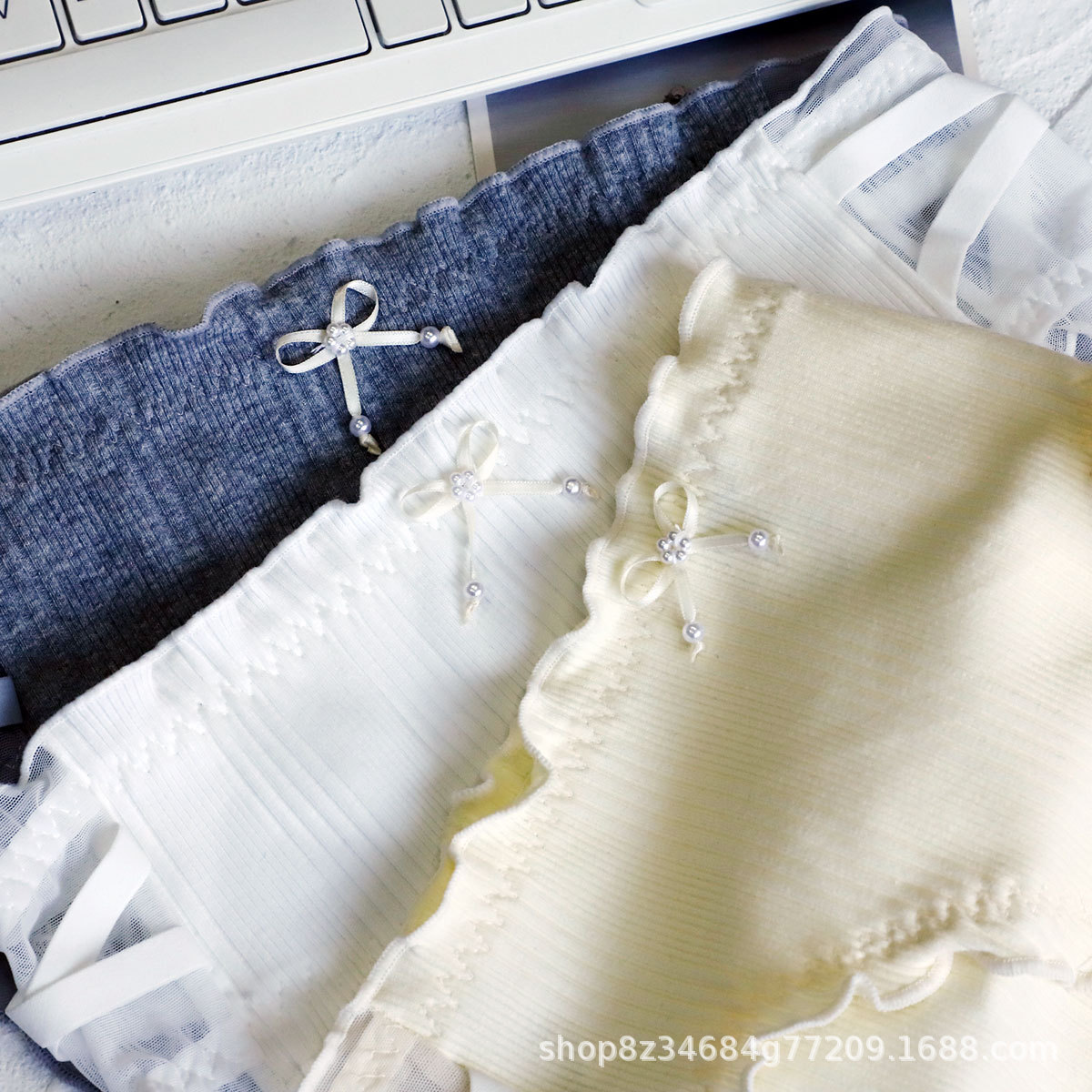 商品名称:欧尼韩系气质小姐姐弹力螺纹棉三角内裤女生网纱拼接中腰学生底裤