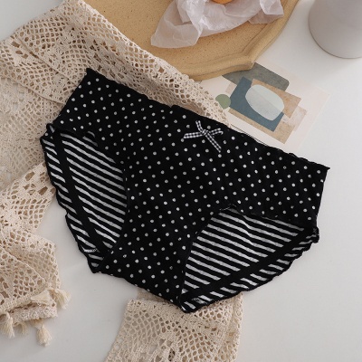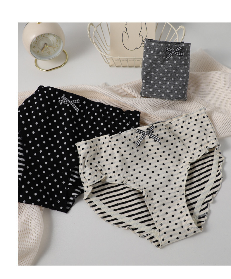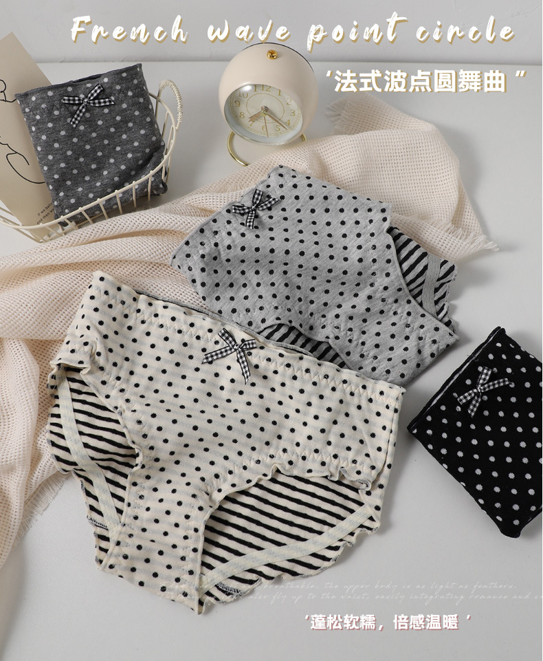 珍珠奶茶AB面双层棉可爱三角包臀波点底裤少女学生包臀精梳棉内裤