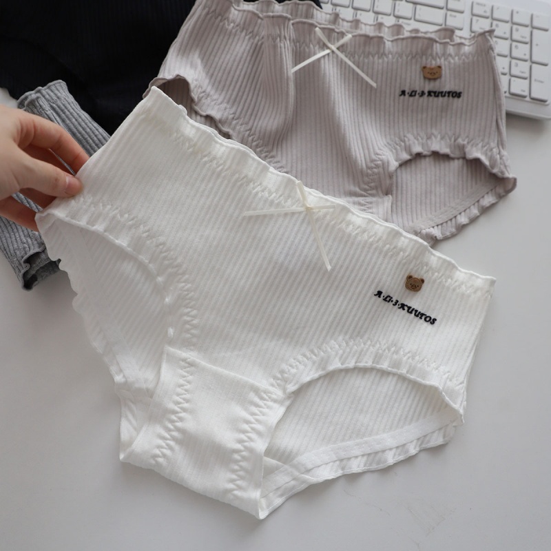 可爱呆萌小棕熊螺纹精梳棉中腰大码棉内裤学生时尚棉裤头少女底裤