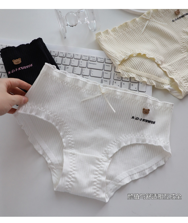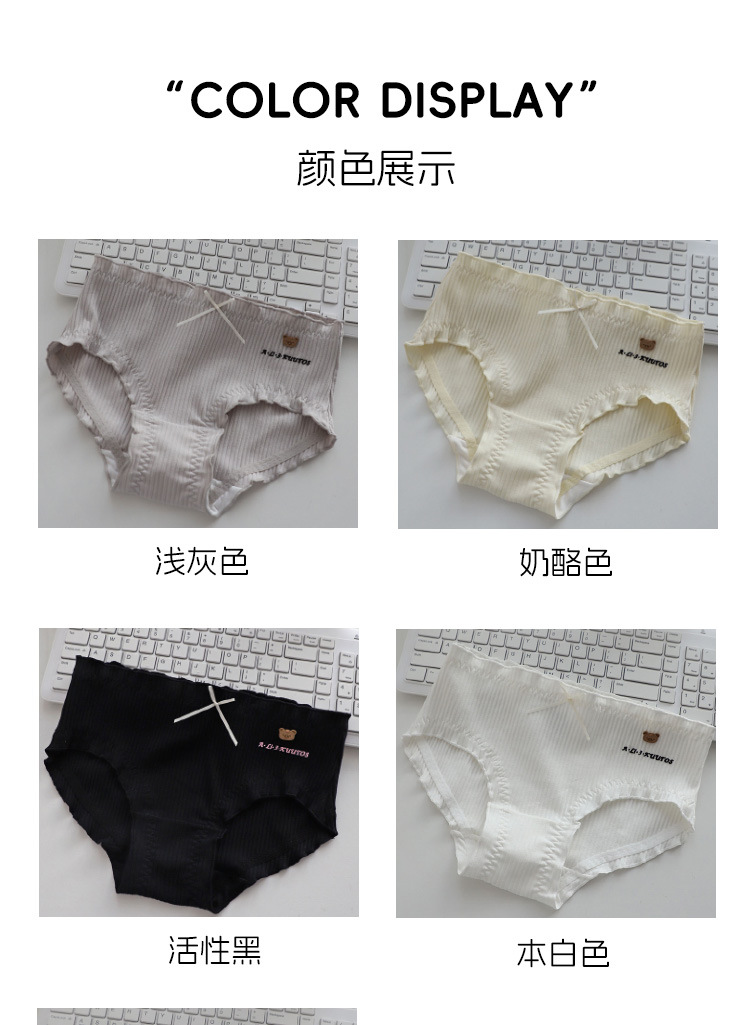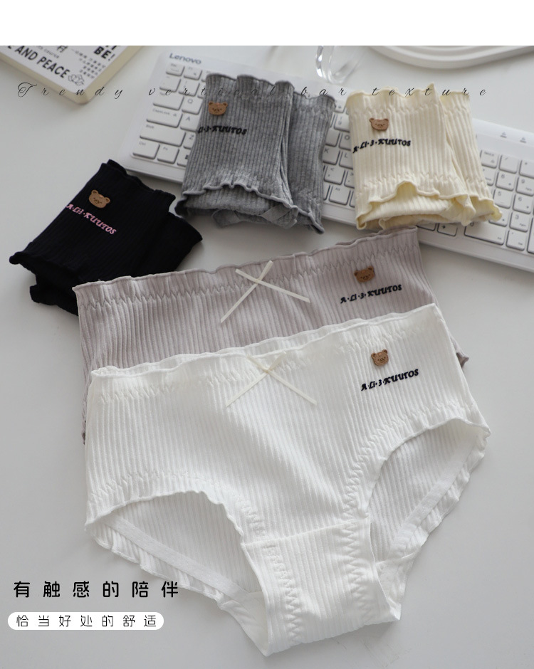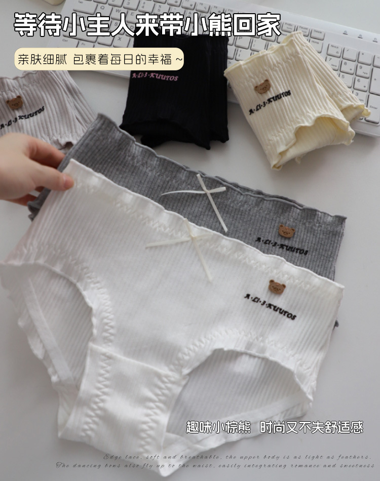商品名称:可爱呆萌小棕熊螺纹精梳棉中腰大码棉内裤学生时尚棉裤头少女底裤