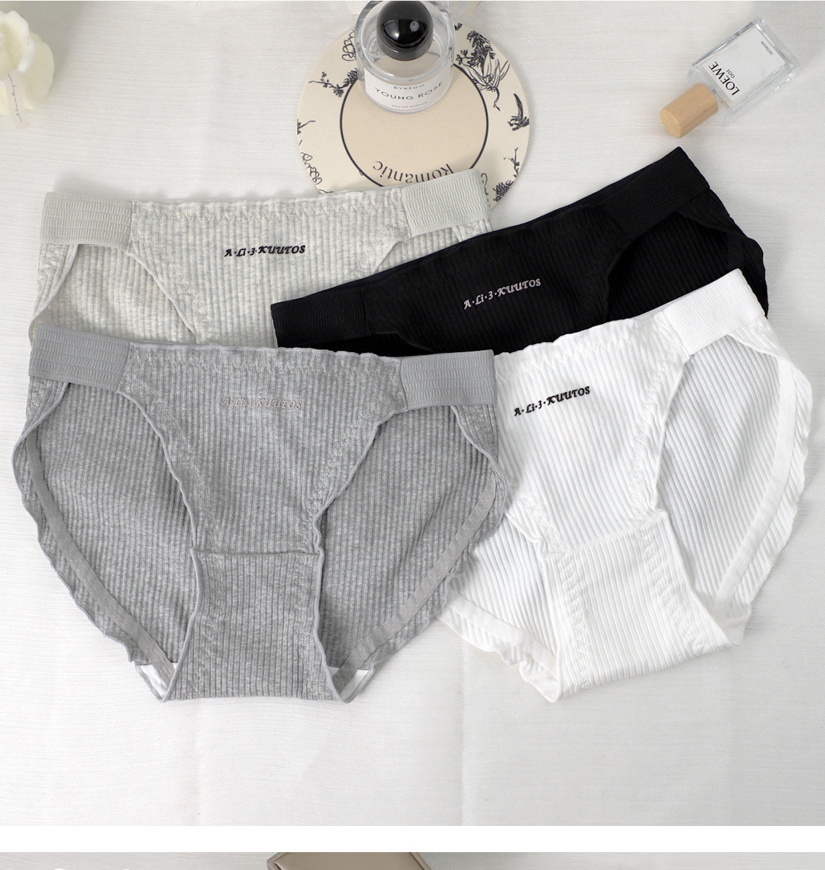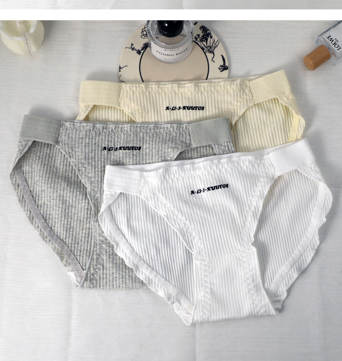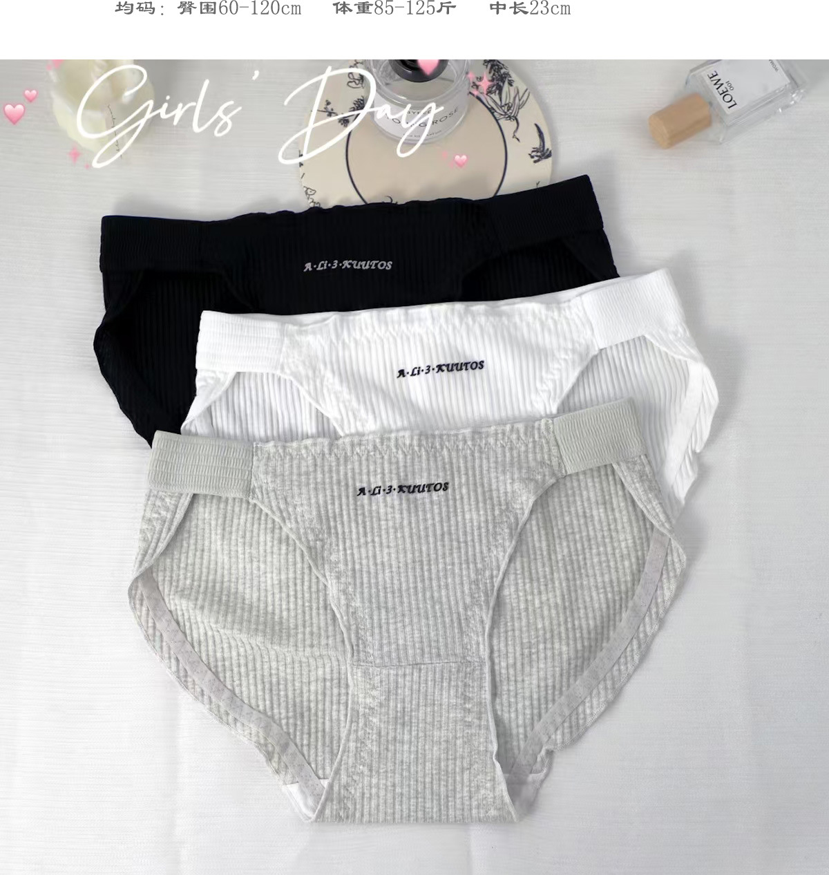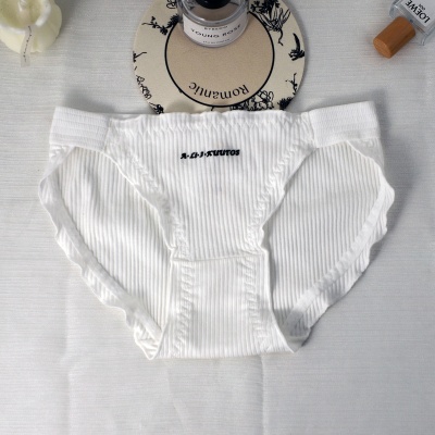 商品名称:弹力腰带螺纹棉质高开叉木耳边可爱英文滴胶舒适中腰少女三角内裤