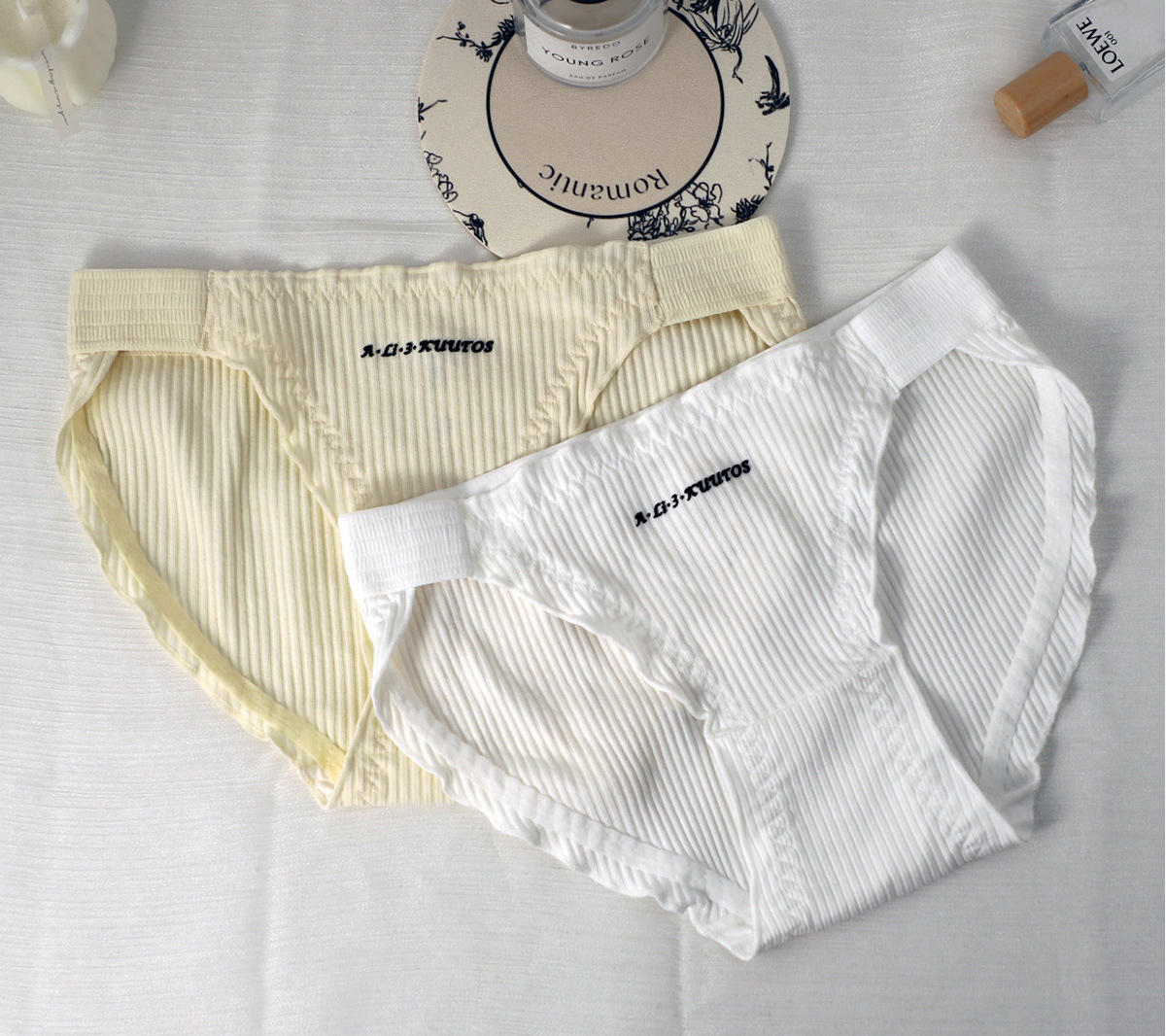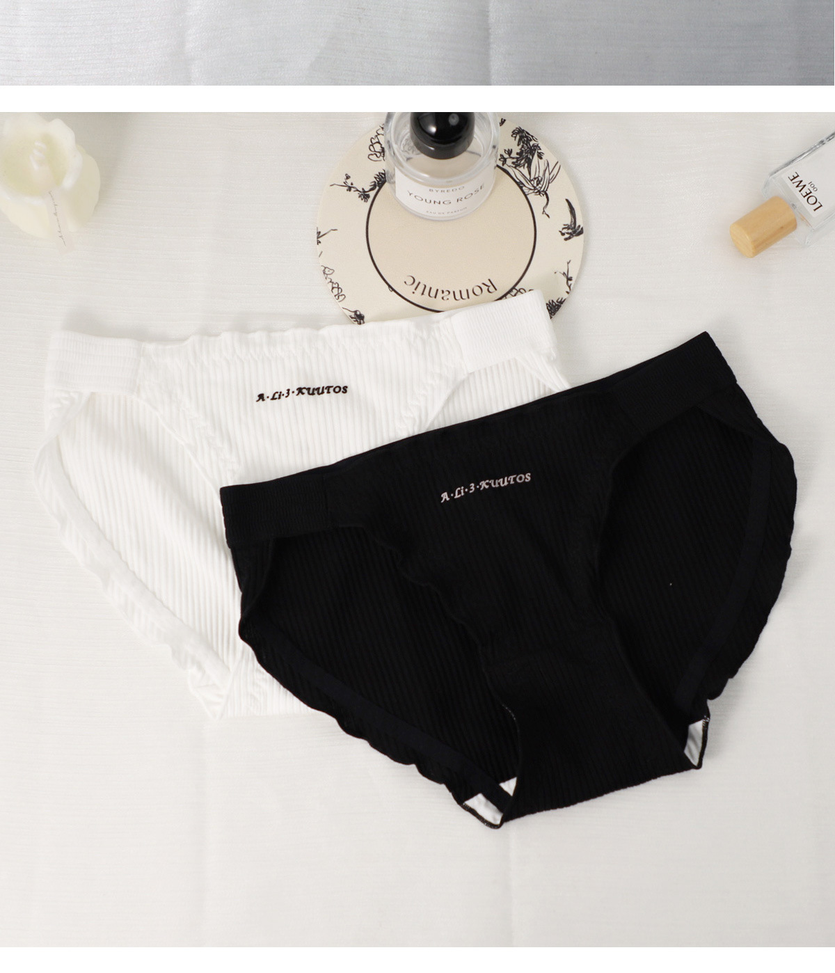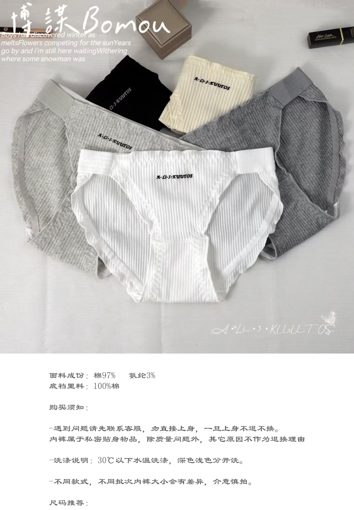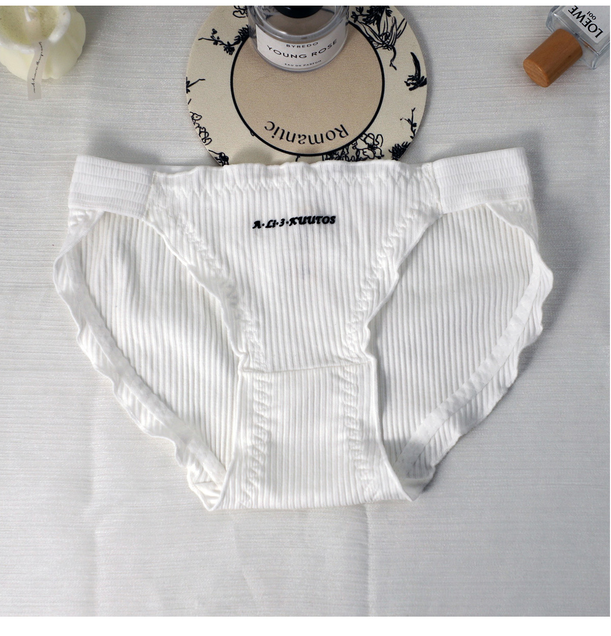 弹力腰带螺纹棉质高开叉木耳边可爱英文滴胶舒适中腰少女三角内裤