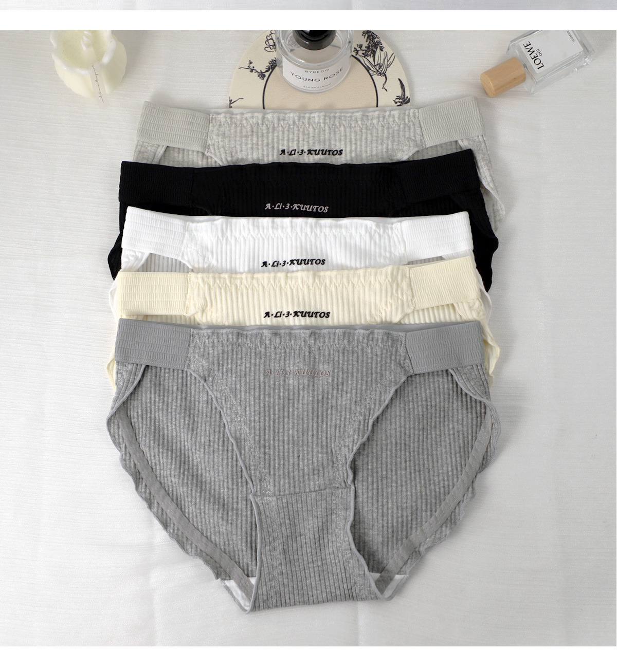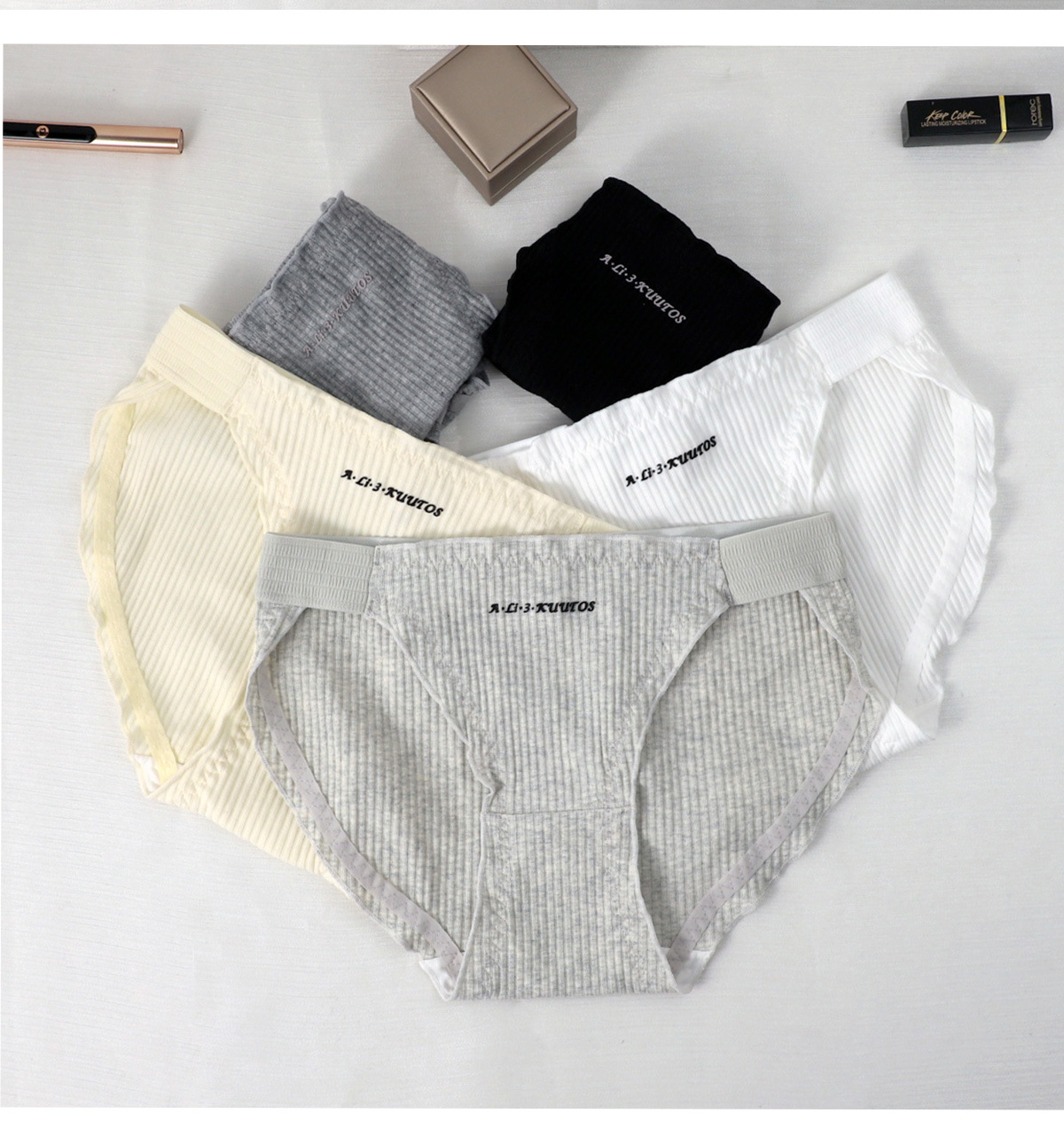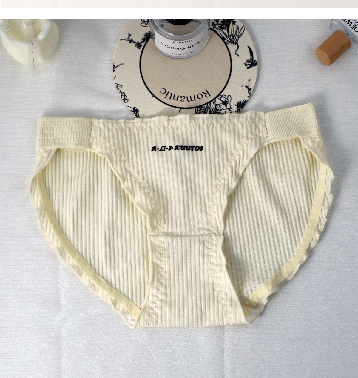 弹力腰带螺纹棉质高开叉木耳边可爱英文滴胶舒适中腰少女三角内裤
