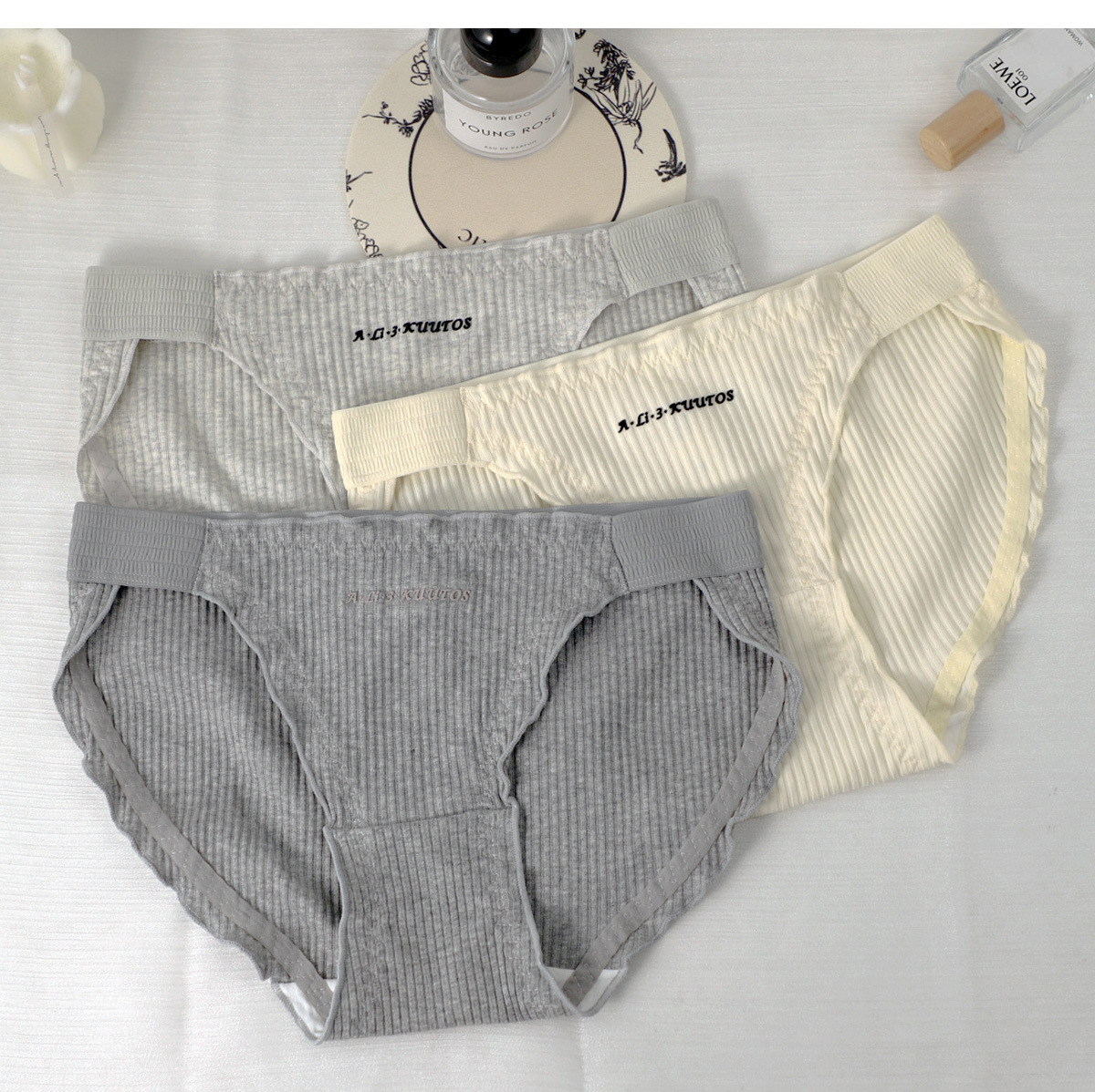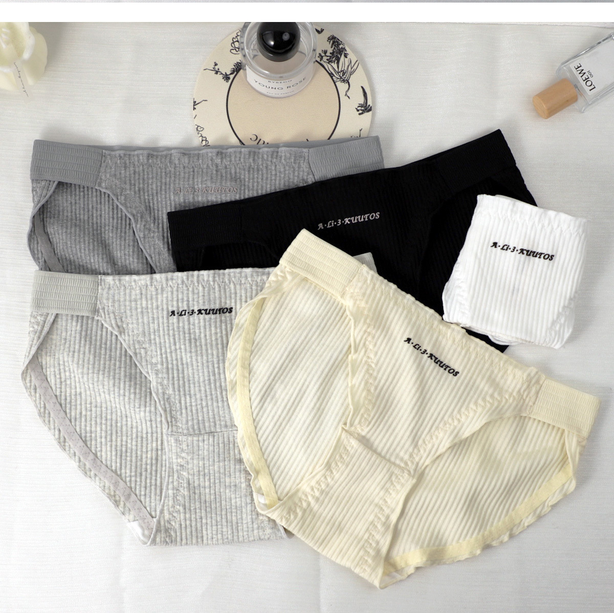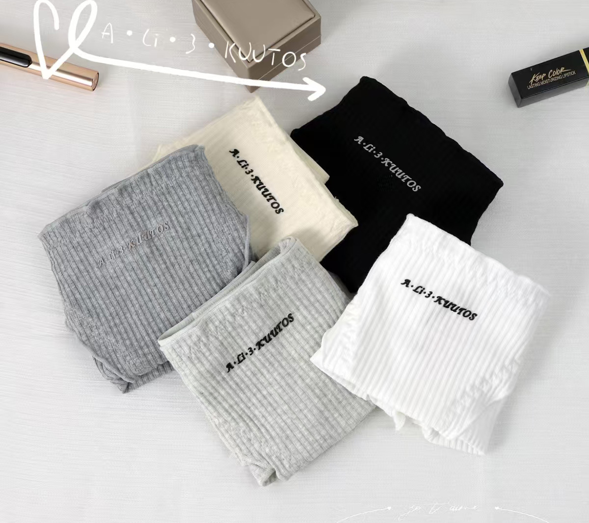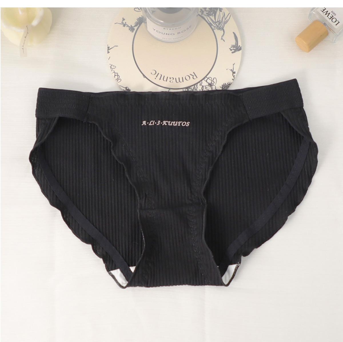 弹力腰带螺纹棉质高开叉木耳边可爱英文滴胶舒适中腰少女三角内裤