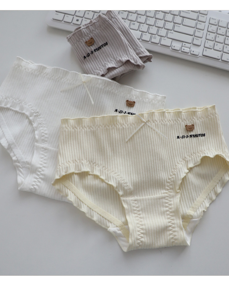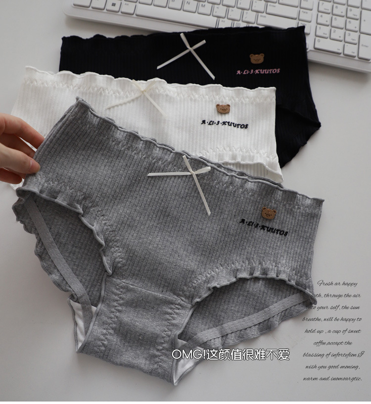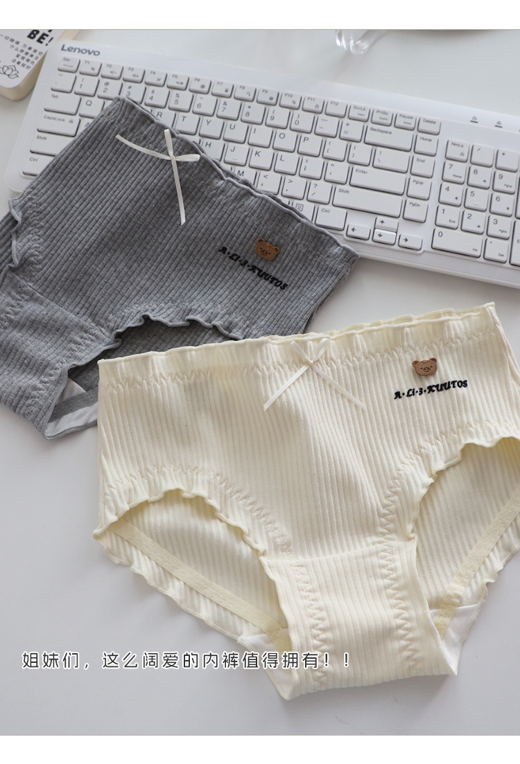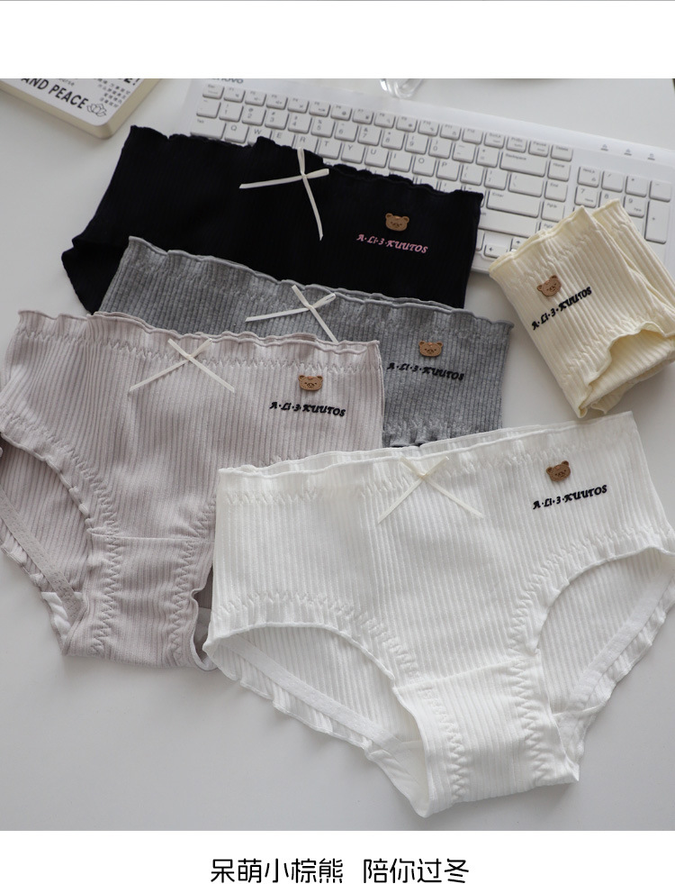 大码定制140-200斤可爱呆萌小棕熊螺纹精梳棉中腰胖妹妹大版内裤