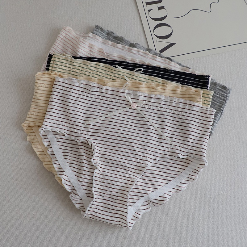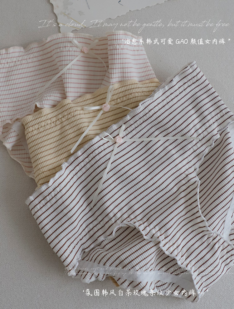 治愈系韩式可爱Gao颜值细条纹少女三角内裤棉透气中腰内裤女士新