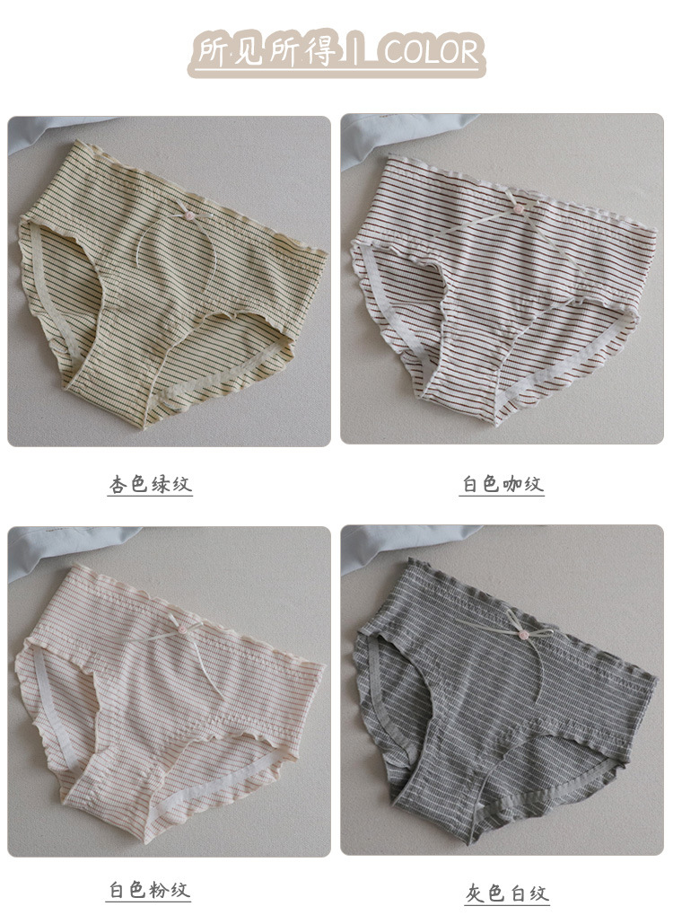 商品名称:治愈系韩式可爱Gao颜值细条纹少女三角内裤棉透气中腰内裤女士新