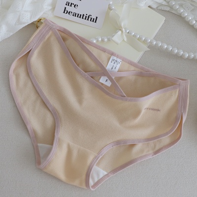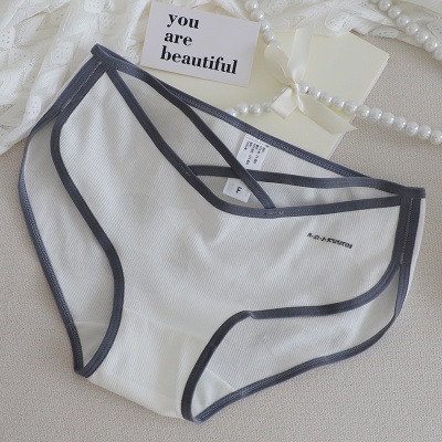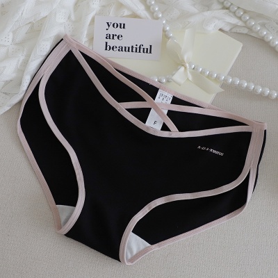 商品名称:少女学院风撞色运动内裤透气棉韩版时尚性感交叉细带中腰内裤女士