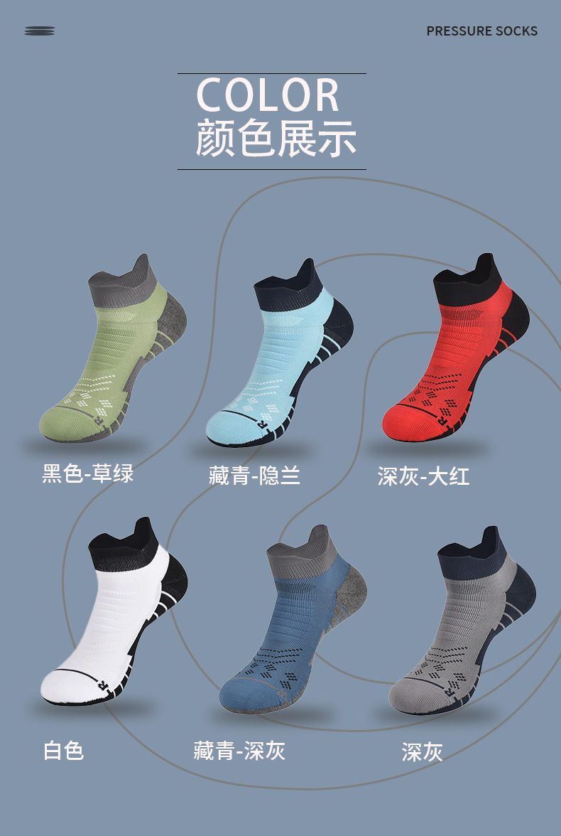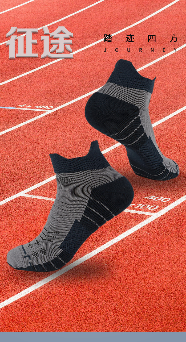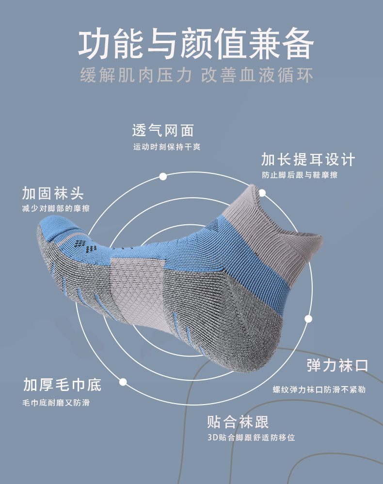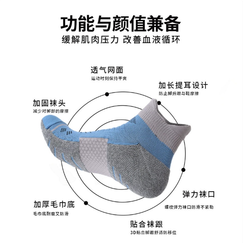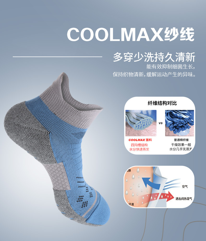 袜子男夏COOLMAX跑步袜抗菌吸汗防滑透气短筒压力袜毛巾底运动袜