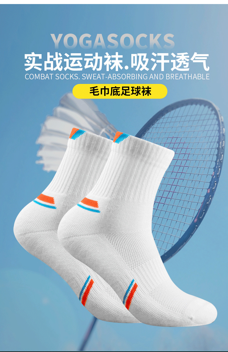 专业羽毛球袜防滑吸汗袜子中筒毛巾底加厚男女透气运动袜舒适速干