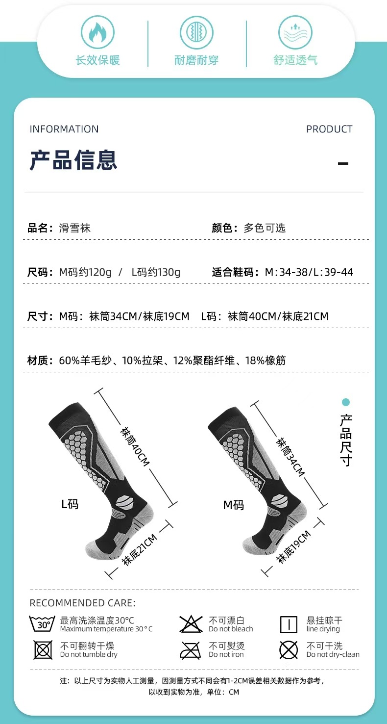 羊毛滑雪袜男女长筒保暖美利奴雪袜子儿童雪地袜专业滑雪袜