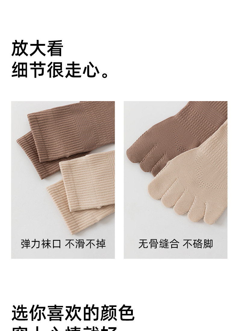 定制五指袜子男女春夏季竹纤维棉袜短筒抗菌防滑点胶不掉跟分趾袜