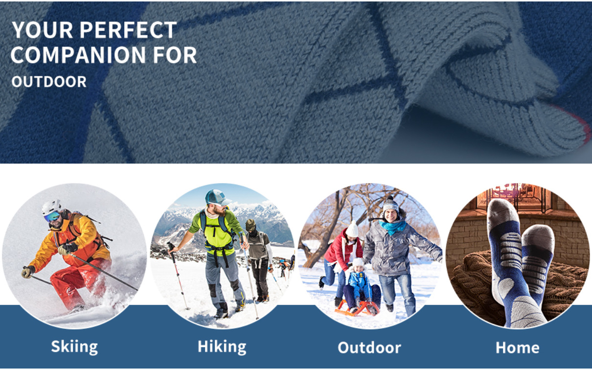 儿童滑雪袜加厚保暖冬季登山袜防滑毛巾底户外成人雪地长筒运动袜