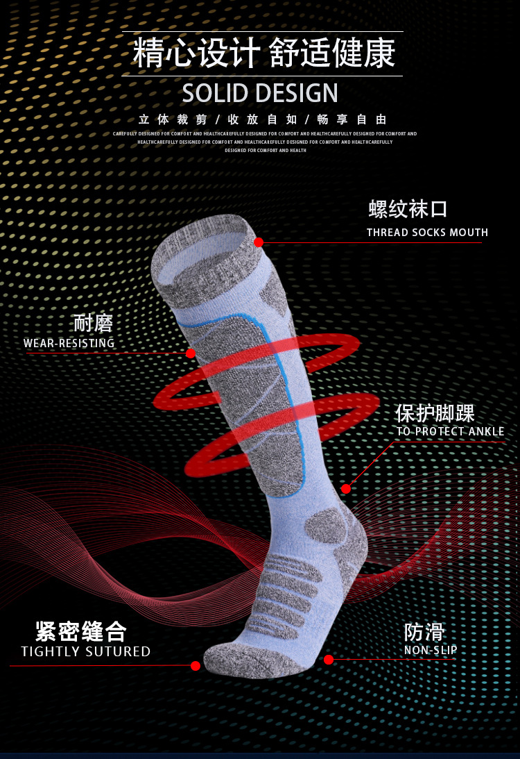 滑雪袜户外抗寒雪地袜保暖袜美利奴羊毛袜长筒毛巾底袜子厂家防寒