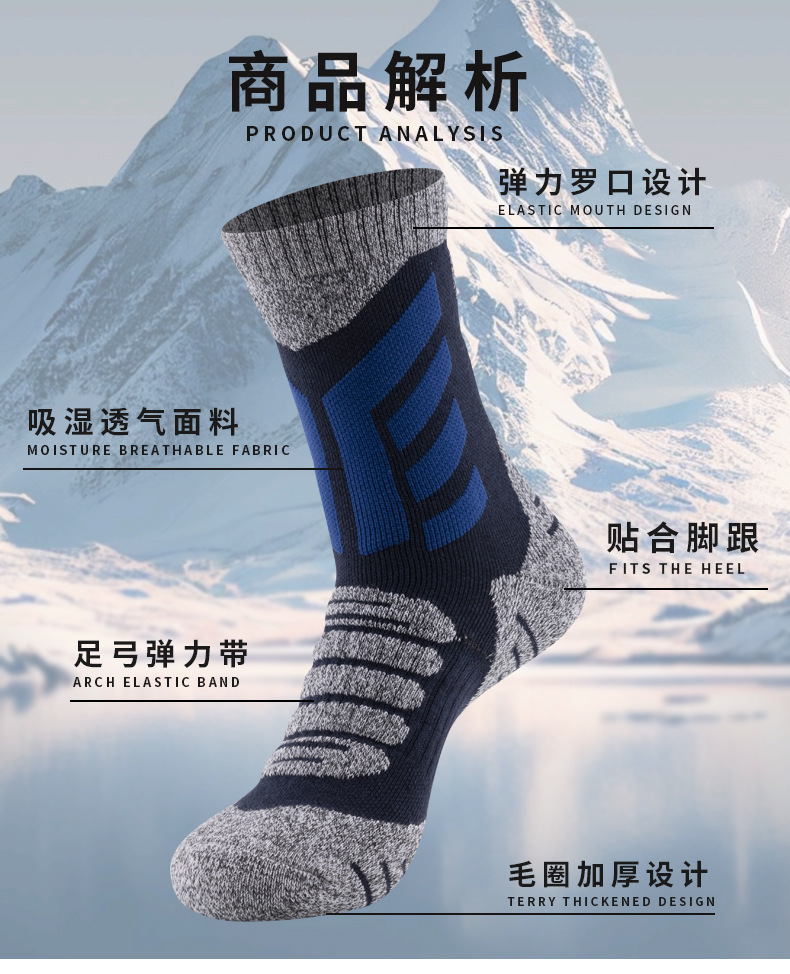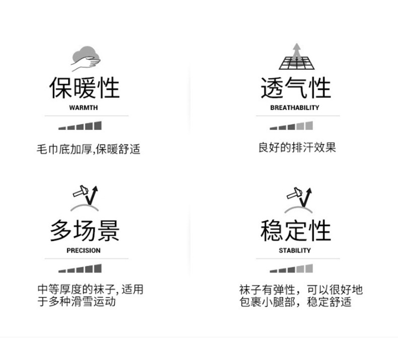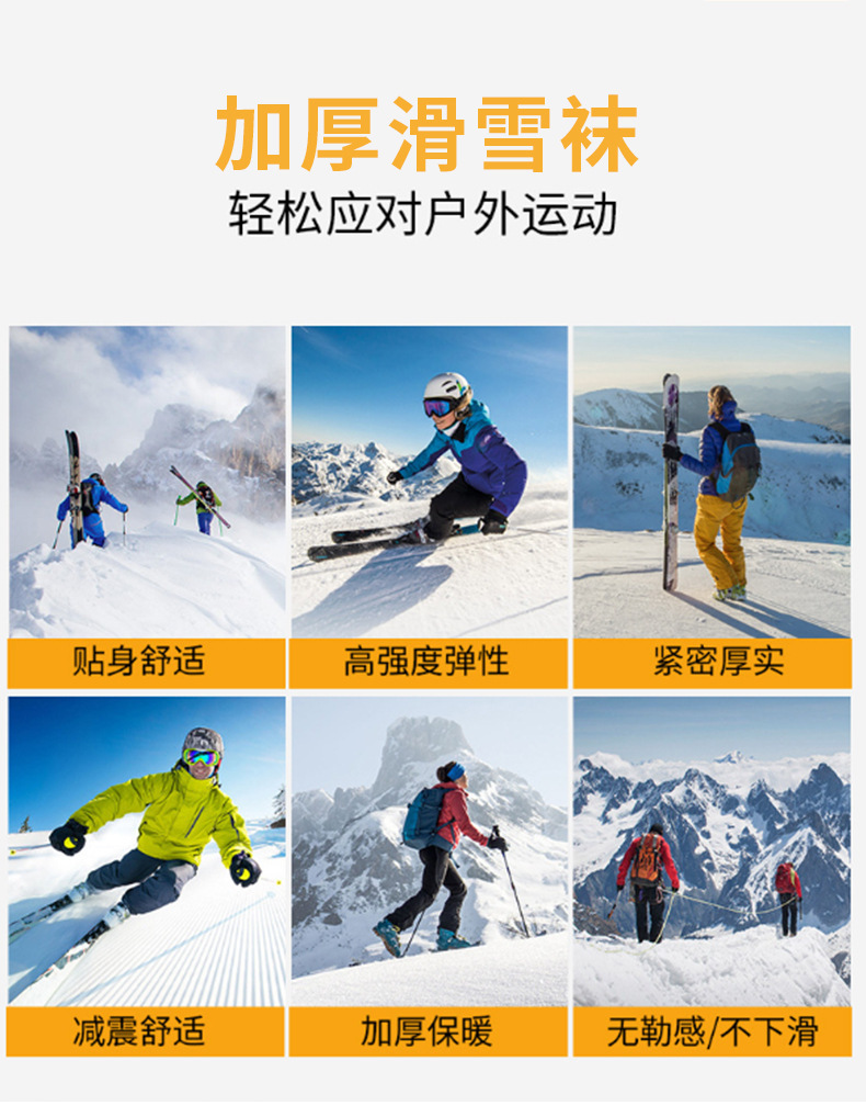 滑雪袜中筒男女款专业户外运动吸汗保暖毛巾底雪地袜防寒冬季百搭