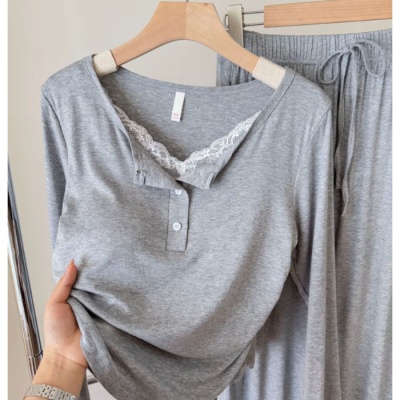 商品名称:带胸垫蕾丝长袖莫代尔睡衣女薄款可外穿家居服两件套少女简约宿舍