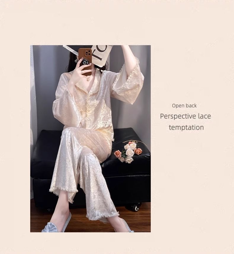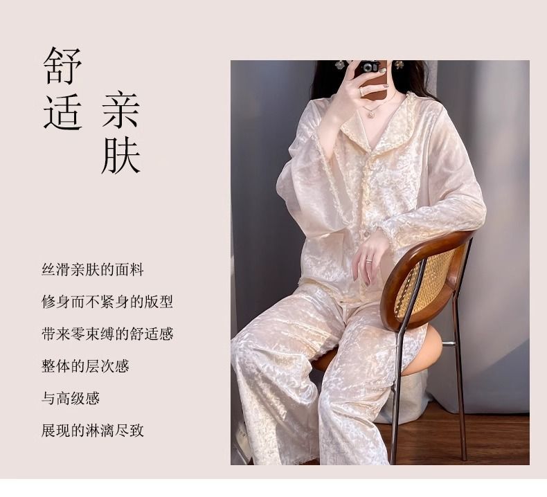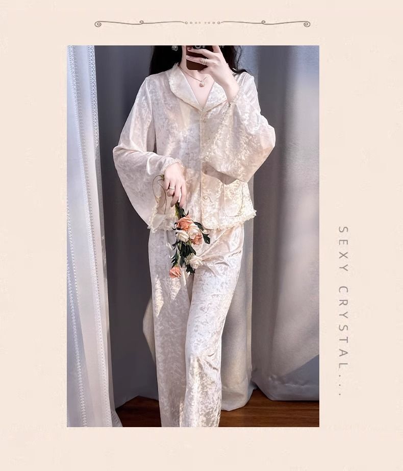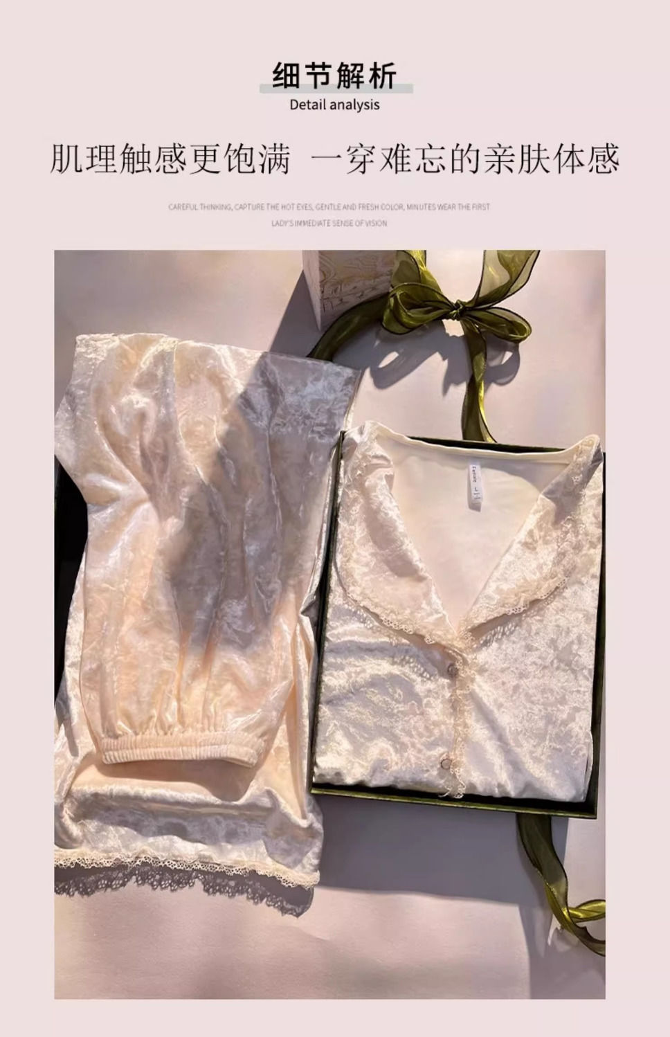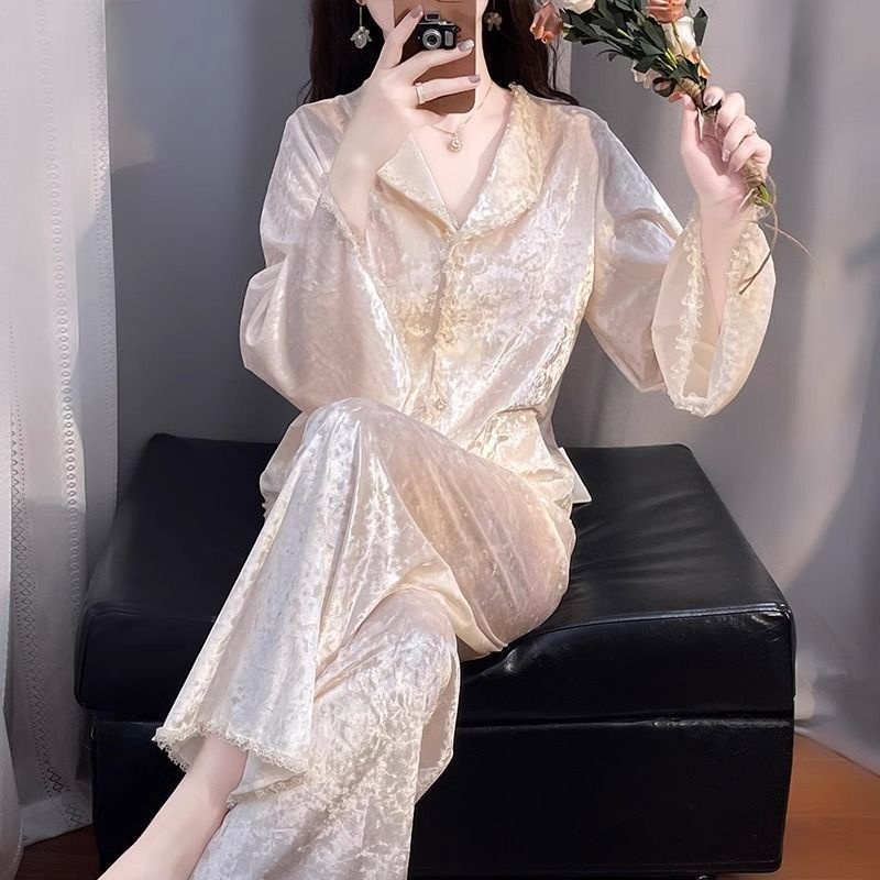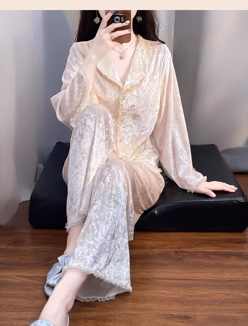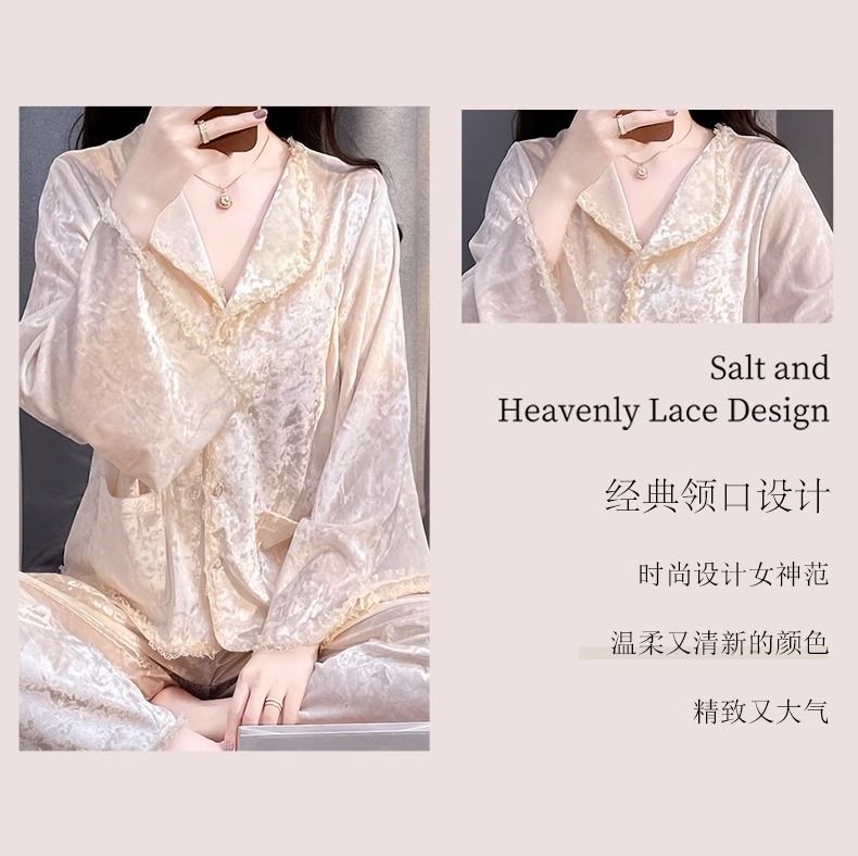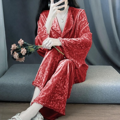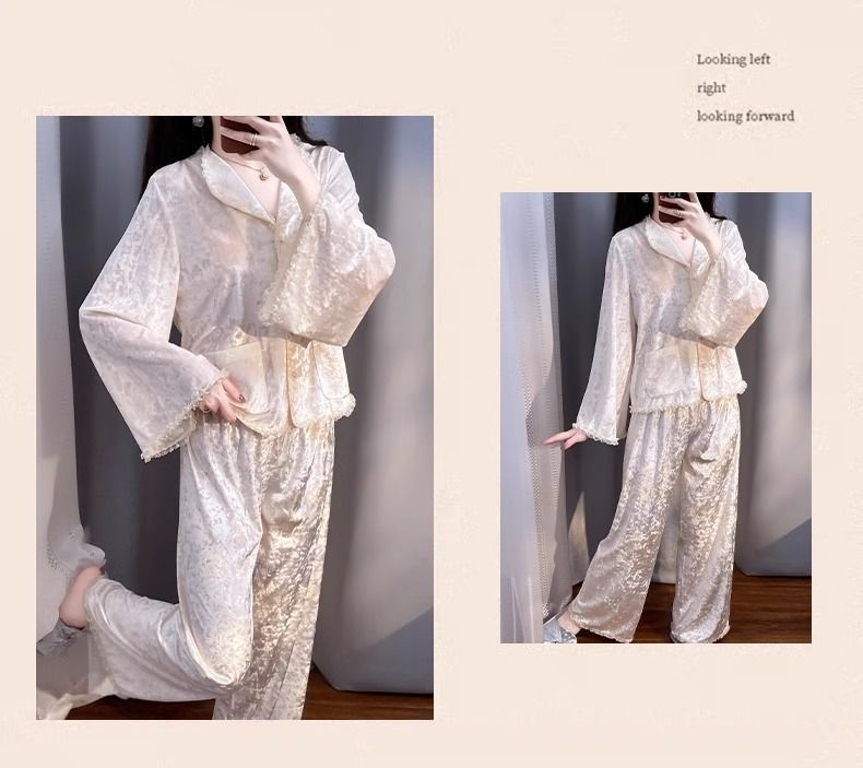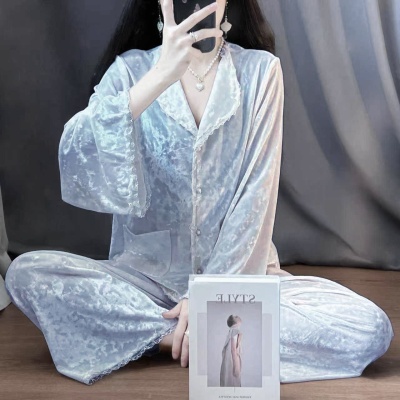 商品名称:春季新款金丝绒开衫长袖可外穿时尚风家居服套装保暖睡衣女