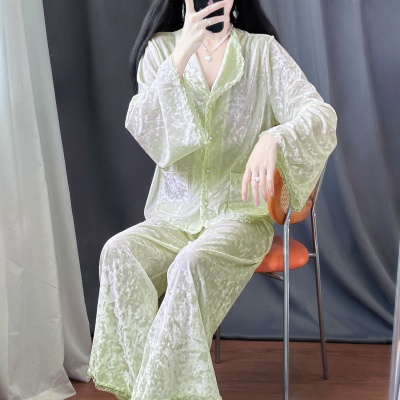 春季新款金丝绒开衫长袖可外穿时尚风家居服套装保暖睡衣女