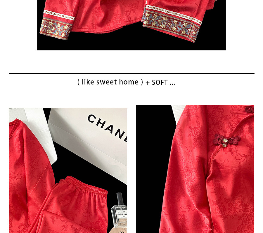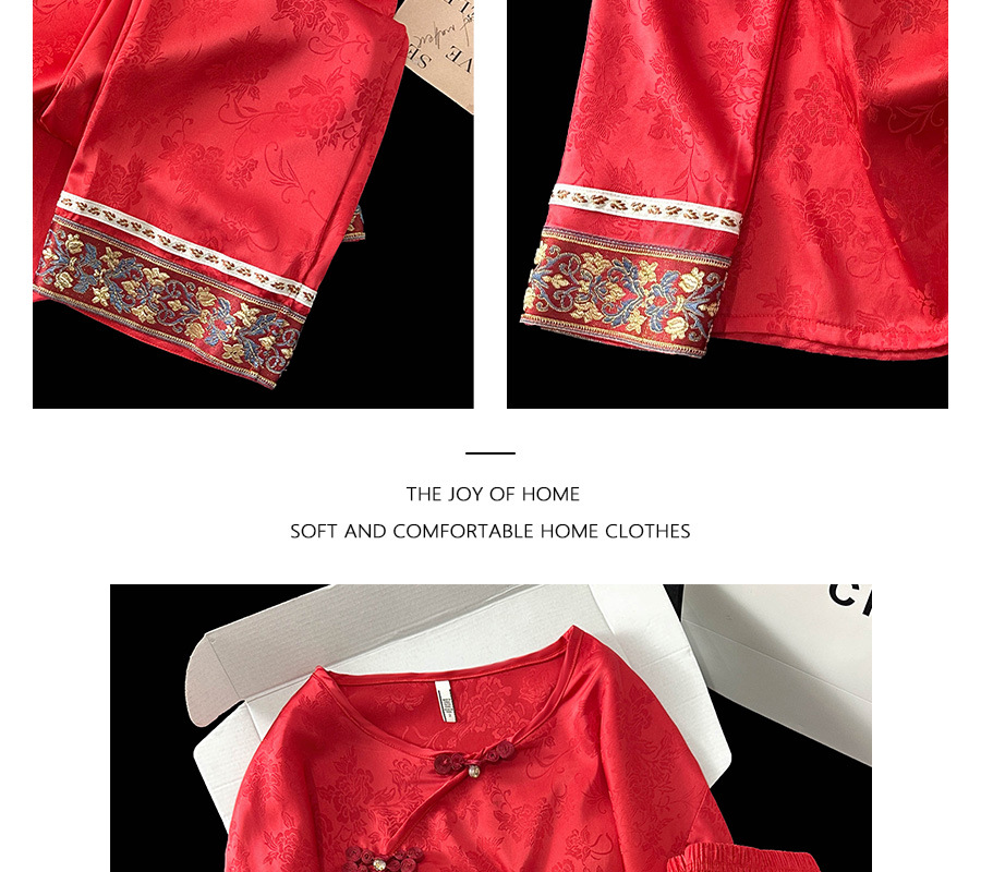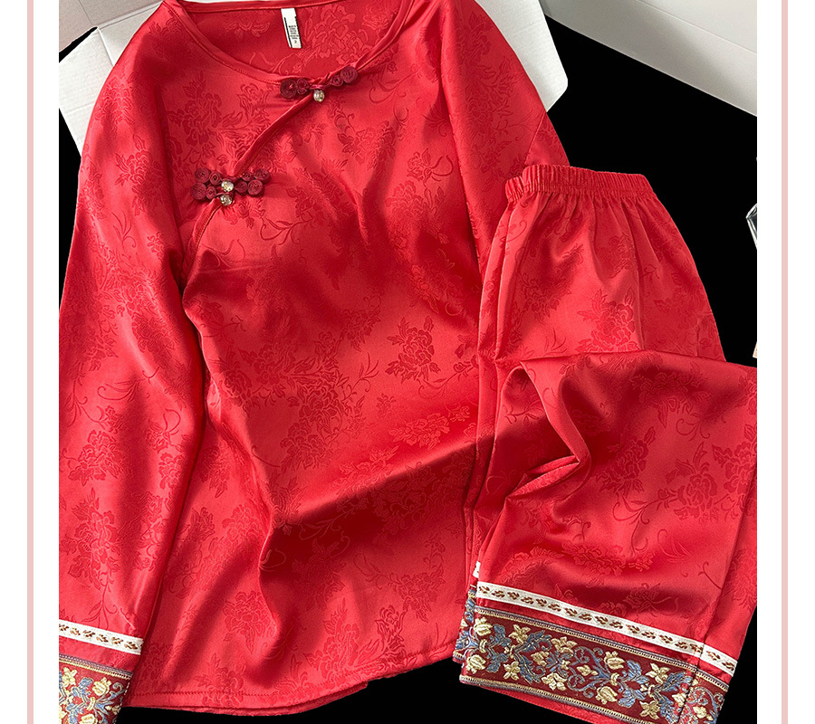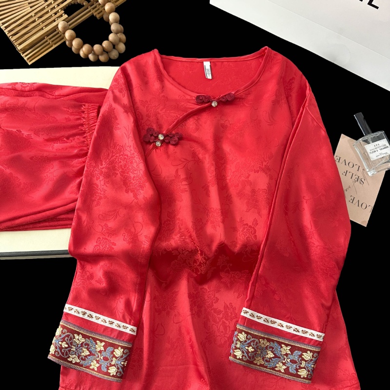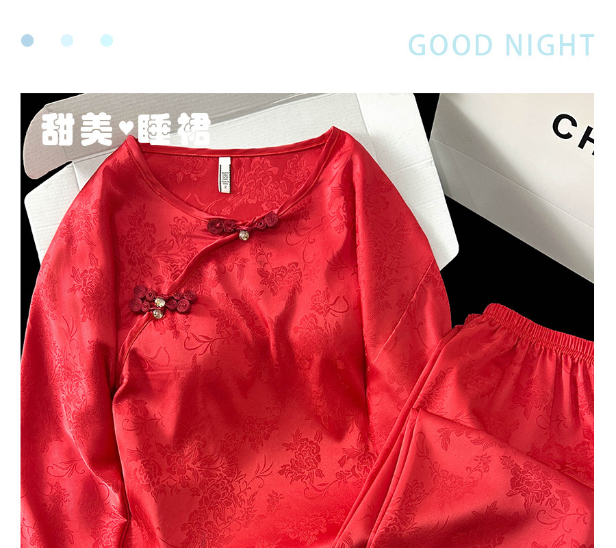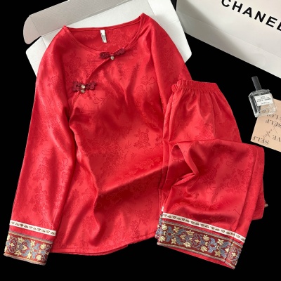 商品名称:2025春季新款中国红新中式提花睡衣女长袖盘扣家居服套装高级感国