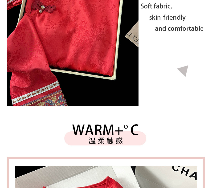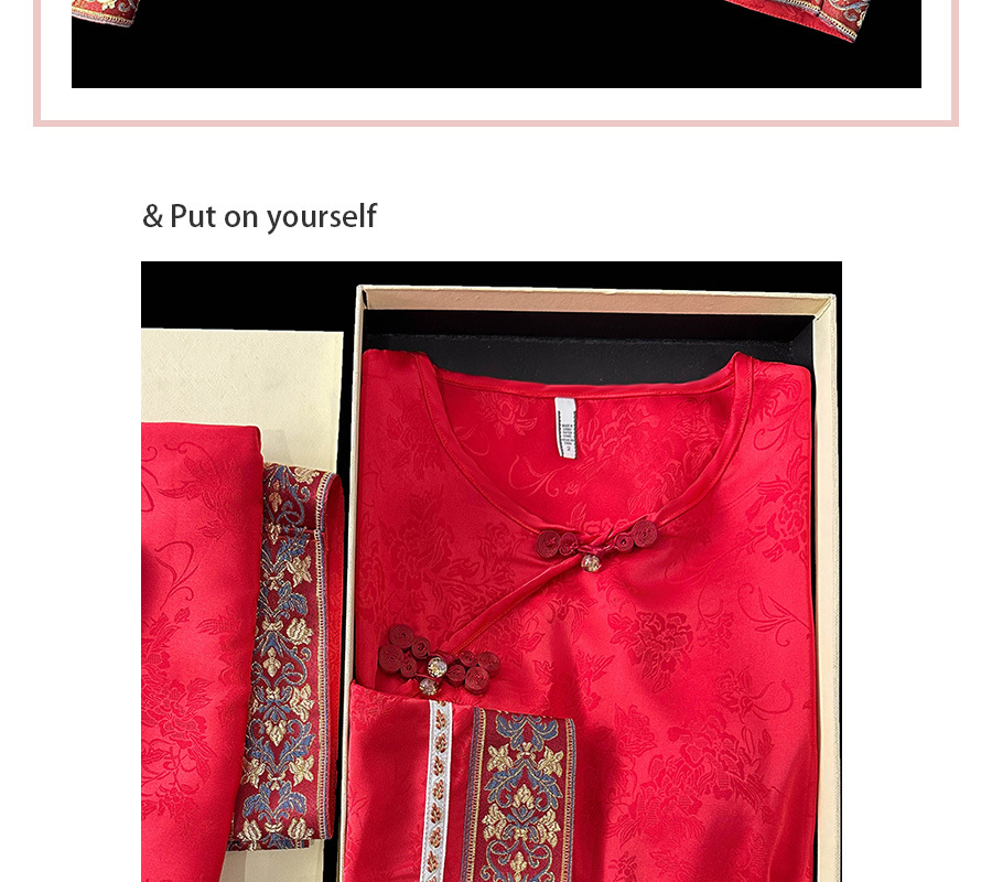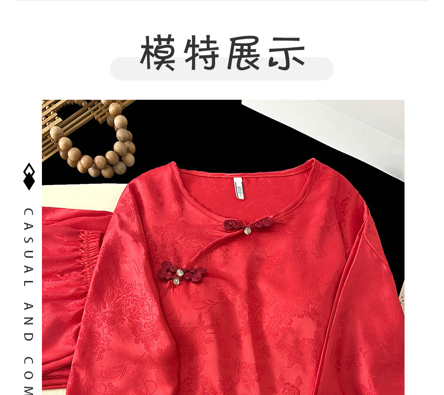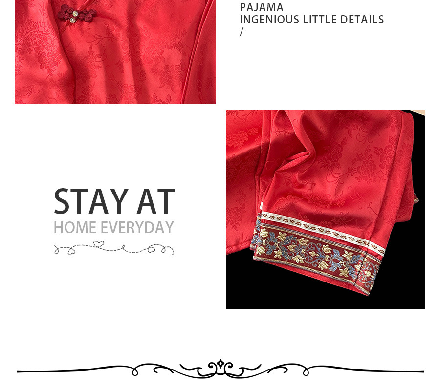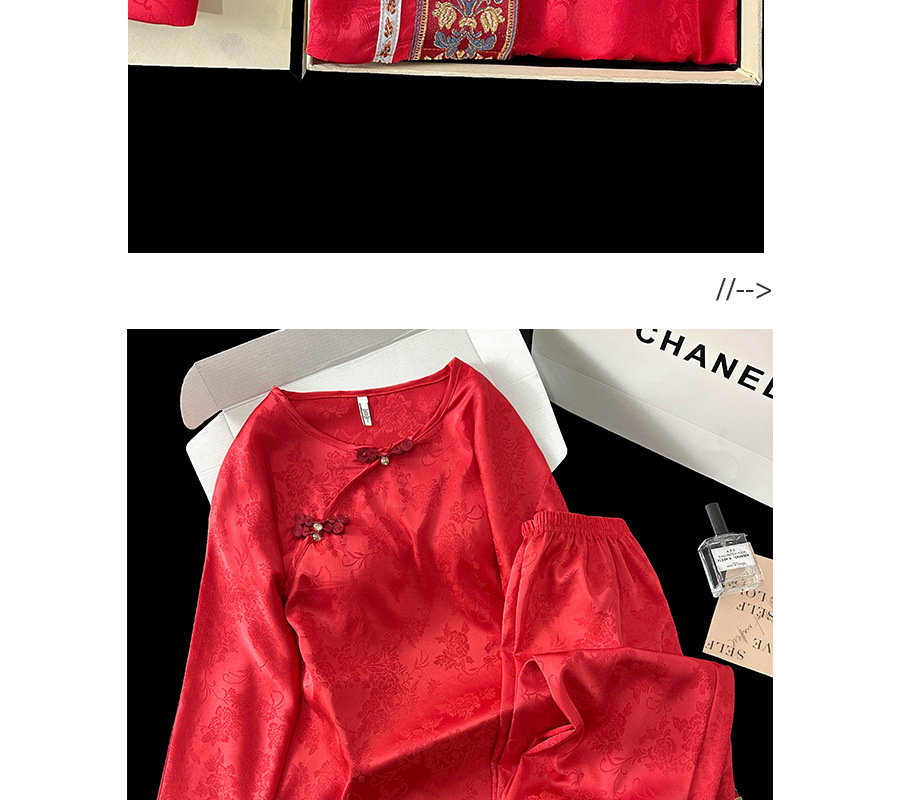 商品名称:2025春季新款中国红新中式提花睡衣女长袖盘扣家居服套装高级感国