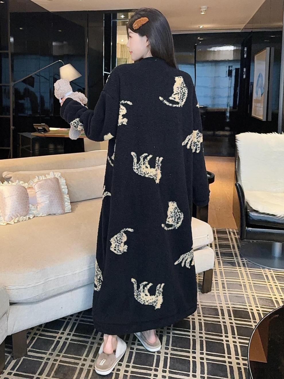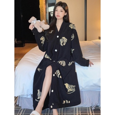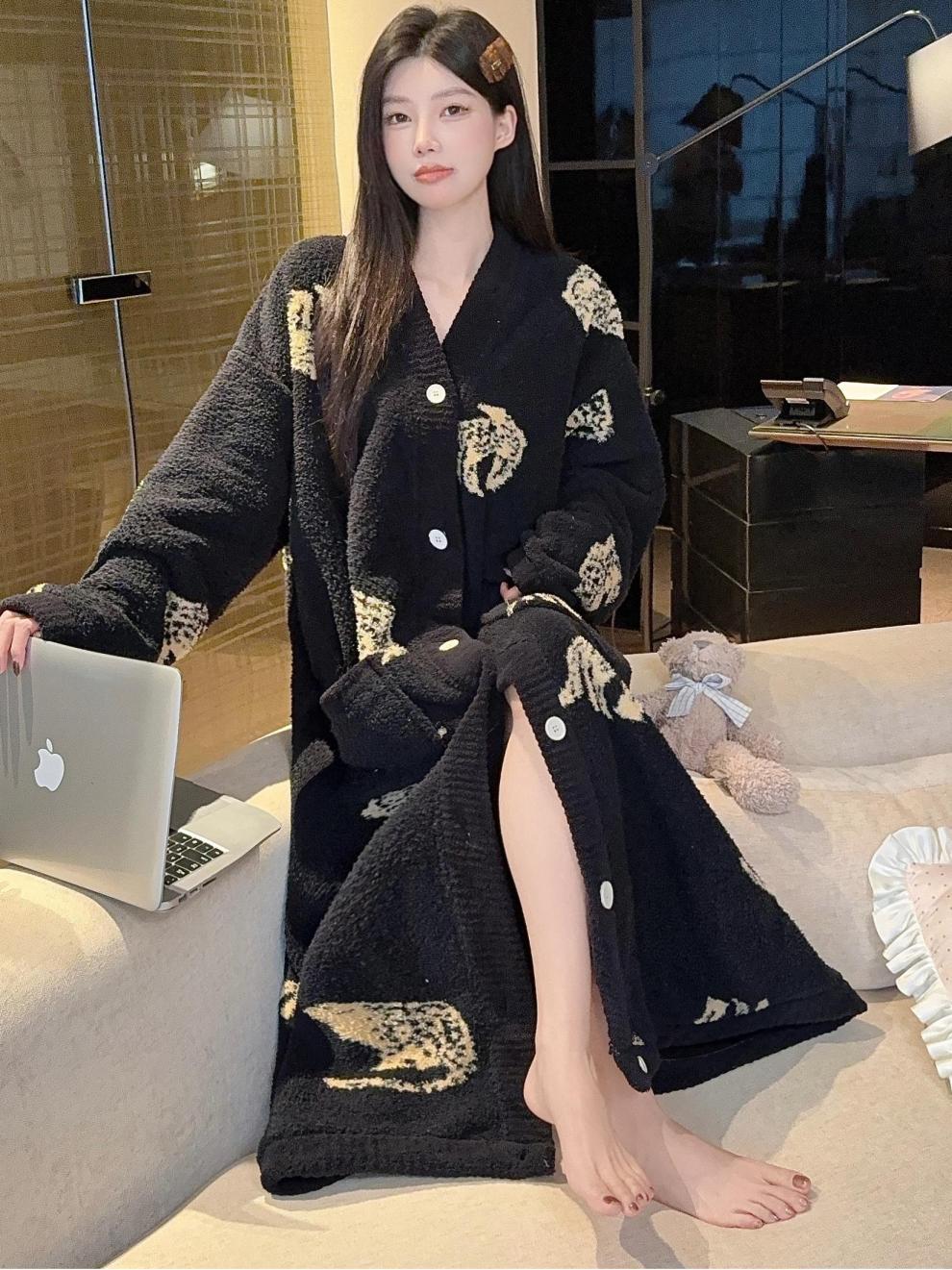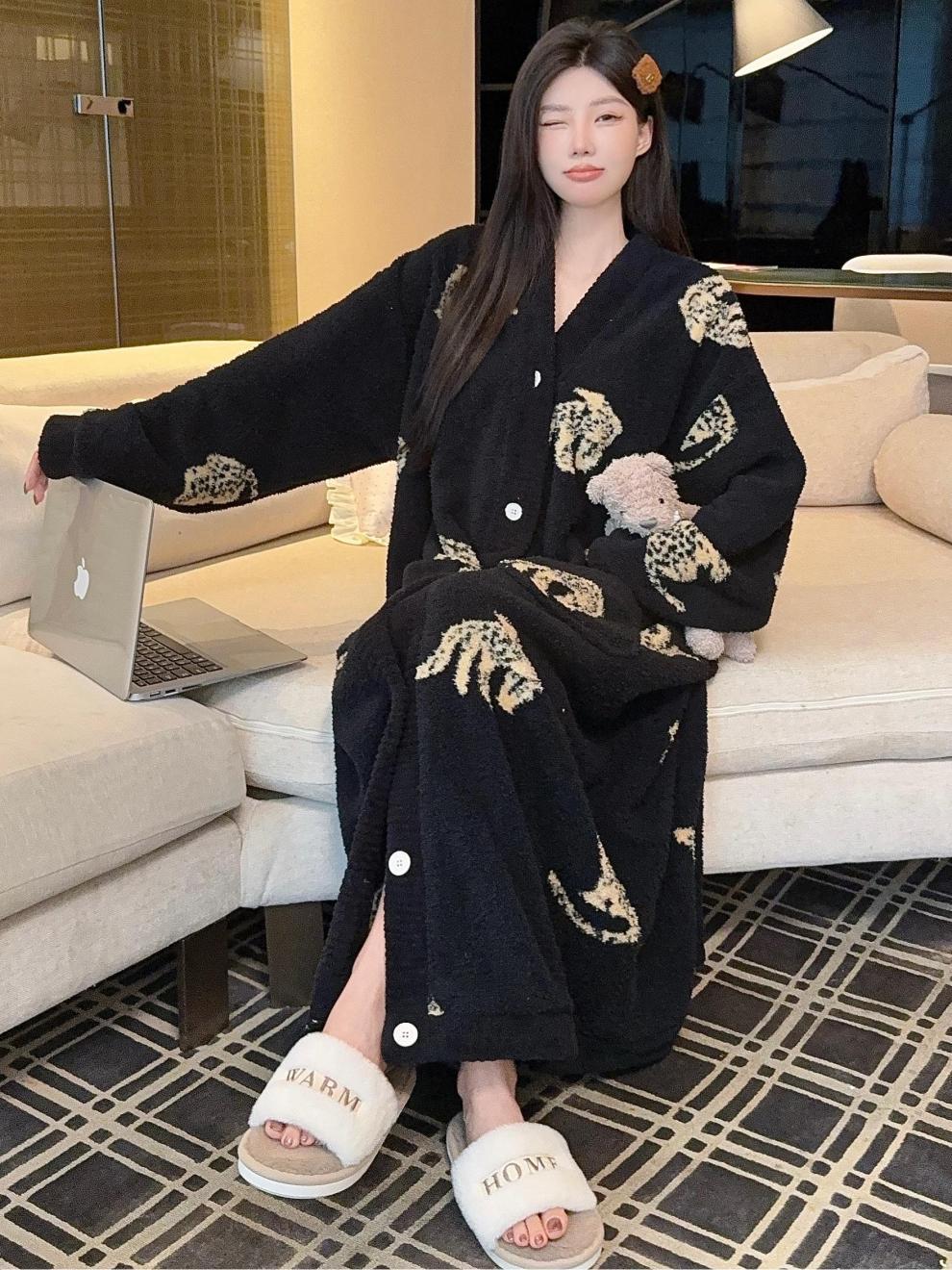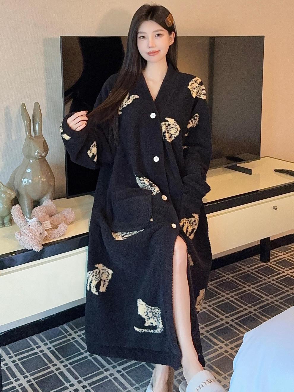 商品名称:冬季新款上新加绒加厚半边绒开衫长款睡裙女睡袍浴袍