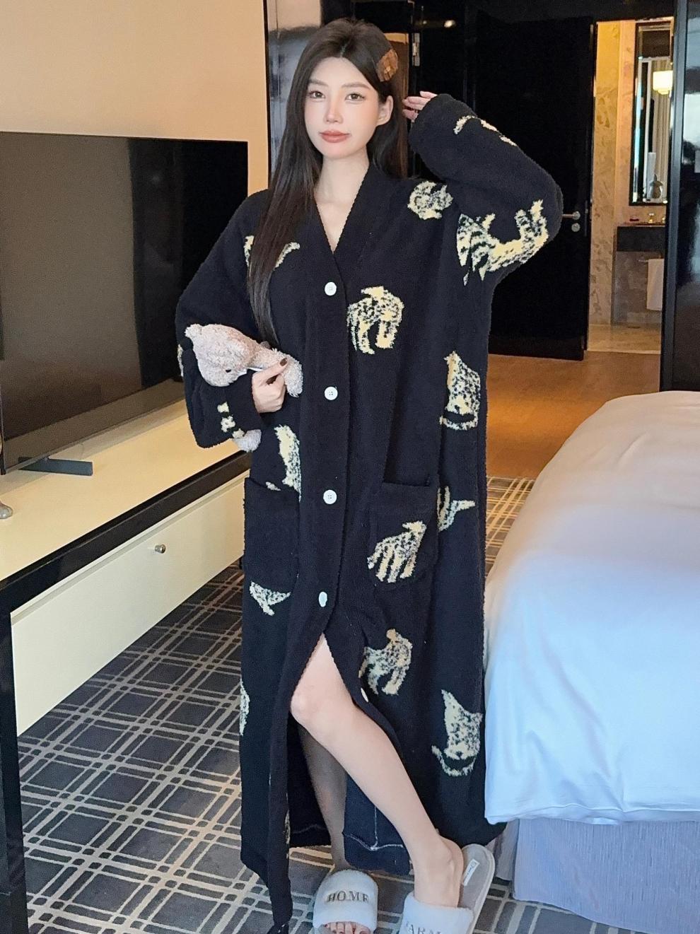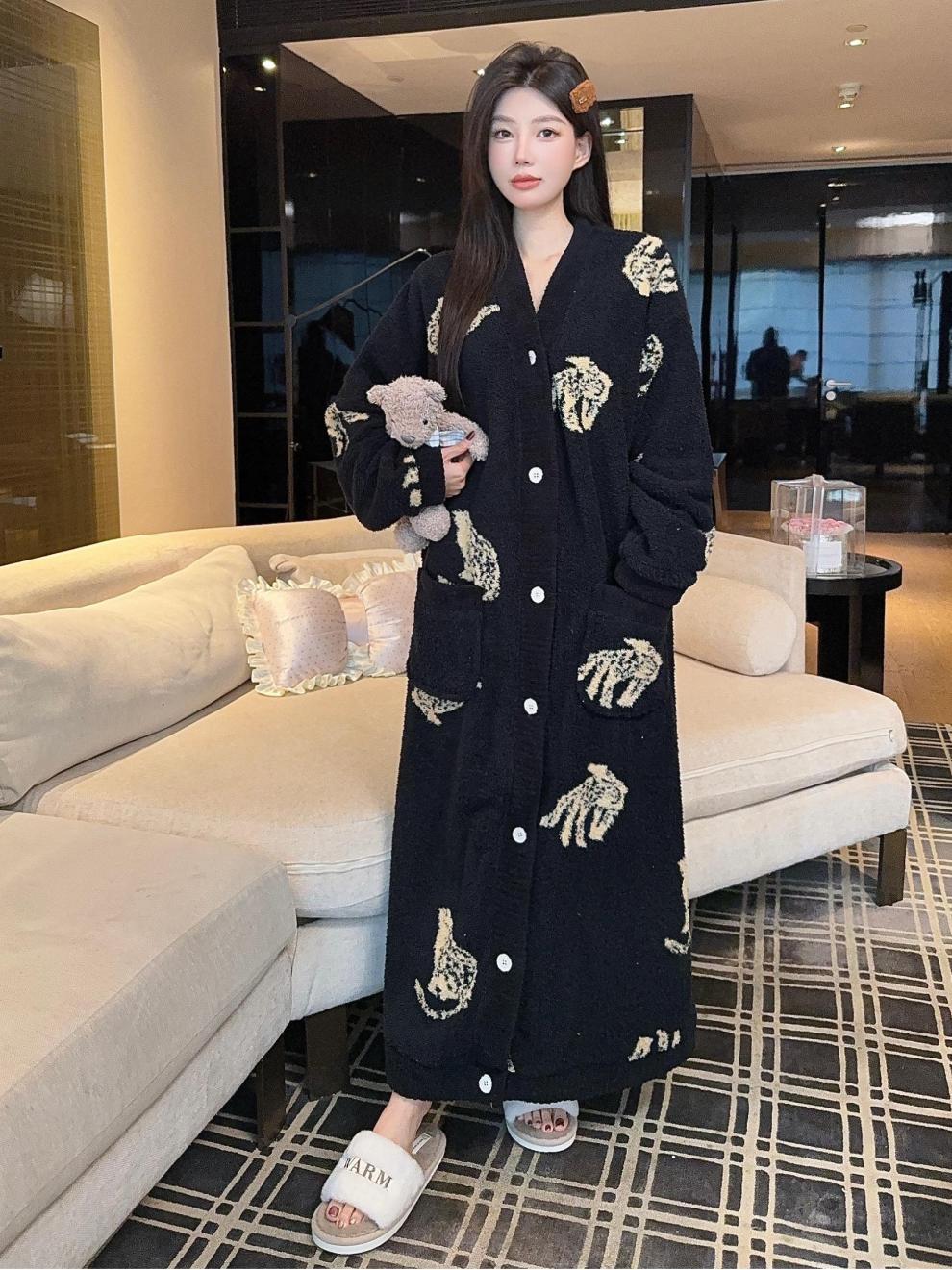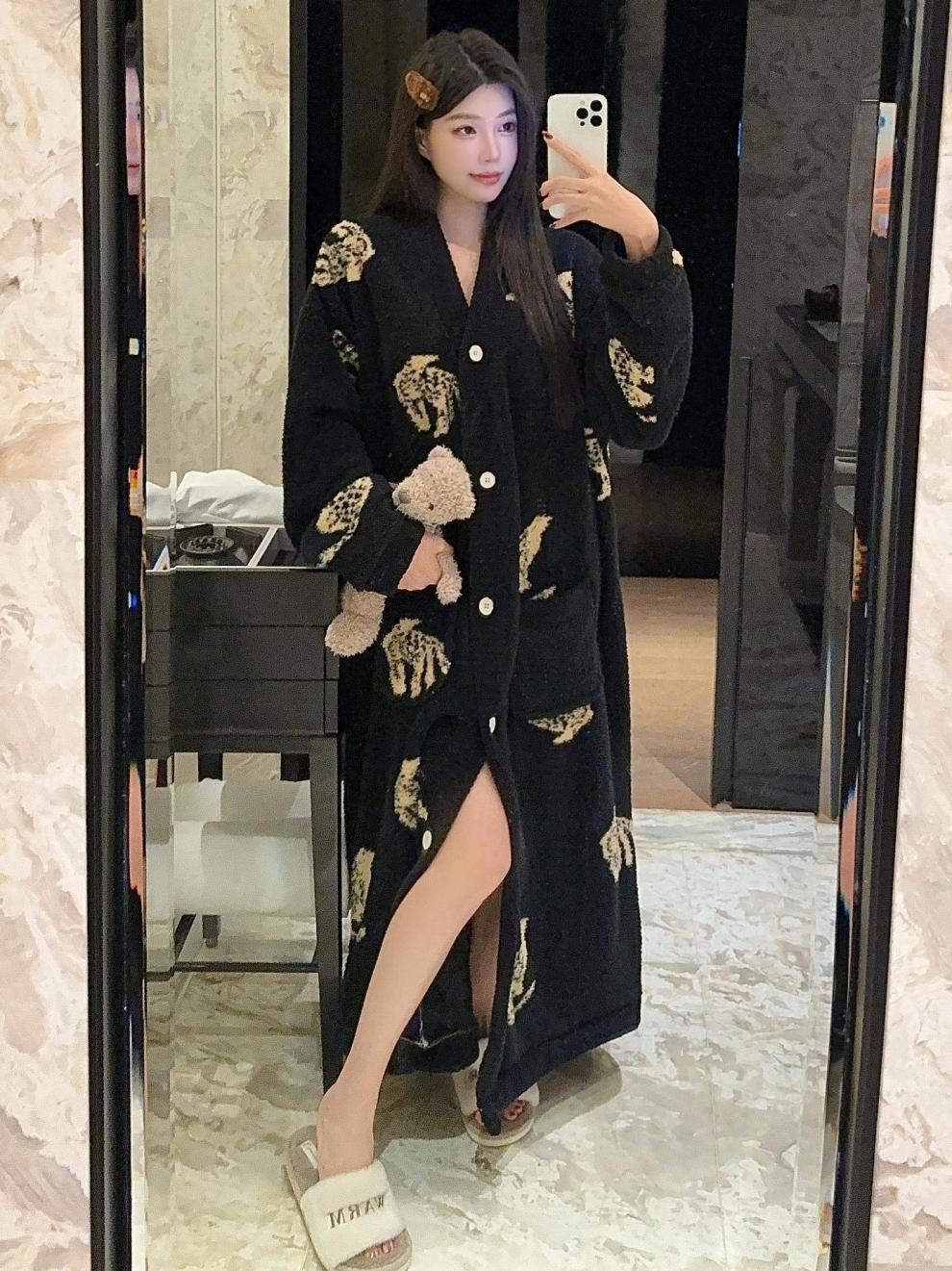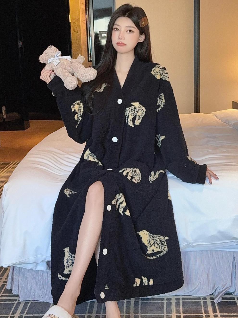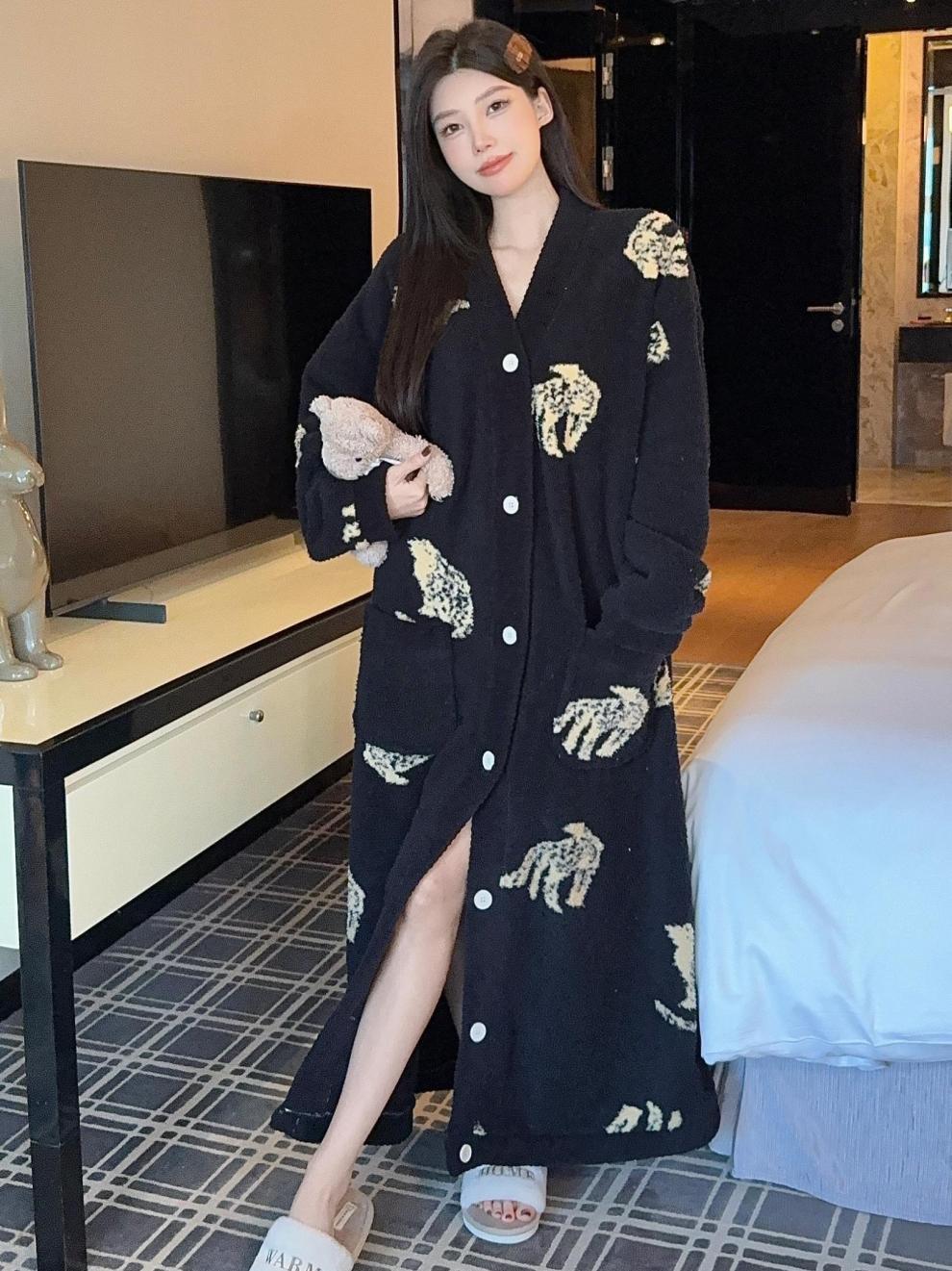 商品名称:冬季新款上新加绒加厚半边绒开衫长款睡裙女睡袍浴袍