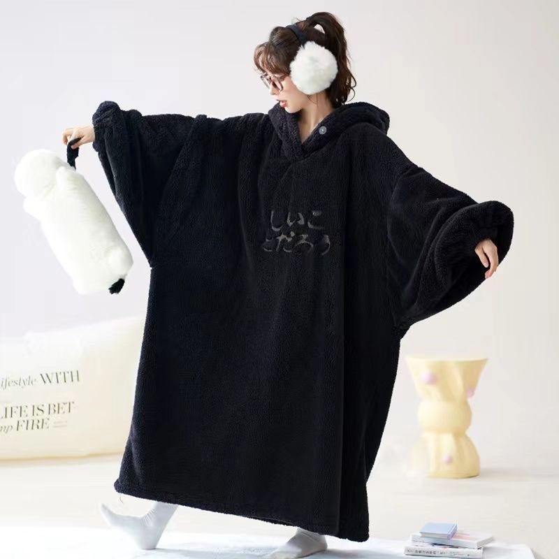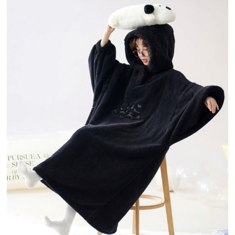 商品名称:秋冬新款加厚法兰绒保暖搞怪卡通宽松长毛绒睡袍家居服