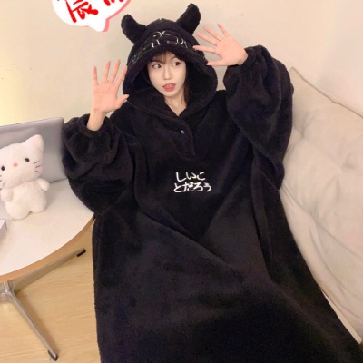 秋冬新款加厚法兰绒保暖搞怪卡通宽松长毛绒睡袍家居服