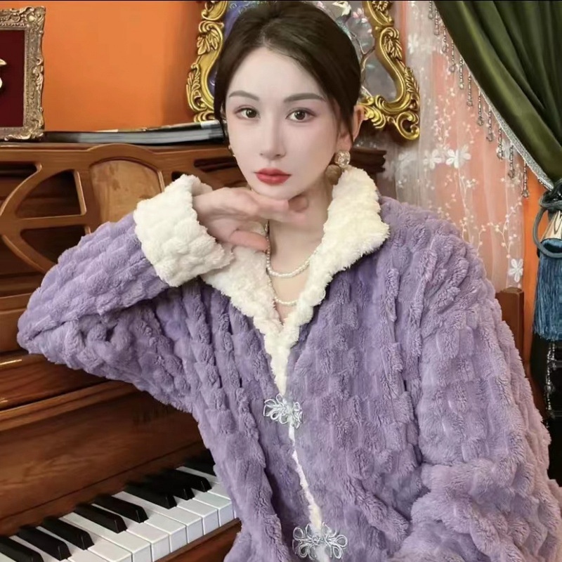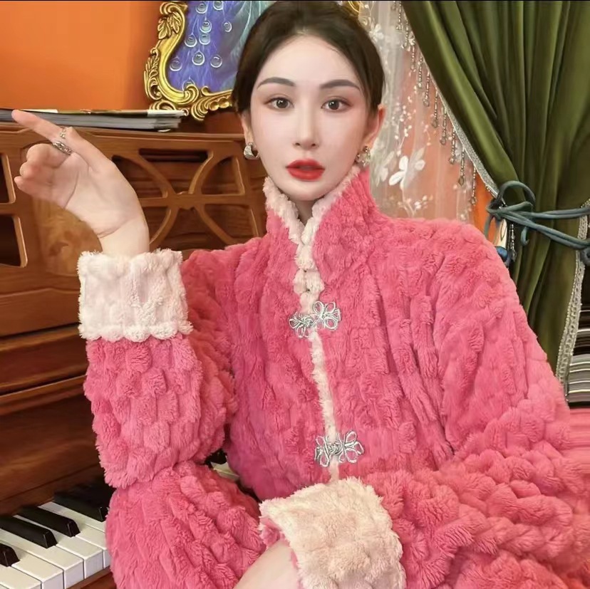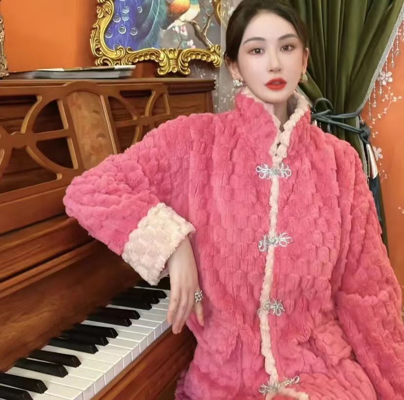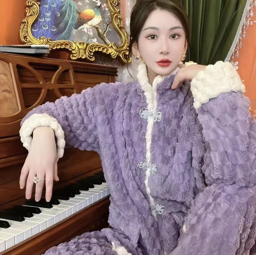 商品名称:直播爆款秋冬季小香风提花绒睡衣女加厚保暖家居服套装