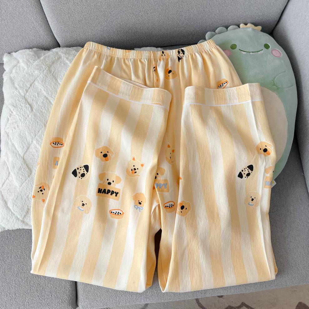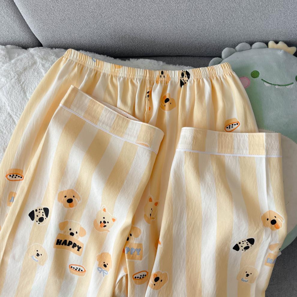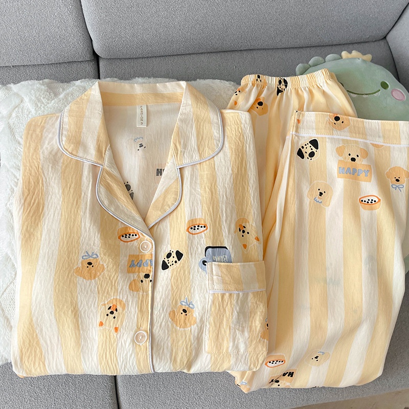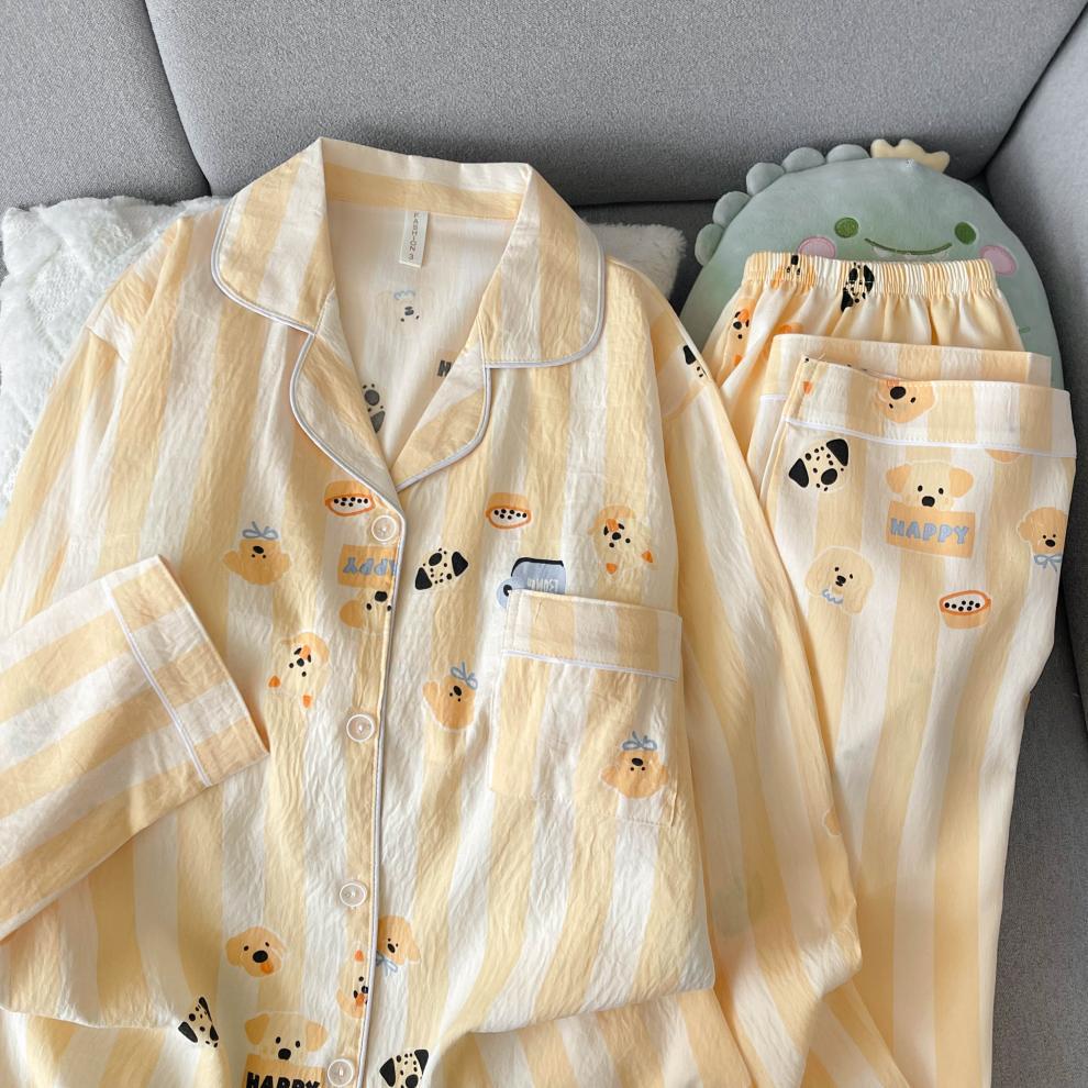 黄条圈圈熊睡衣女春秋长袖长裤两件套卡通甜美可爱家居服